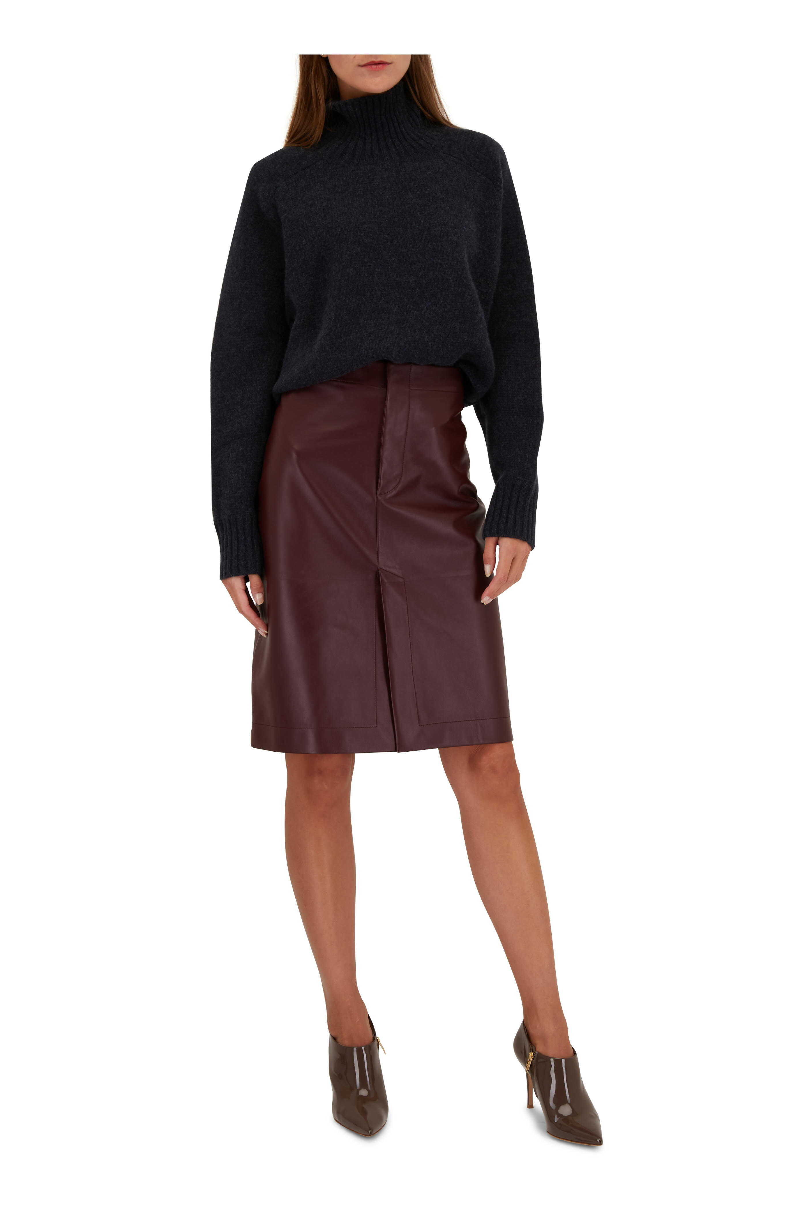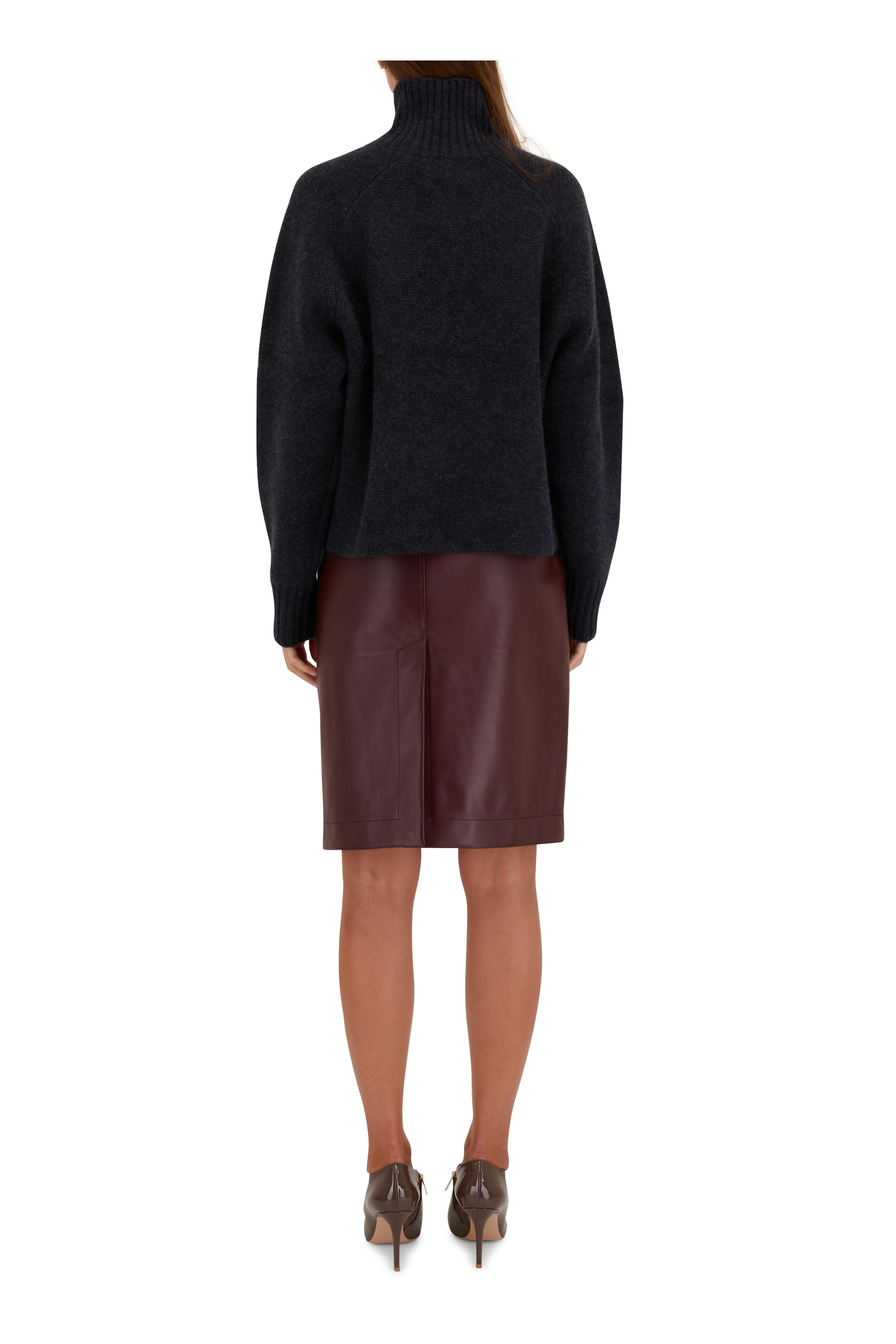 Mockneck. Ribbed trim. Imported. 100% cashmere. Dry clean.