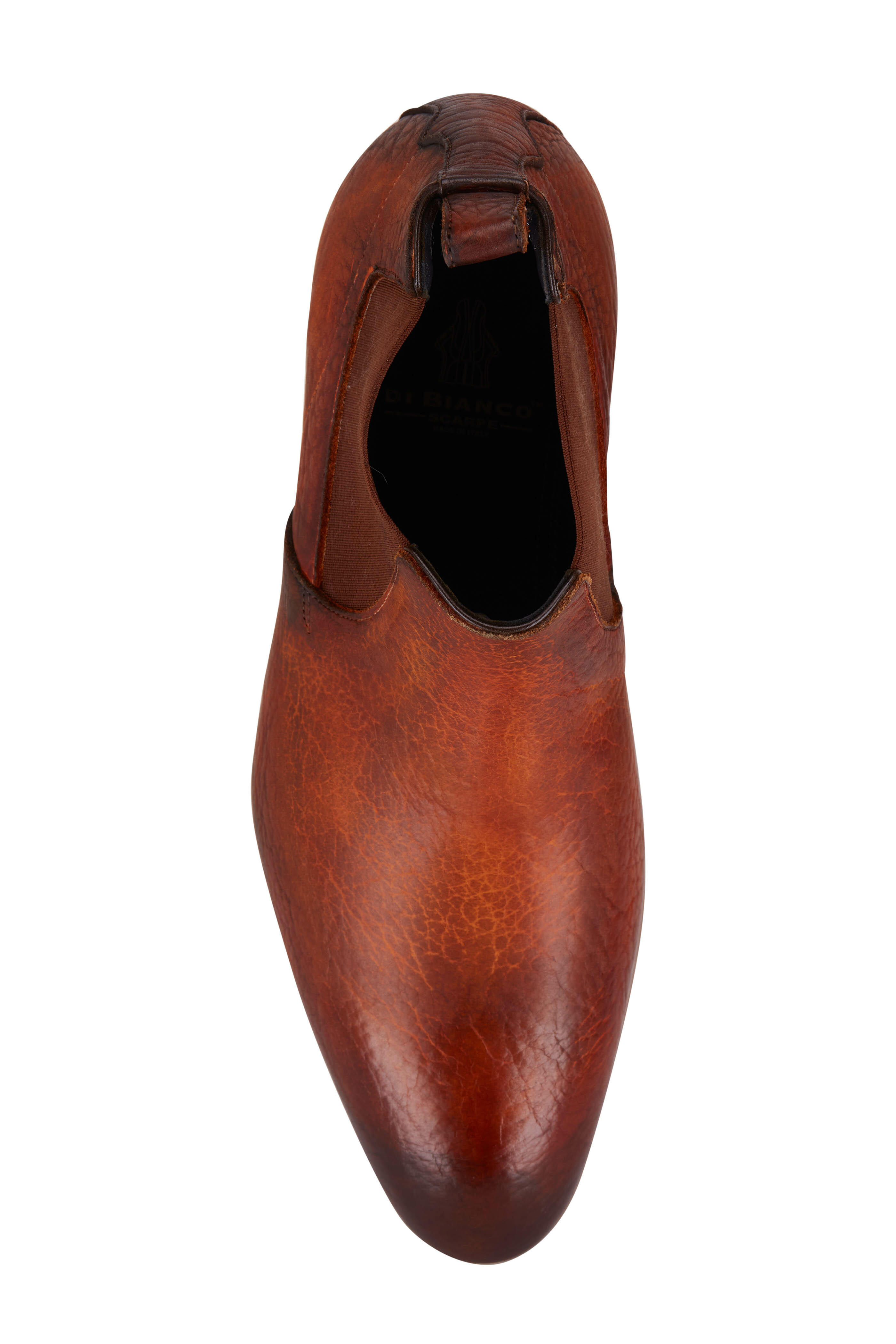 Leather upper. Round toe. Back pull tab. Leather lining and insole. Rubber sole. Made in Italy.