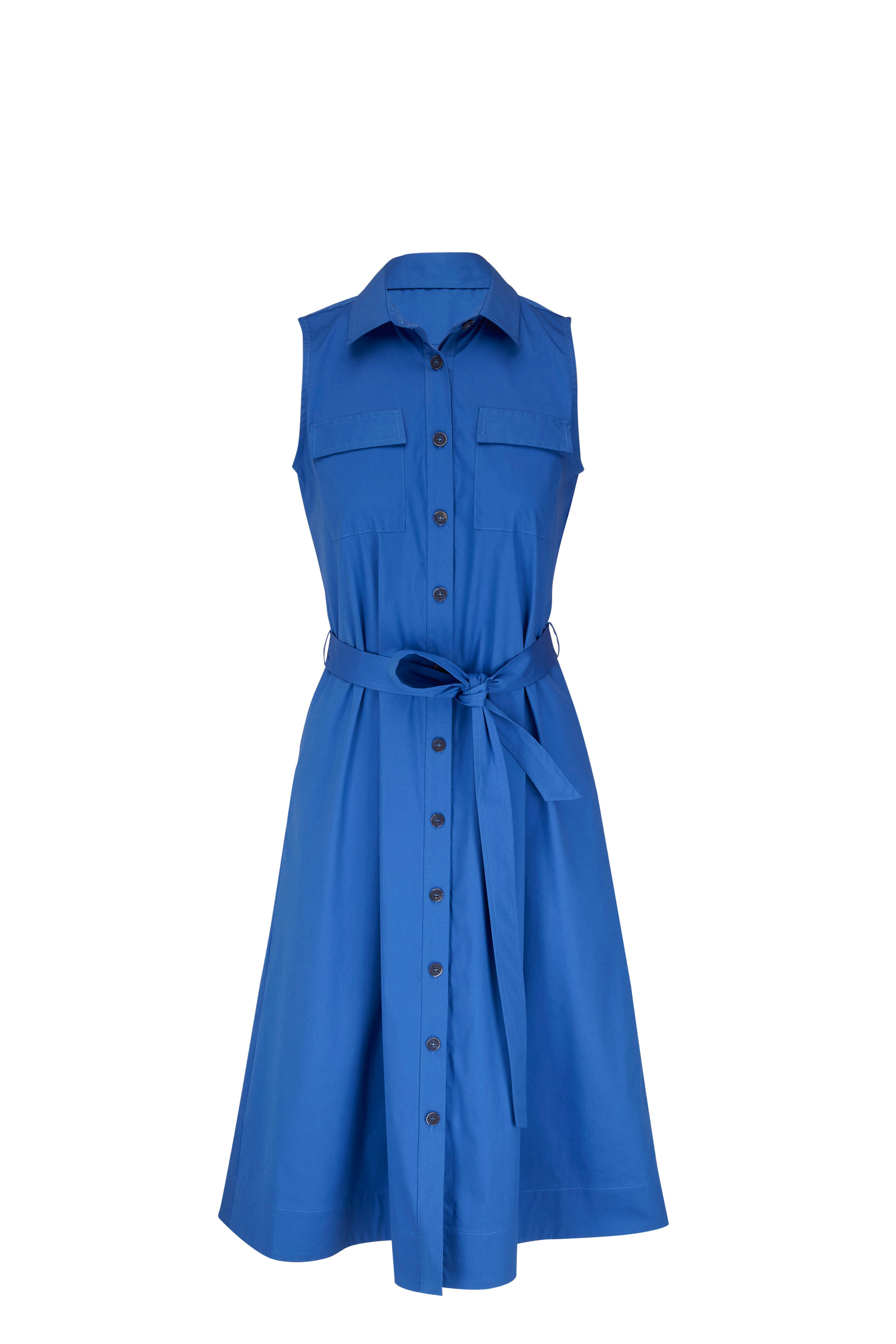 Magda Cobalt Sleeveless Belted Shirt Dress