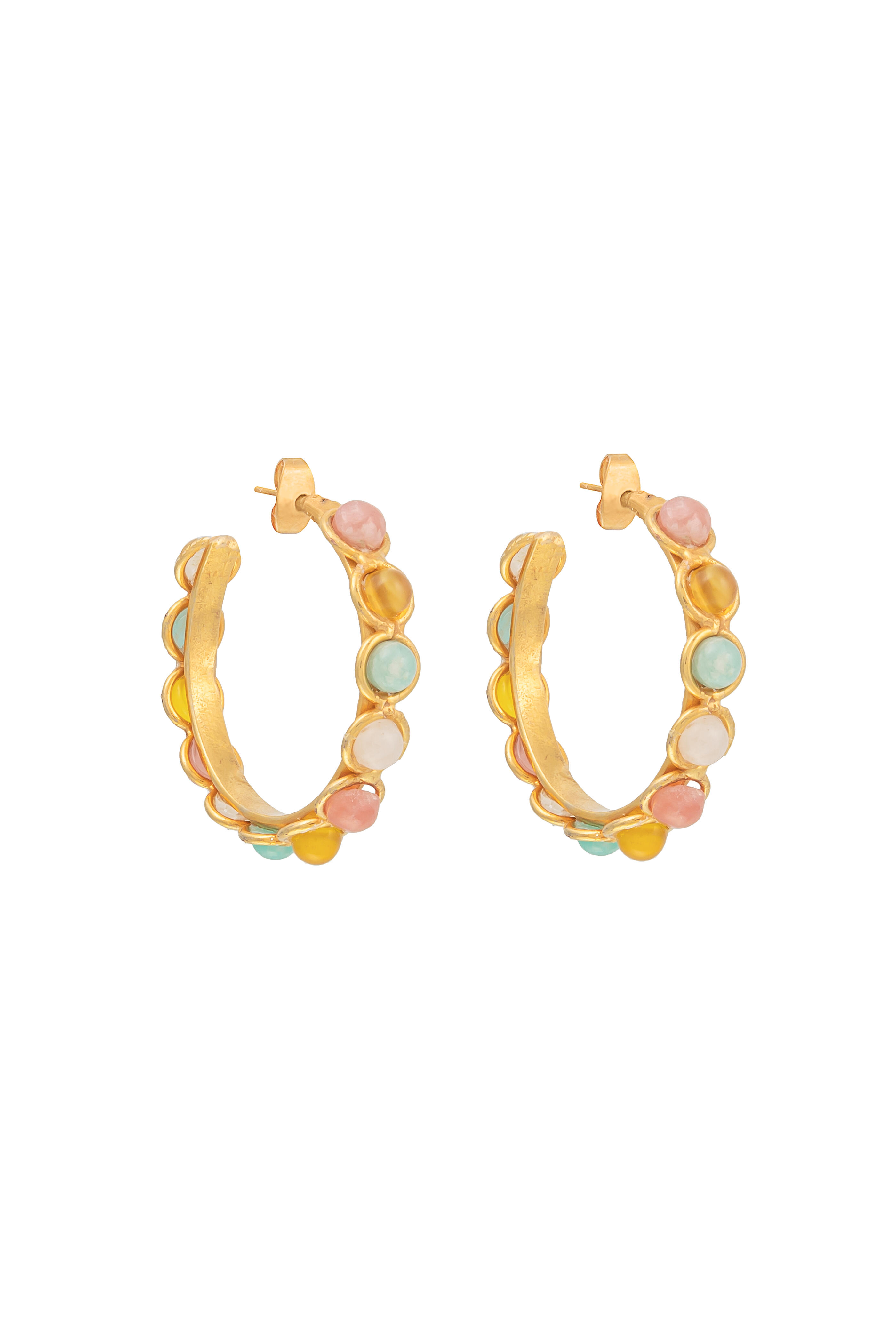 Golden brass. Stones: Onyx Jaune, Rhodochrosite, Amazonite, Pierre de Lune.