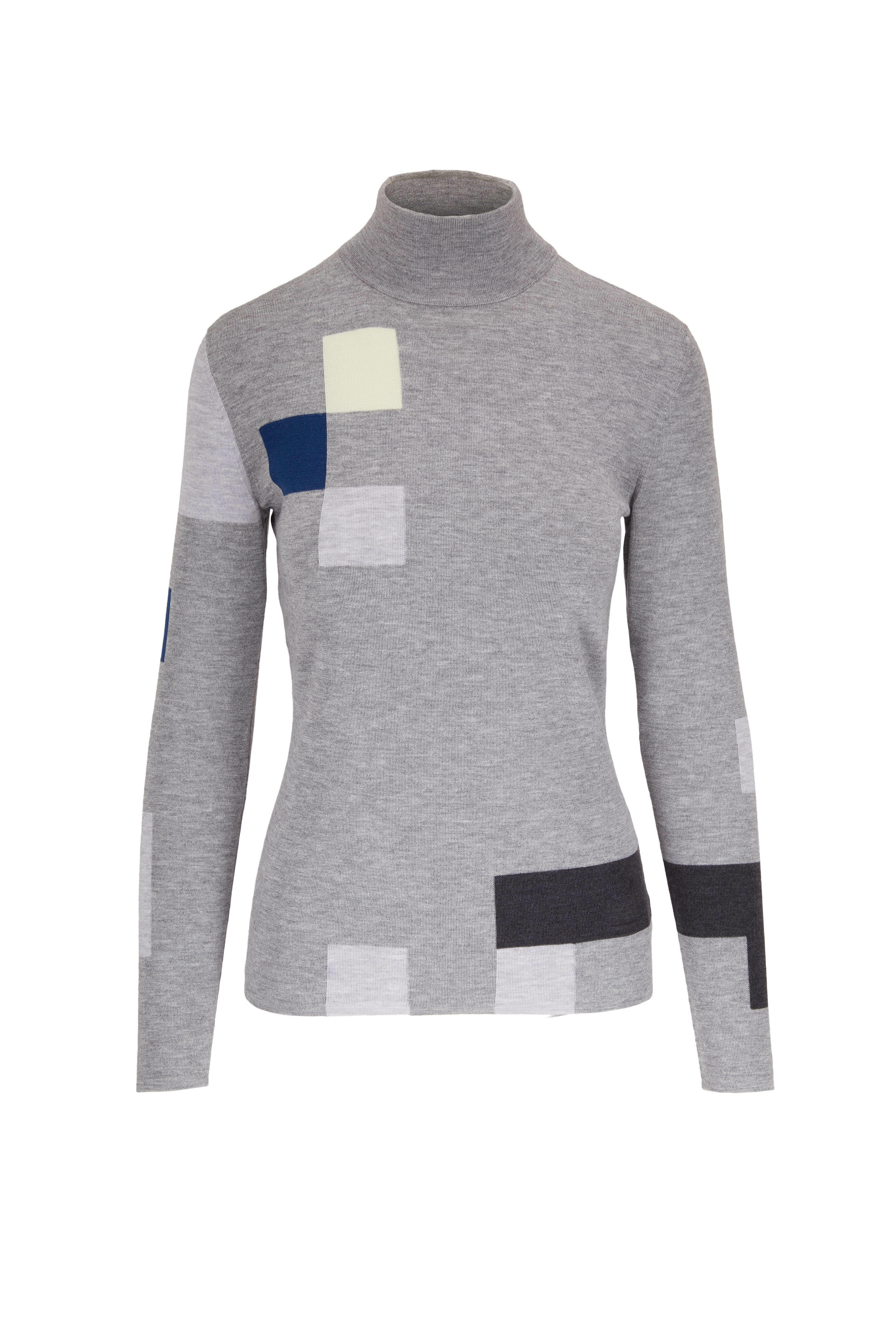Turtleneck. Ribbed trims. Imported. 70% cashmere, 30% silk. Dry clean.