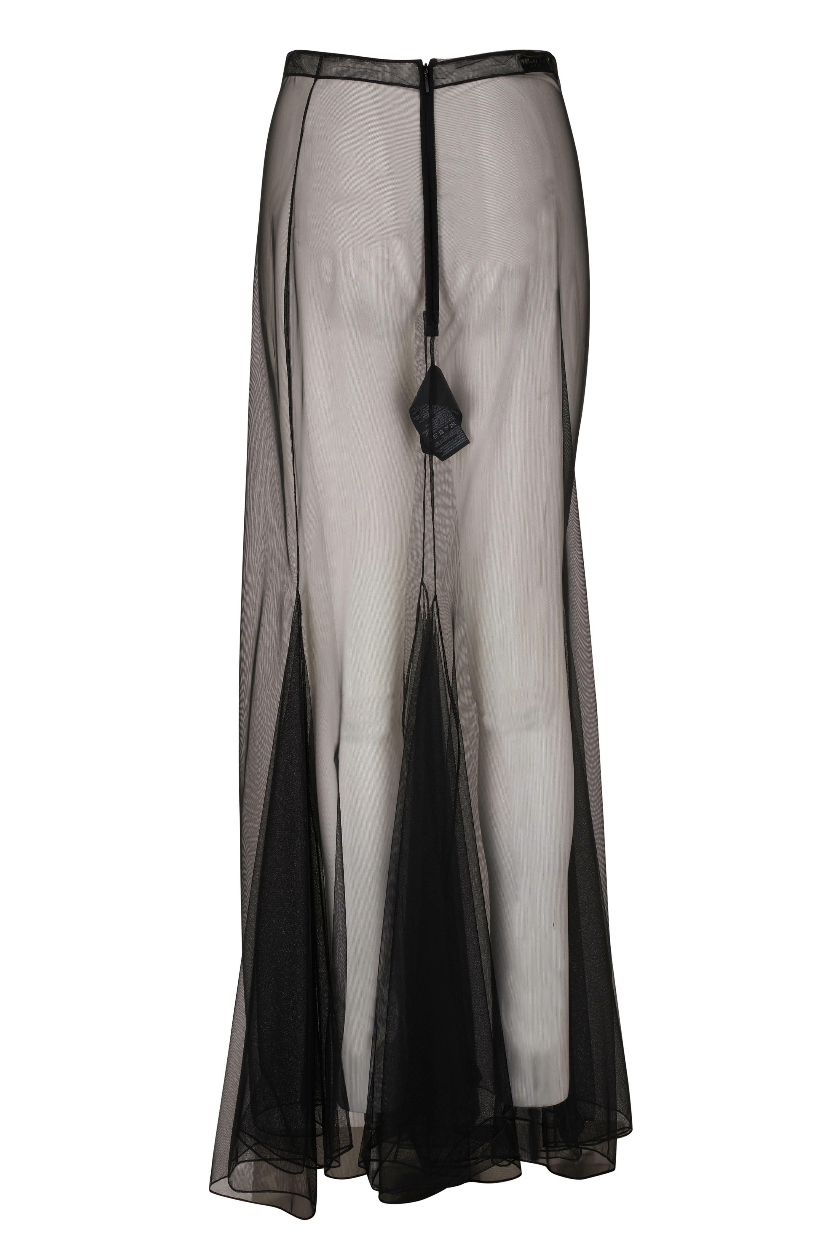 Concealed back zip. Pleated hem. Made in Italy. 45" length. Intentionally sheer; undergarment not included. 76% polyamide, 24% elastane; unlined. Dry clean.