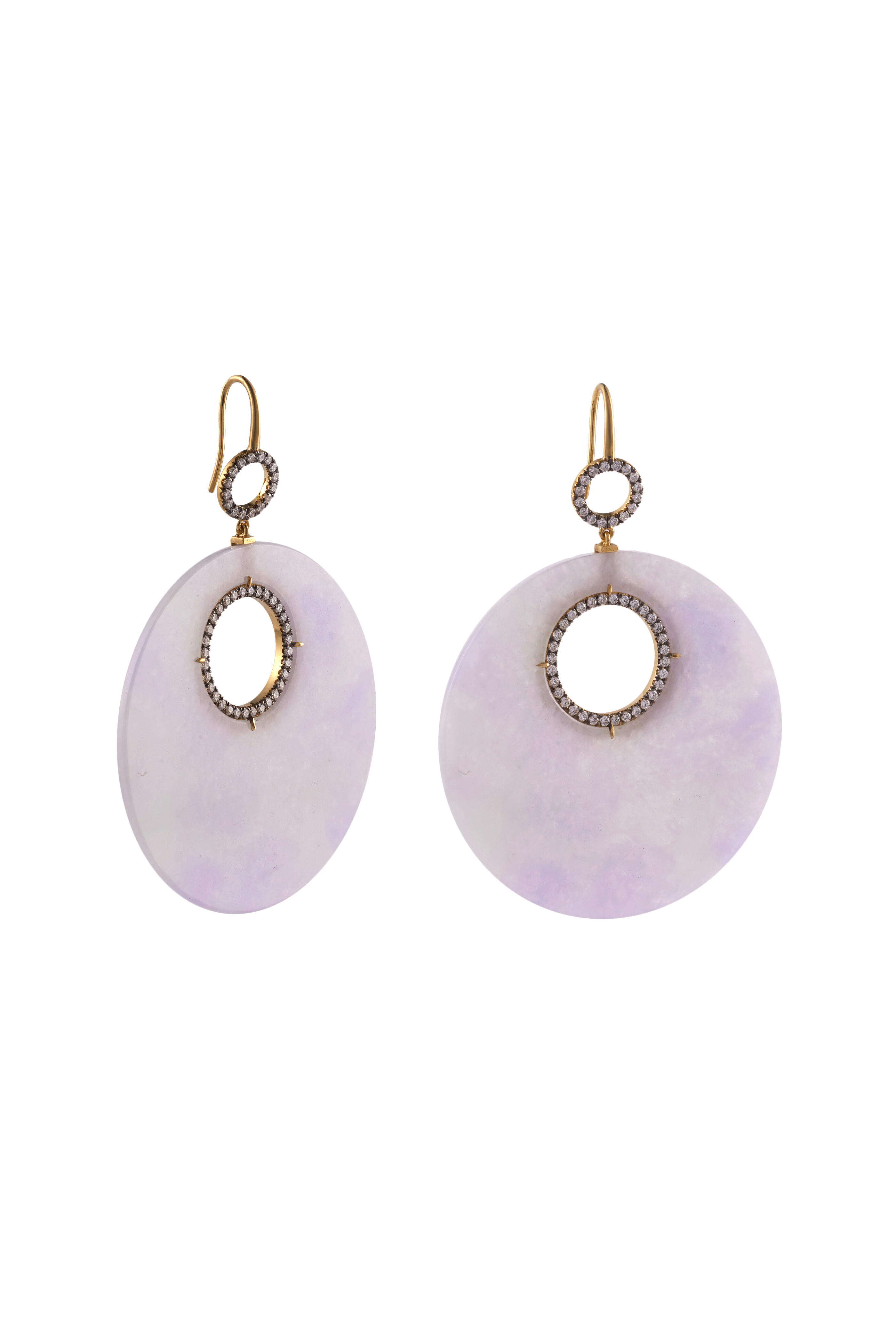 18k Yellow Gold Diamond & Lavender Jade Hoops