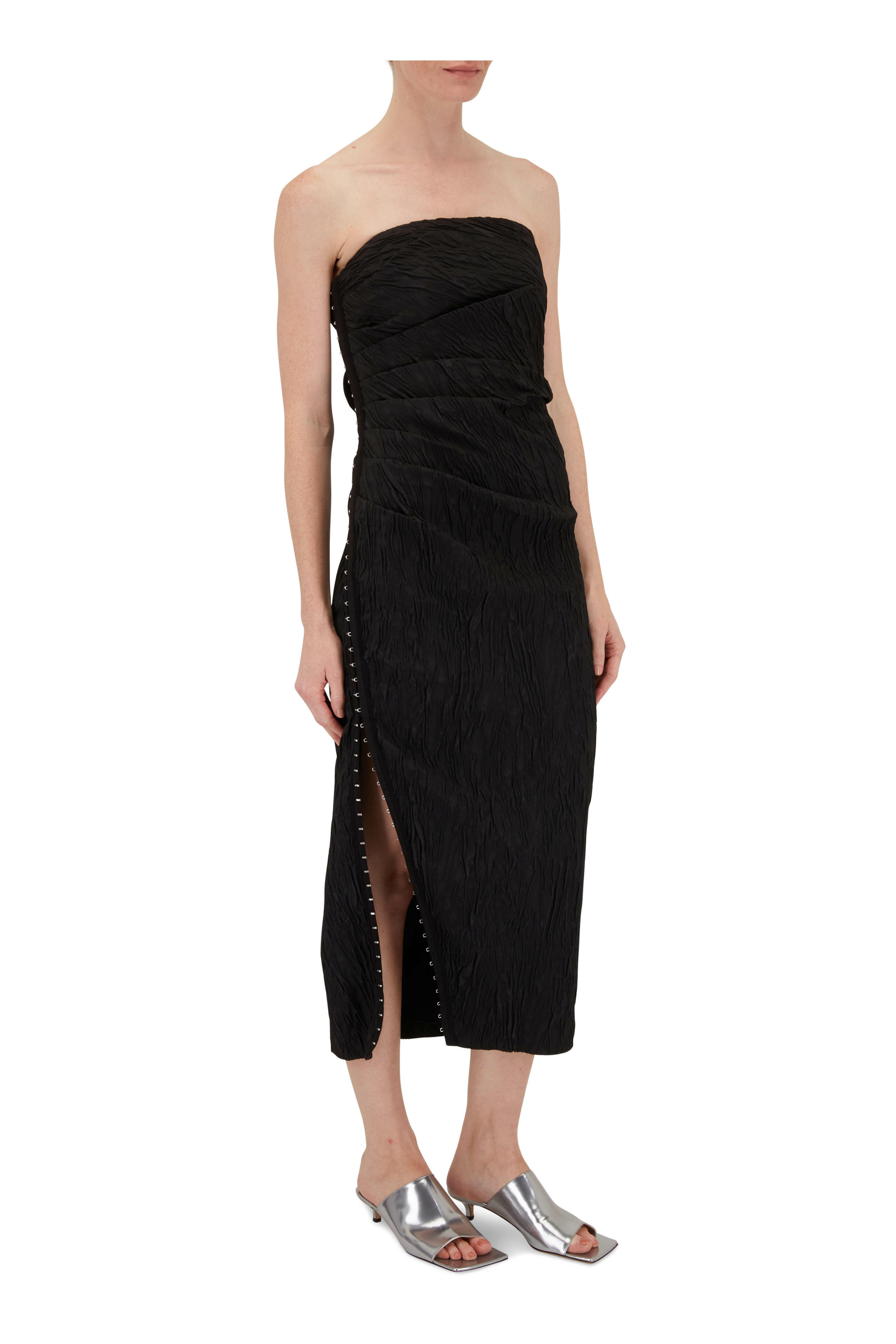 Straight neckline. Concealed side zip. Removable, adjustable straps. Side hook-and-eye closures. Imported. 97% polyester, 3% spandex; Lining: 100% polyester. Dry clean.