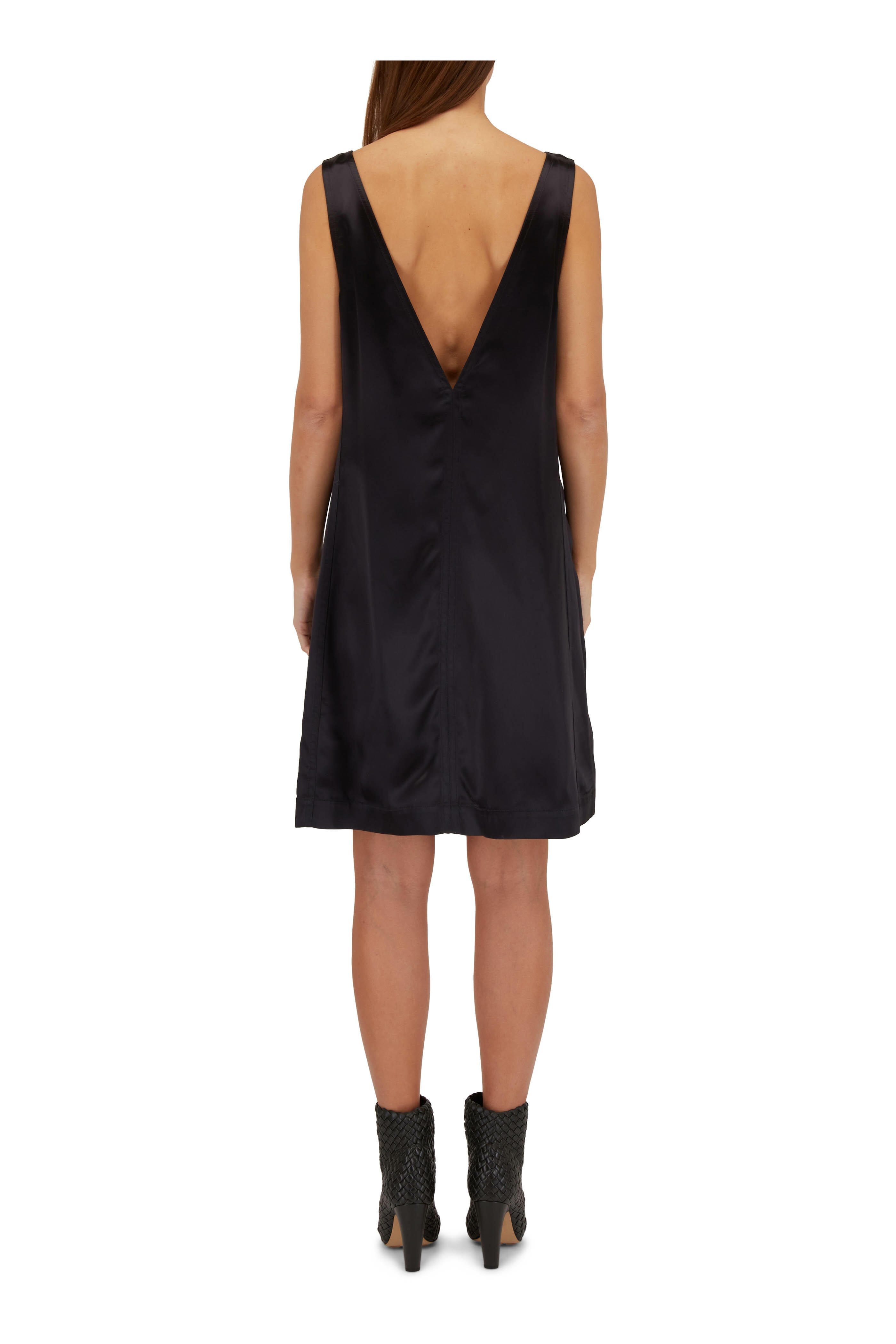V-neckline. Sleeveless. Pullover style. Made in Italy. About 35" from shoulder to hem. 59% acetate, 41% viscose. Dry clean.