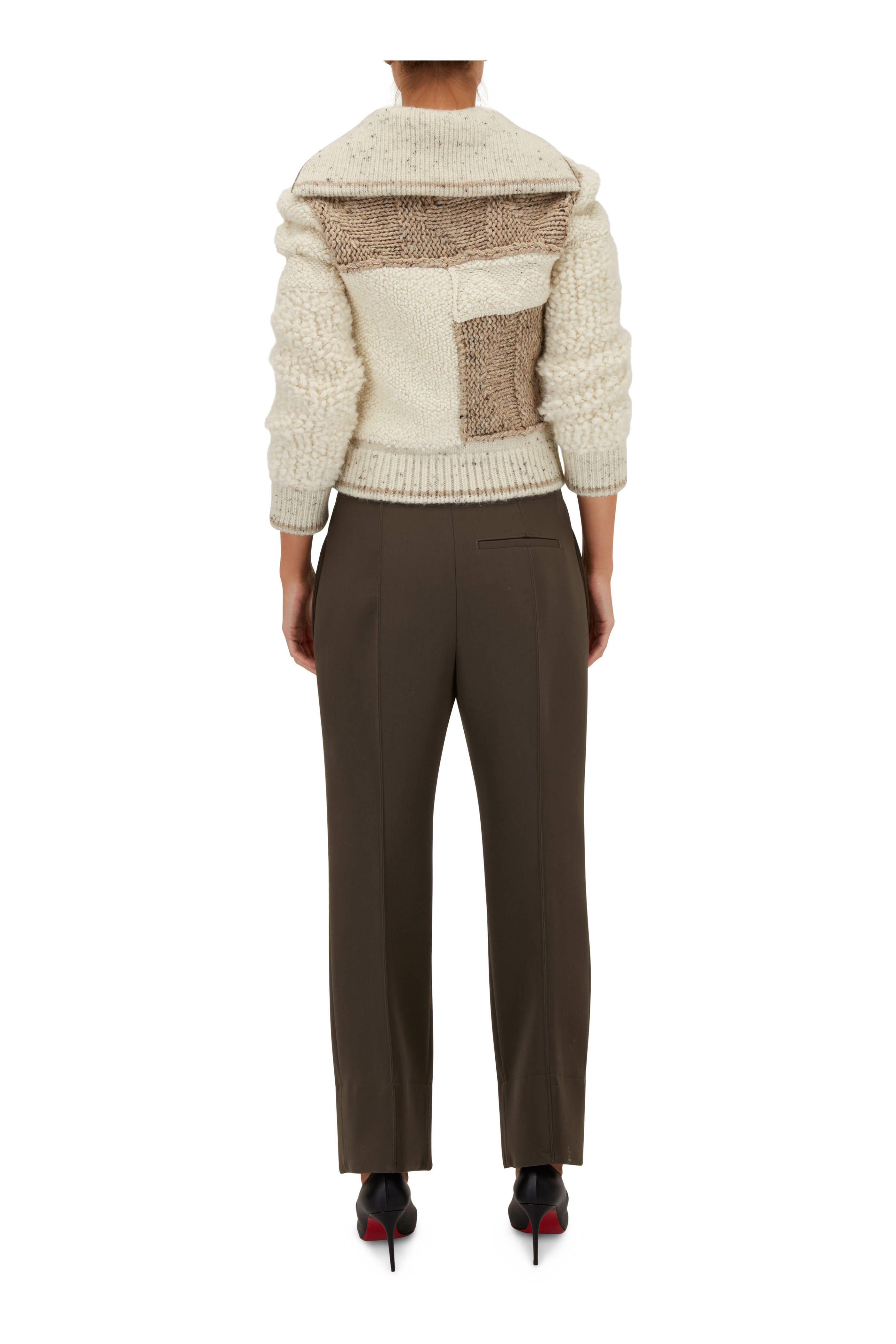 Double hook-and-eye closure. Zip fly. Side slash pockets; Single back welt pocket. Made in Italy. 100% wool; lining: 100% cotton. Dry clean.