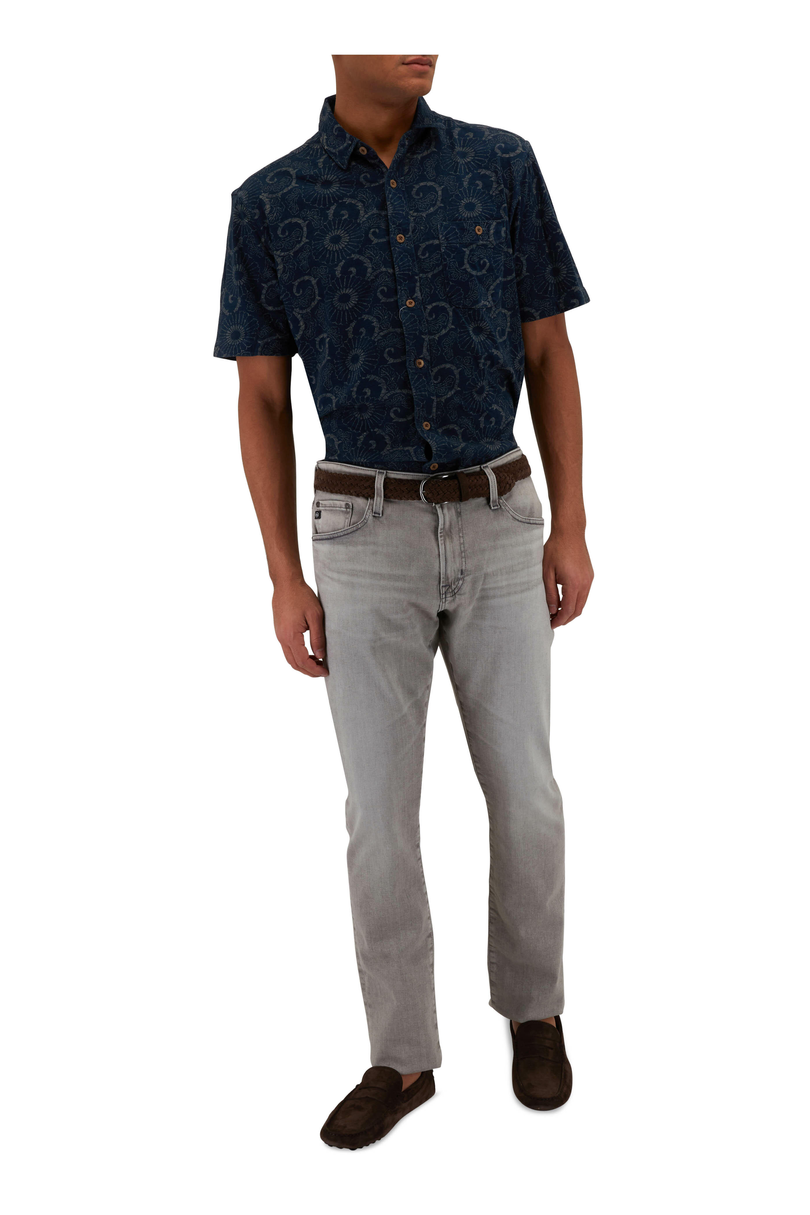 Seasons Indigo Cream Batik Knit Short Sleeve Shirt
