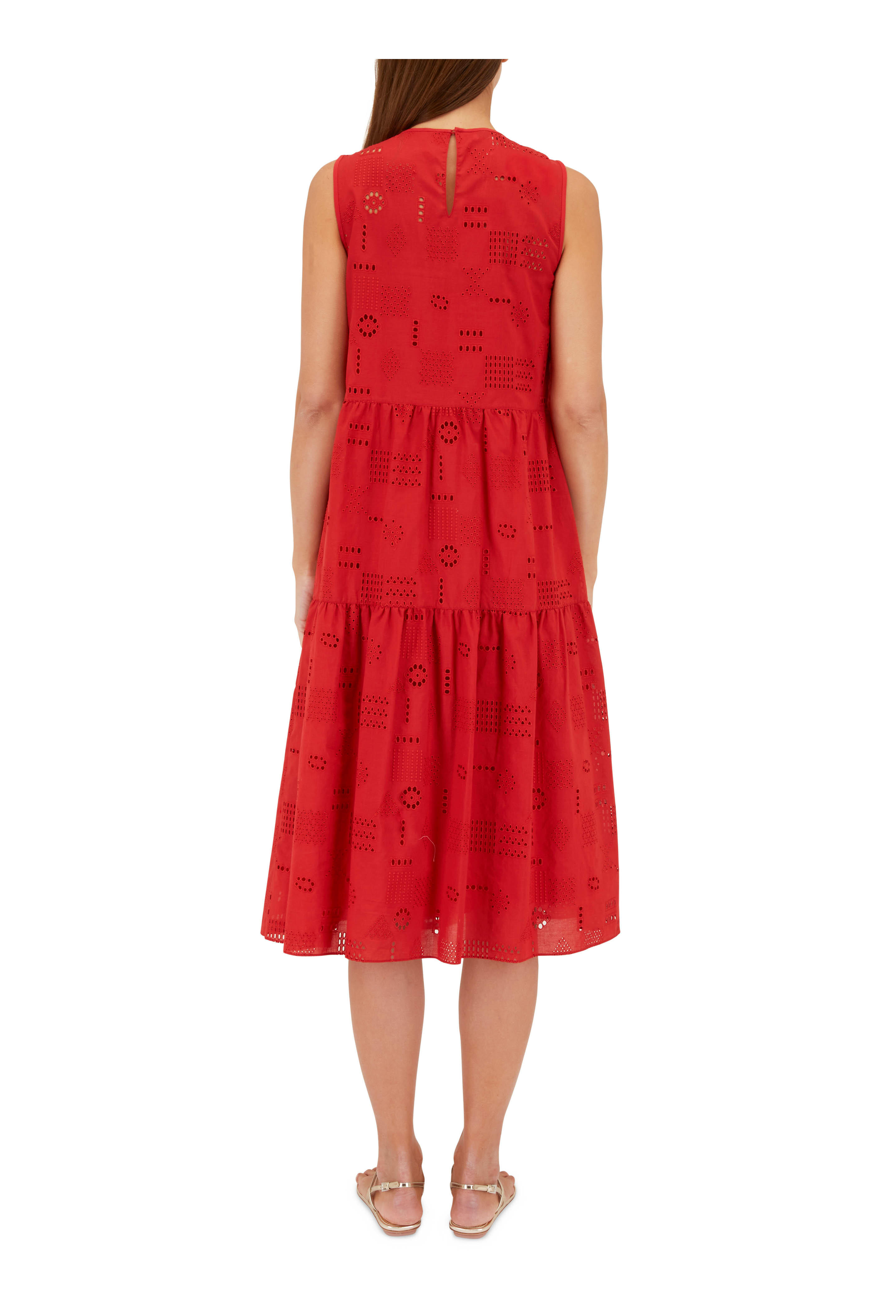 Back one button closure. Jewel neckline. Concealed side seam pockets. Imported. Approx. 46" shoulder to hem. 100% cotton. Machine wash.