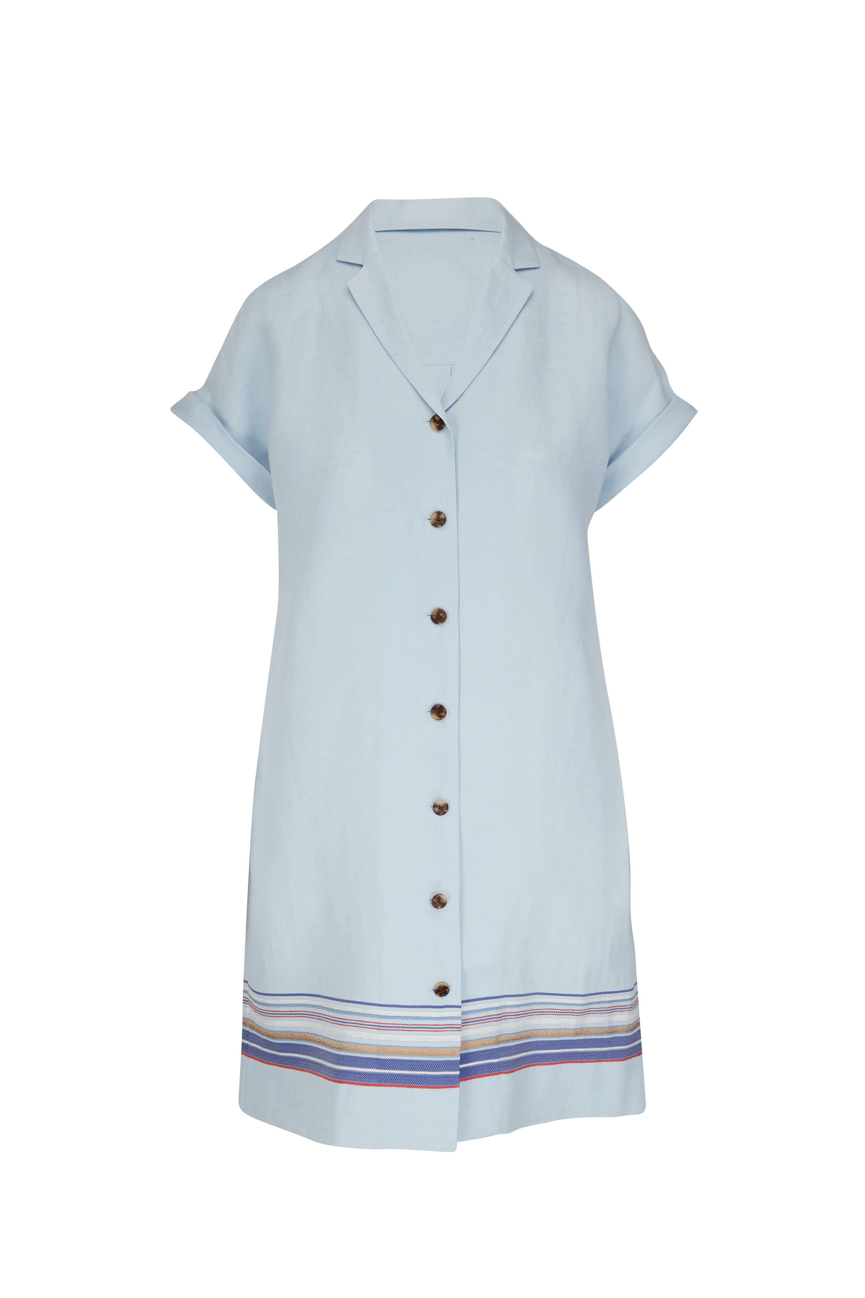 Notched collar. Front button placket. Side slip pockets. Imported. 36" shoulder to hem. 63% linen, 34% silk, 2% cotton, 1% acetate. Dry clean.