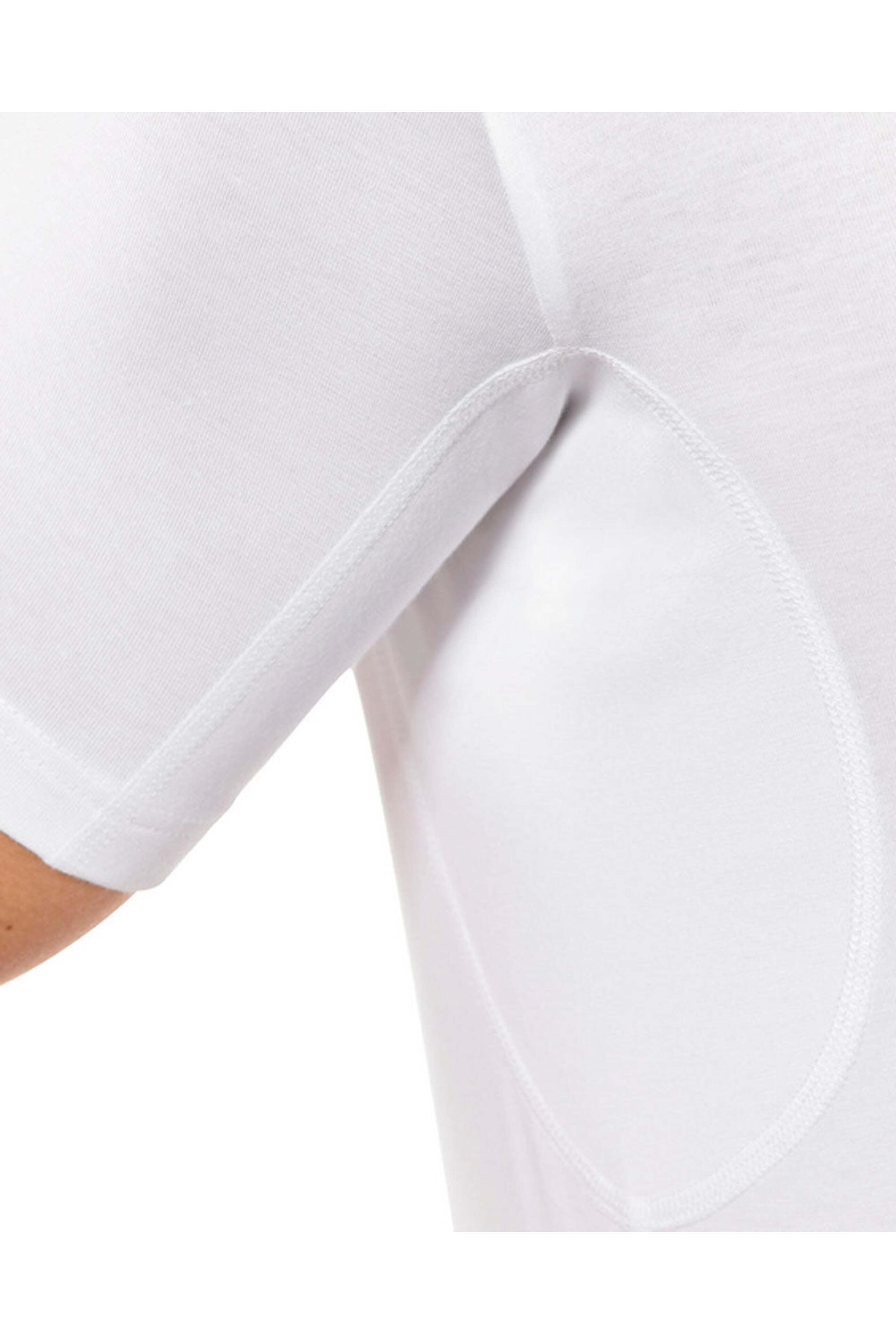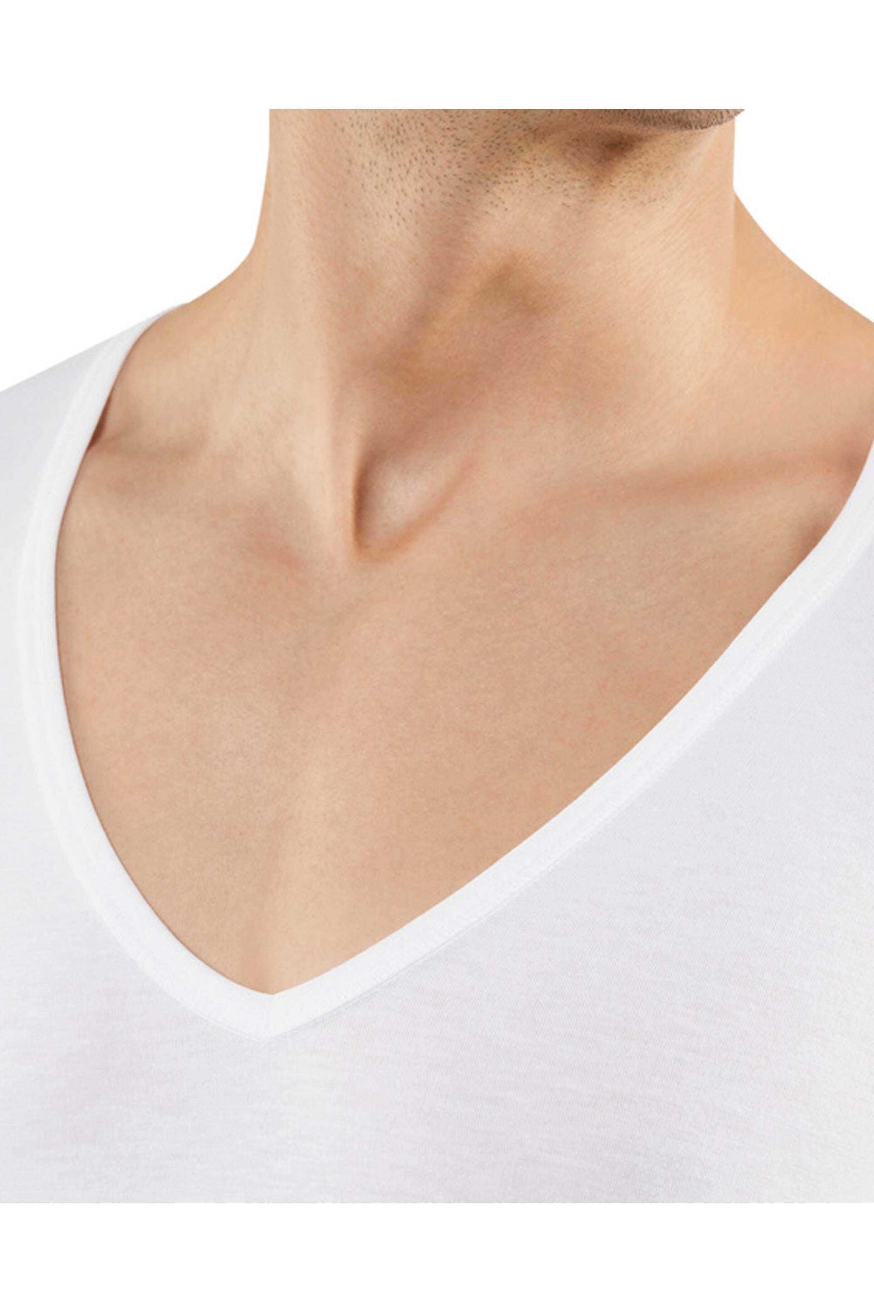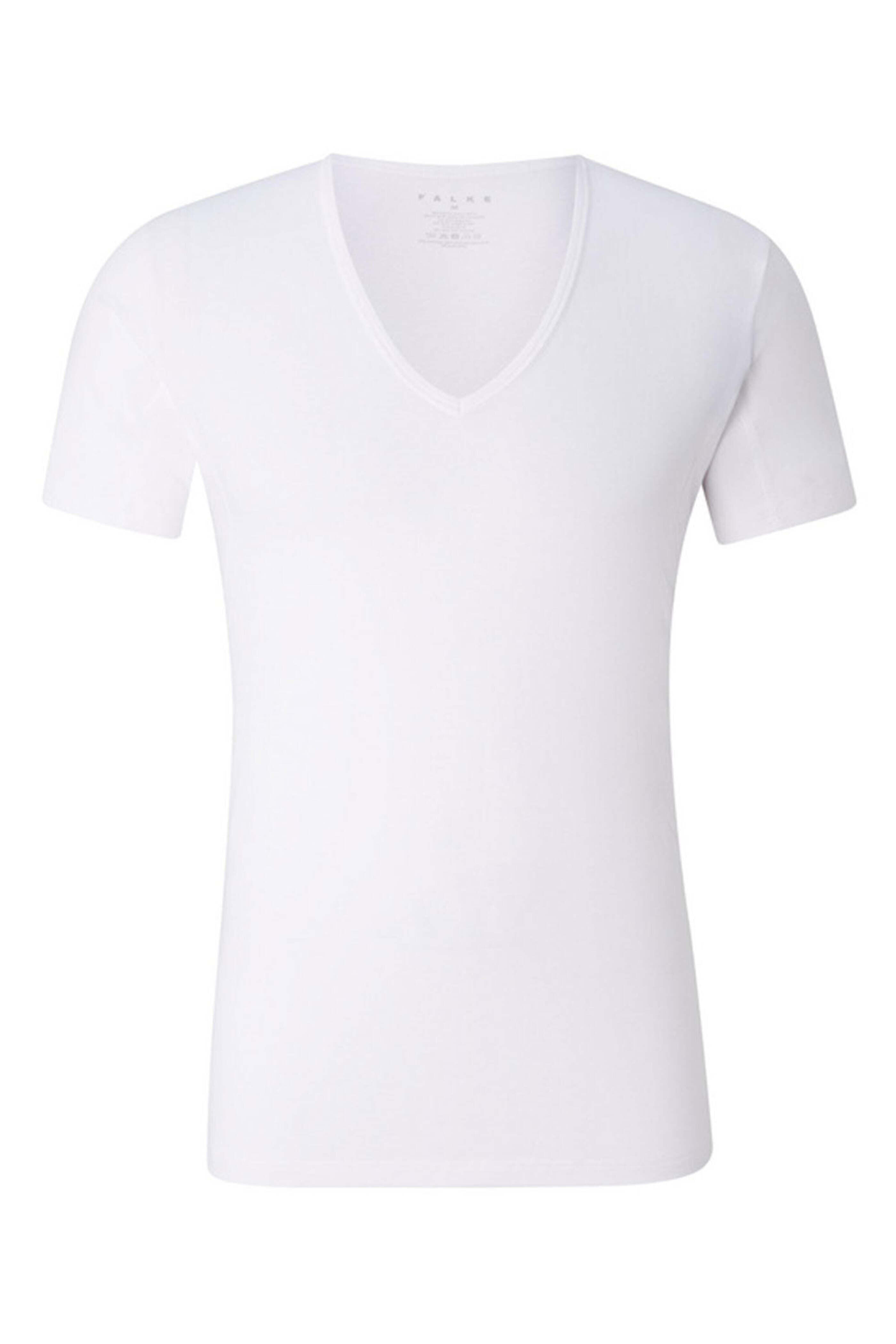 Falke White Outlast V Neck Undershirt. Low V-neckline. Extended back. Double fabric in underarm to prevent perspiration. Short sleeves. Figure-hugging fit. 57% cotton 38% viscose 5% elastane.