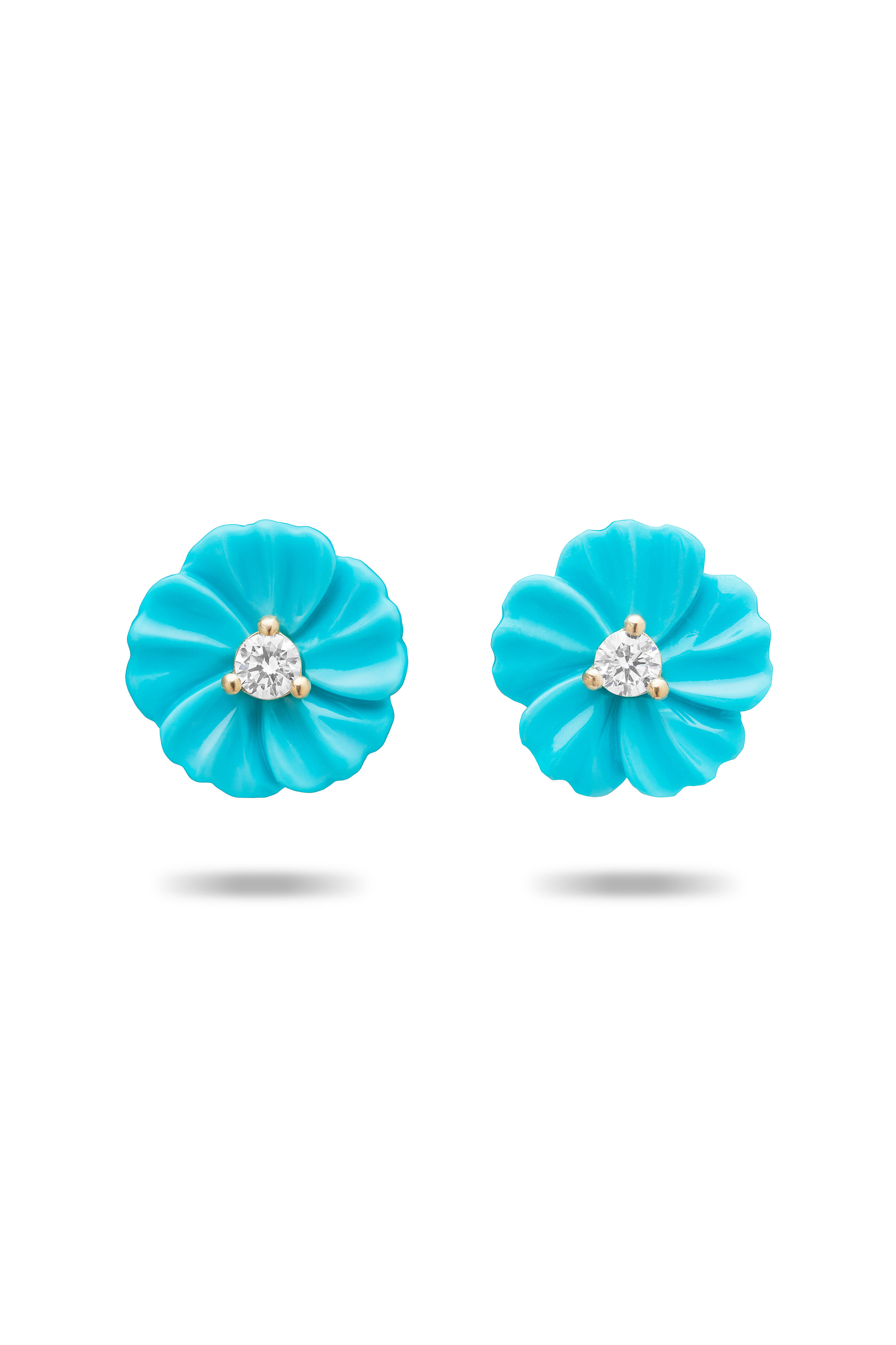 18k Yellow Gold. .10 ct White Diamond. 5.12 ct Turquoise. 12 mm.