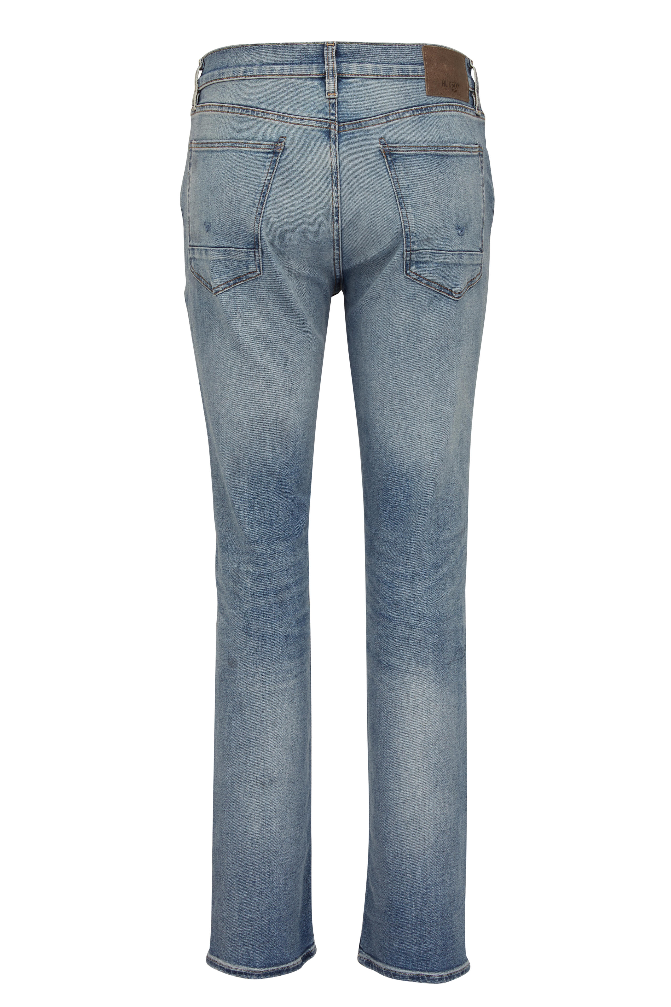 Zip fly with button closure. Five pocket styling. Slight distressed detailing. Imported. 34" inseam. 12" rise. 93% cotton, 6% polyester, 1% elastane. Machine wash.