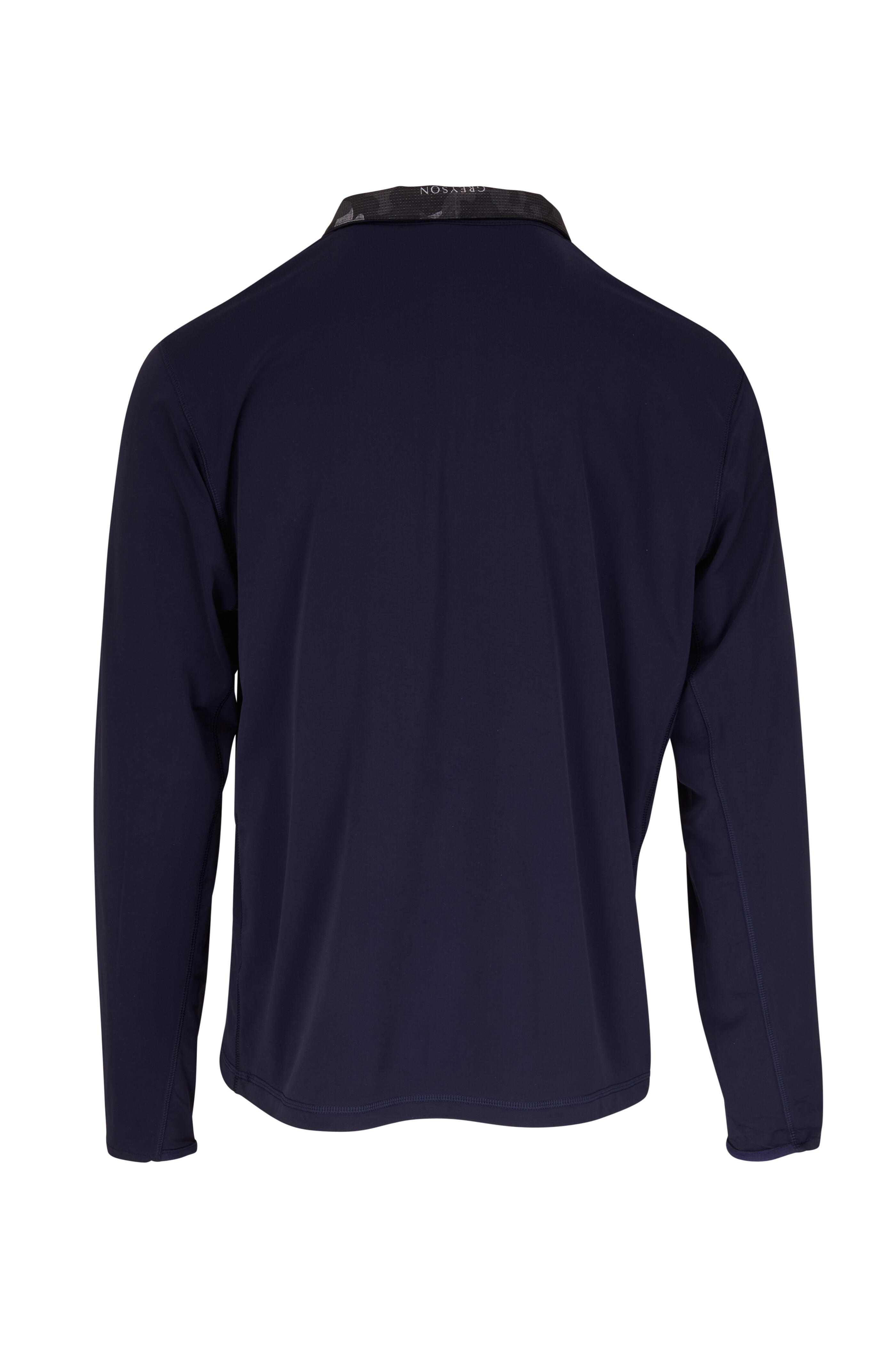 Stand collar. Quarter zip closure. Imported. 80% polyamide, 20% elastane. Machine wash.