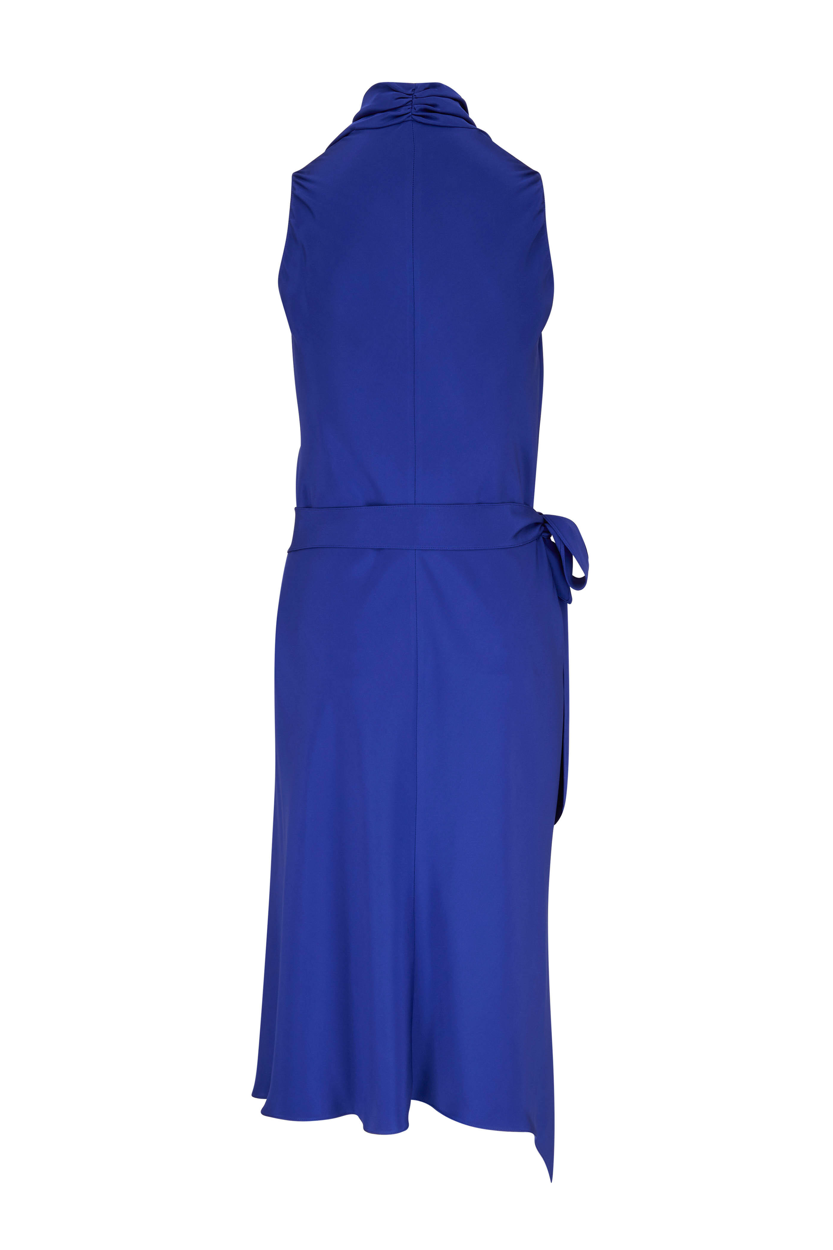 Draped v-neckline. Wrap closure. Made in the USA. 100% silk. Dry clean.