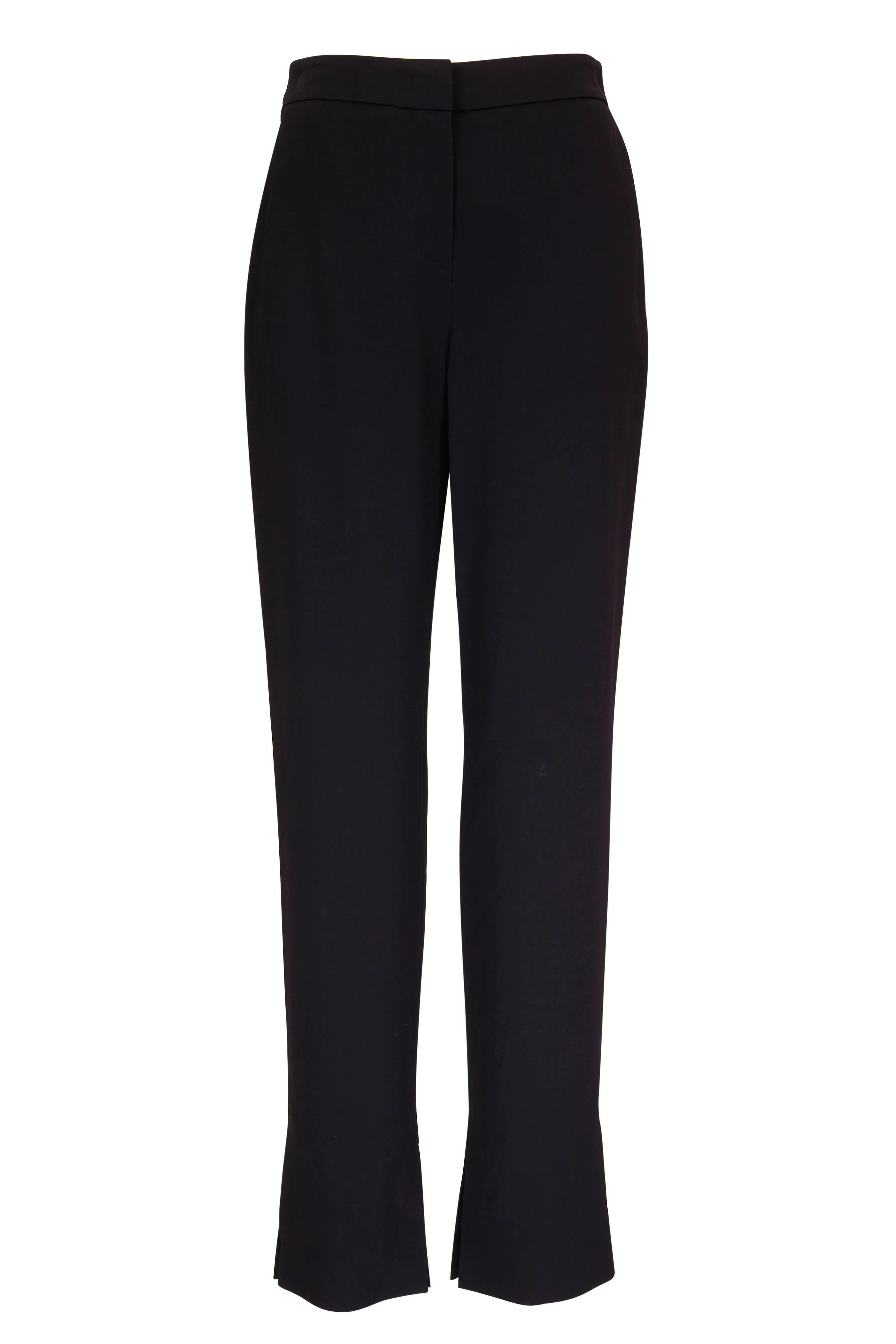 Double snap button with zip fly. Concealed side seam pockets. Side ankle slits. Made in Italy. 96% viscose, 4% elastane. Dry clean.