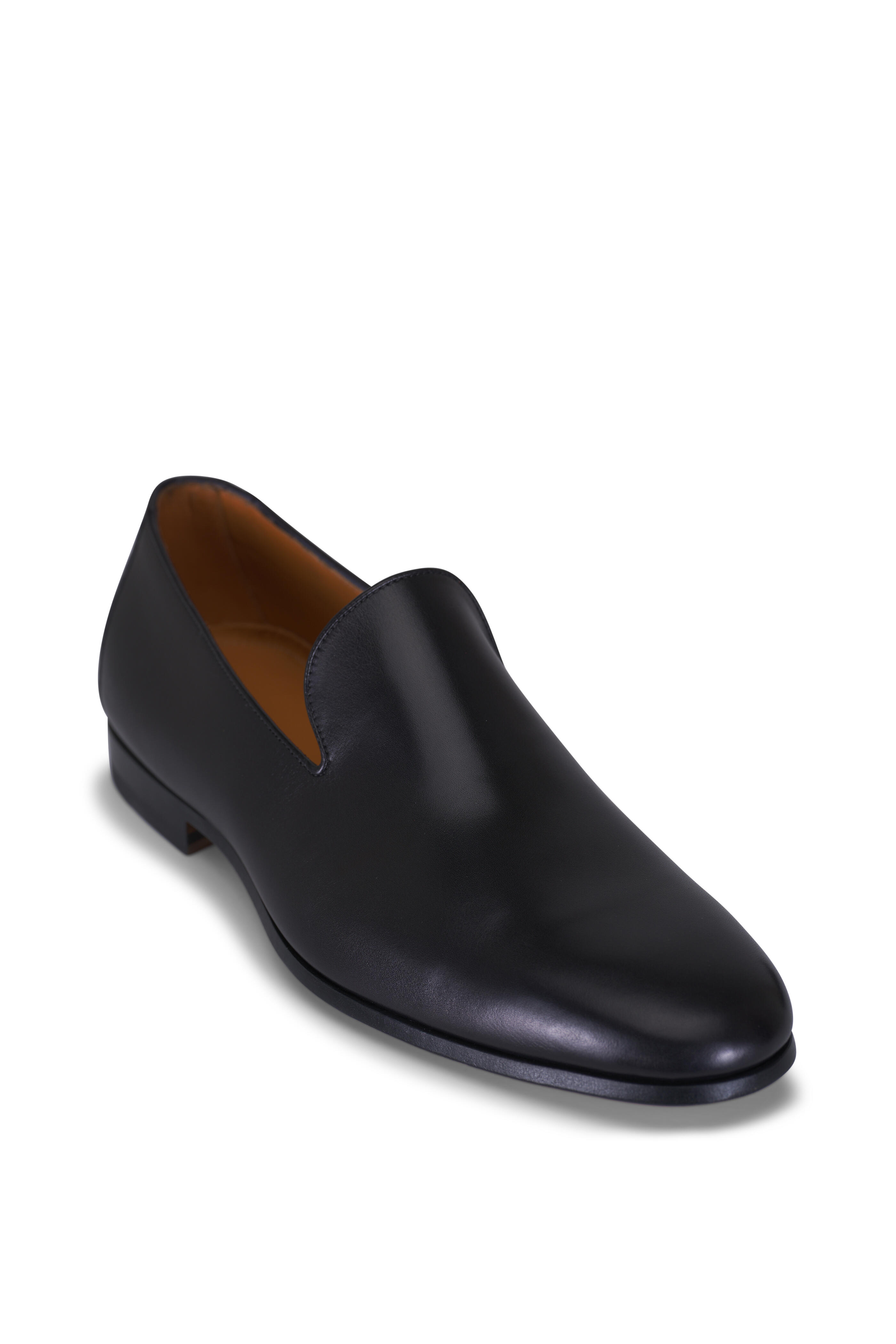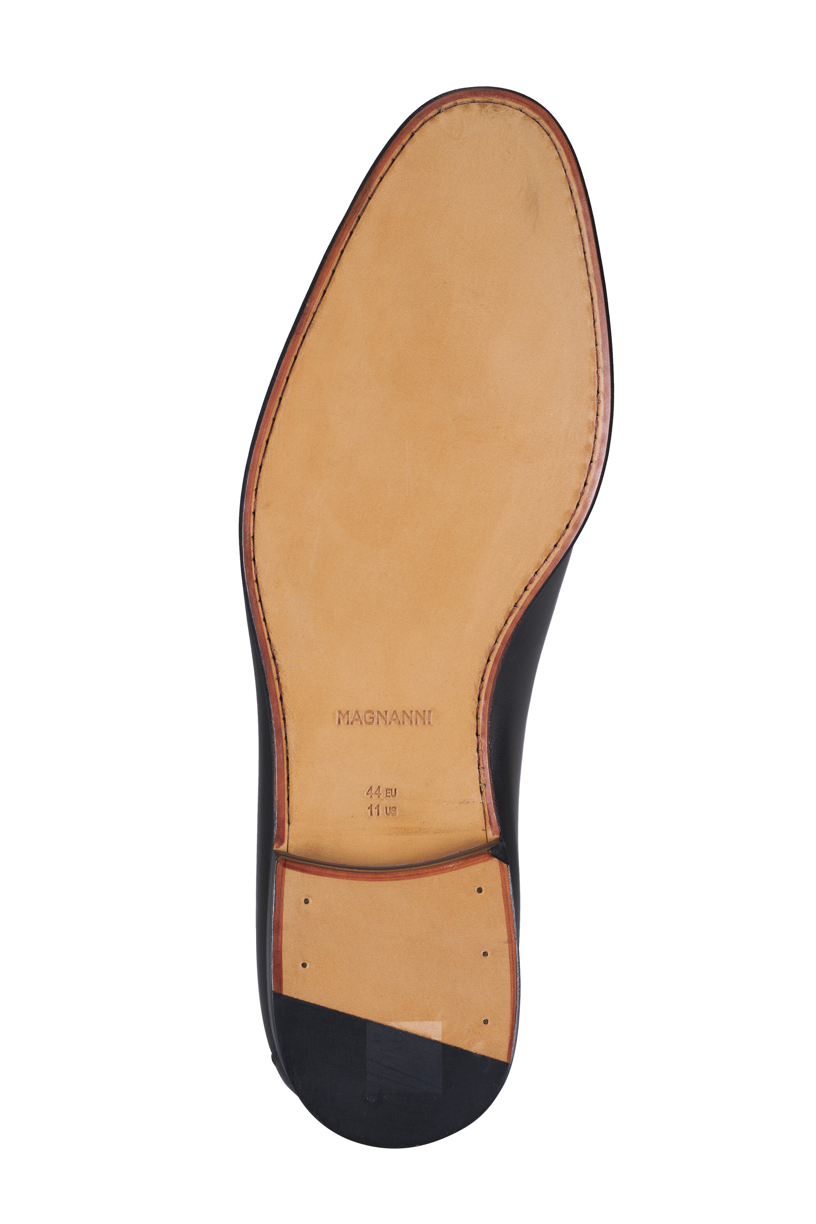 Leather upper. Tapered, round toe. Slip on style. Leather lining and insole. Leather sole; partial rubber soled heel. Made in Spain.