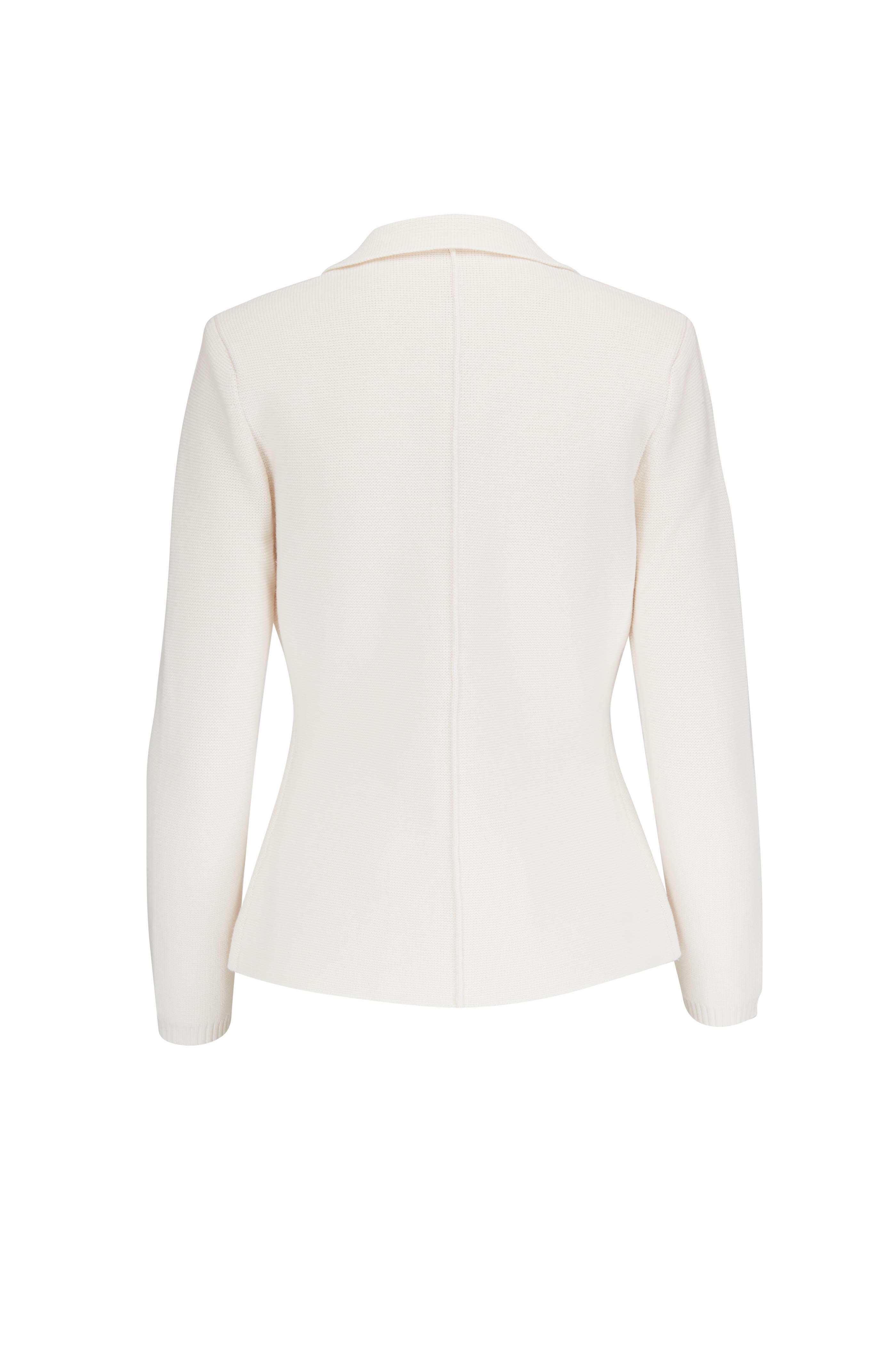 Notched lapels. Single button closure. Lower patch pockets. Imported. Color: Ivory. Approx. 25.25" shoulder to hem. 50% cotton, 40% acrylic, 10% nylon. Dry clean.