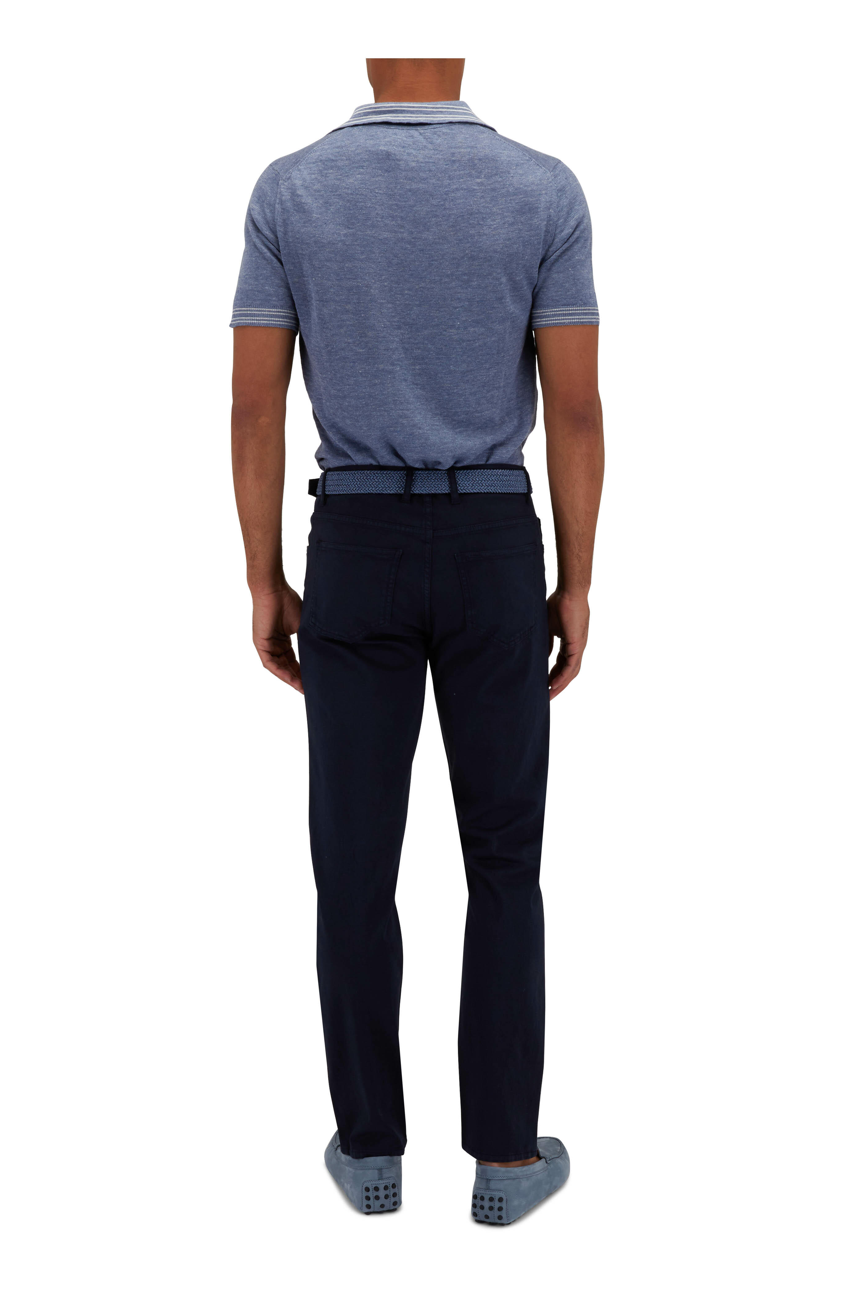 Navy Stretch Cotton & Cashmere Five Pocket Pant