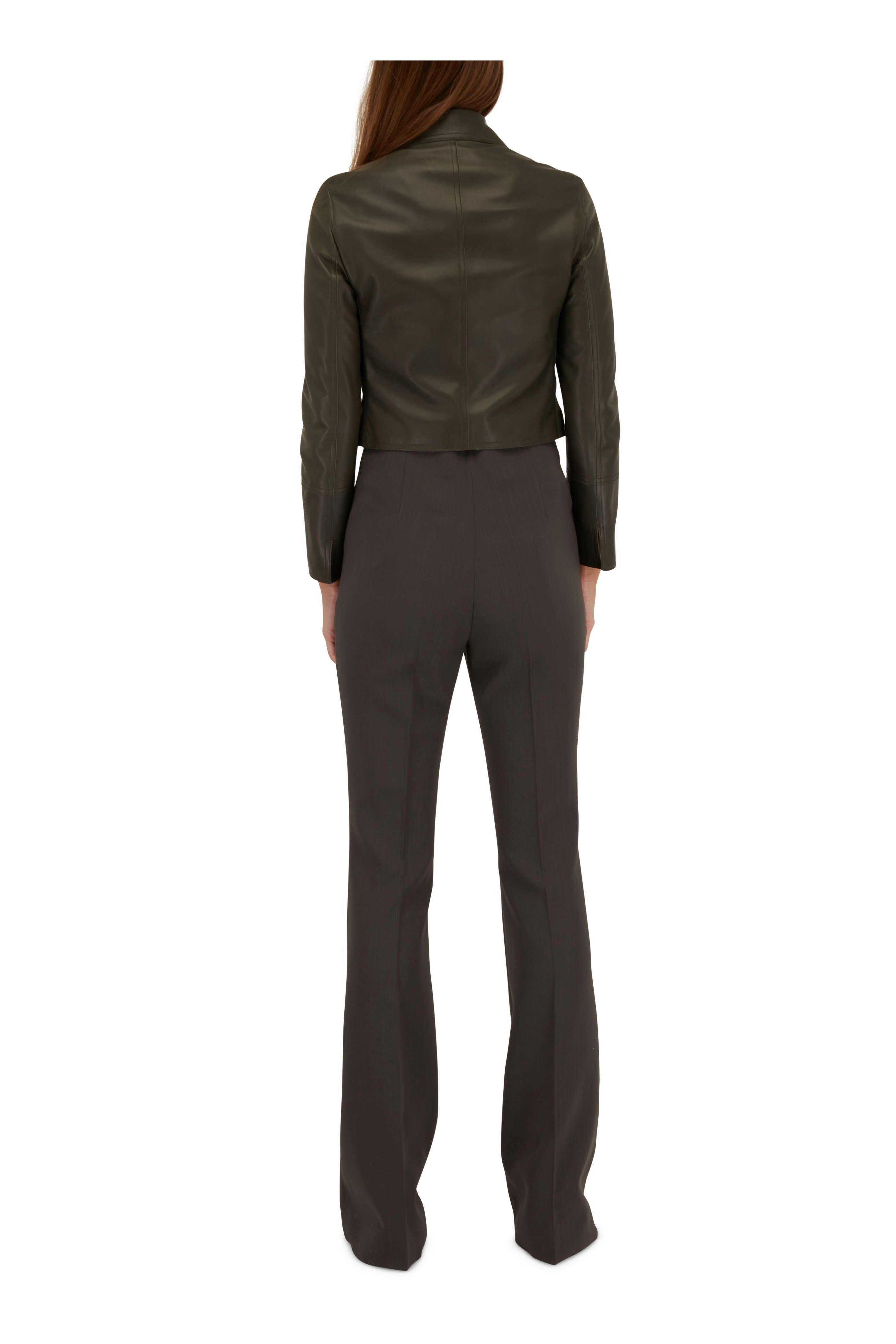 Clary Moss Green Leather Short Moto Jacket