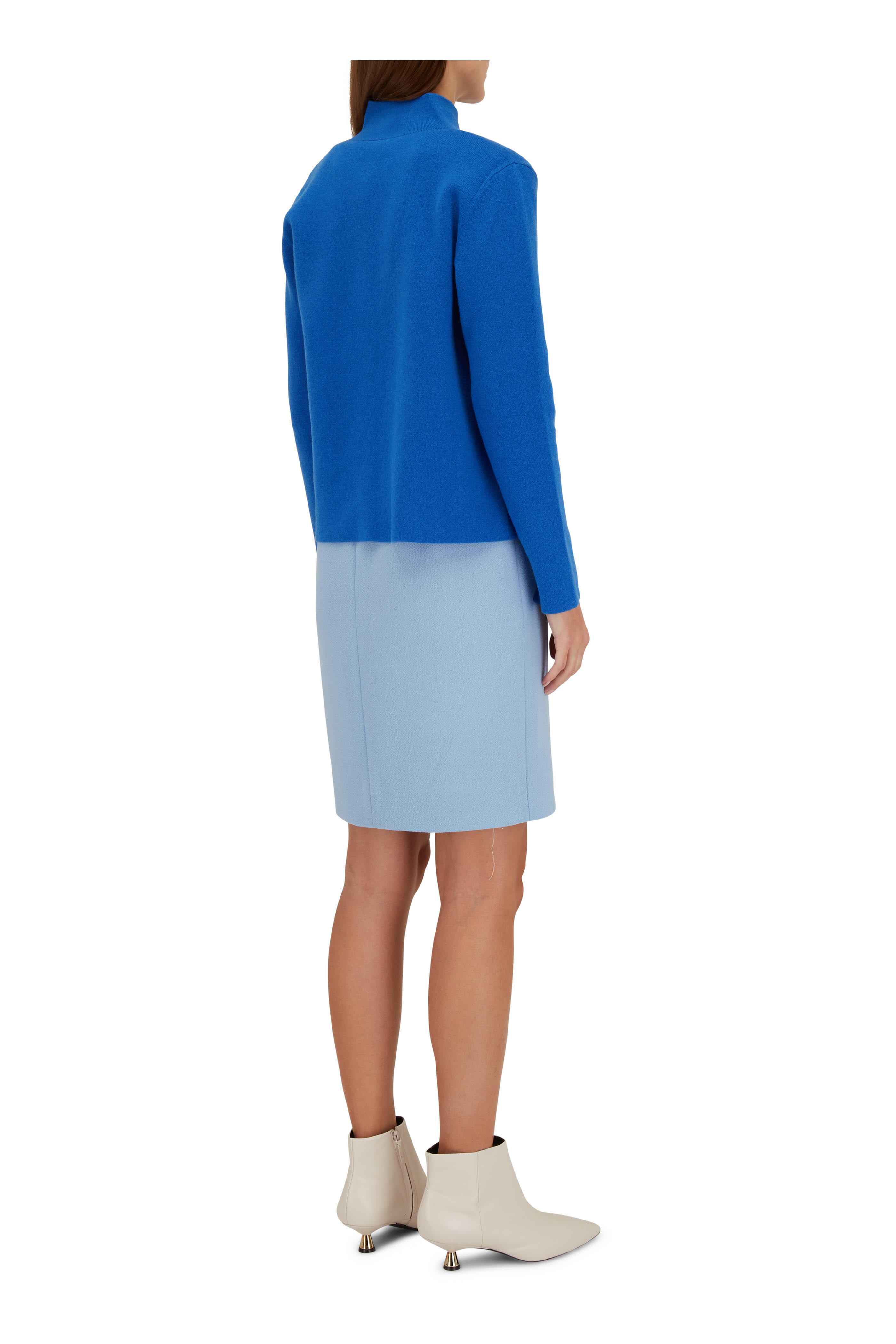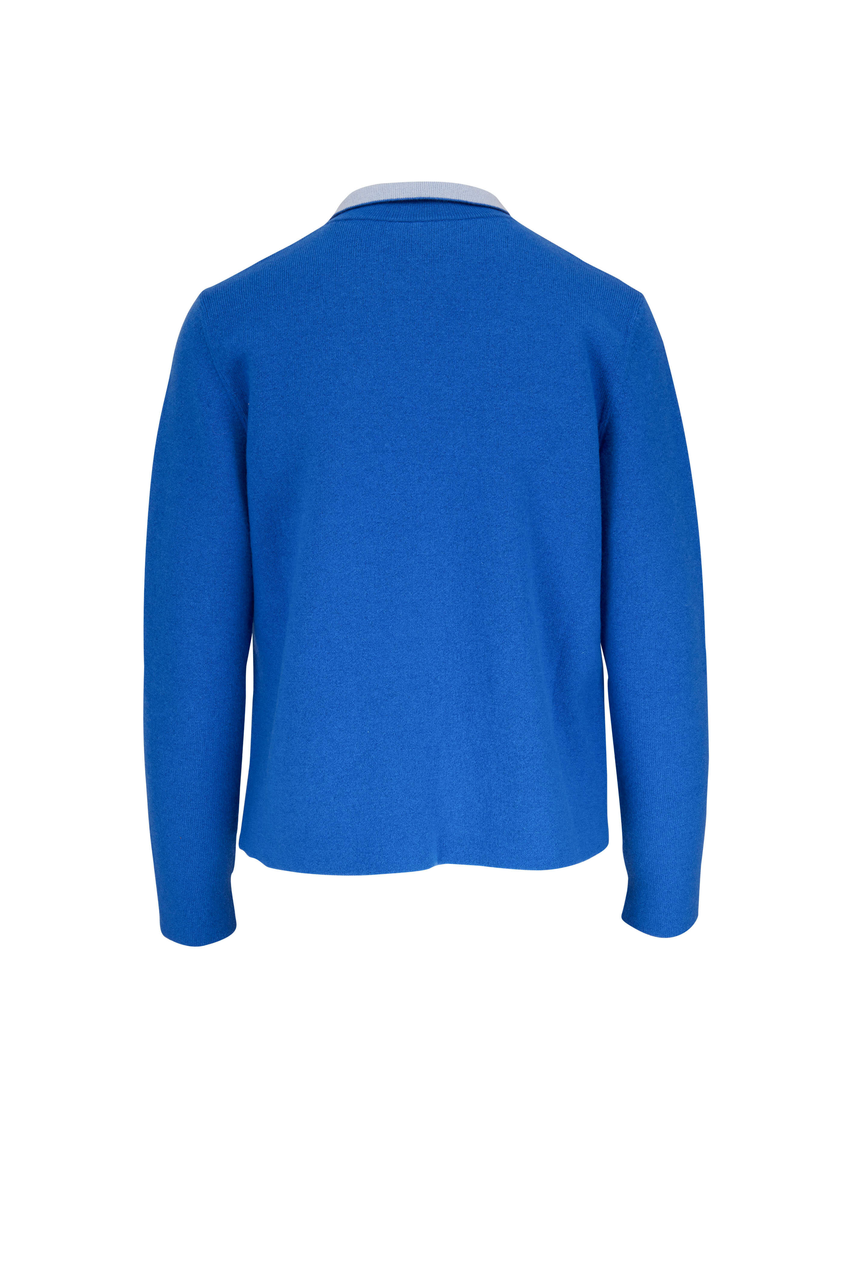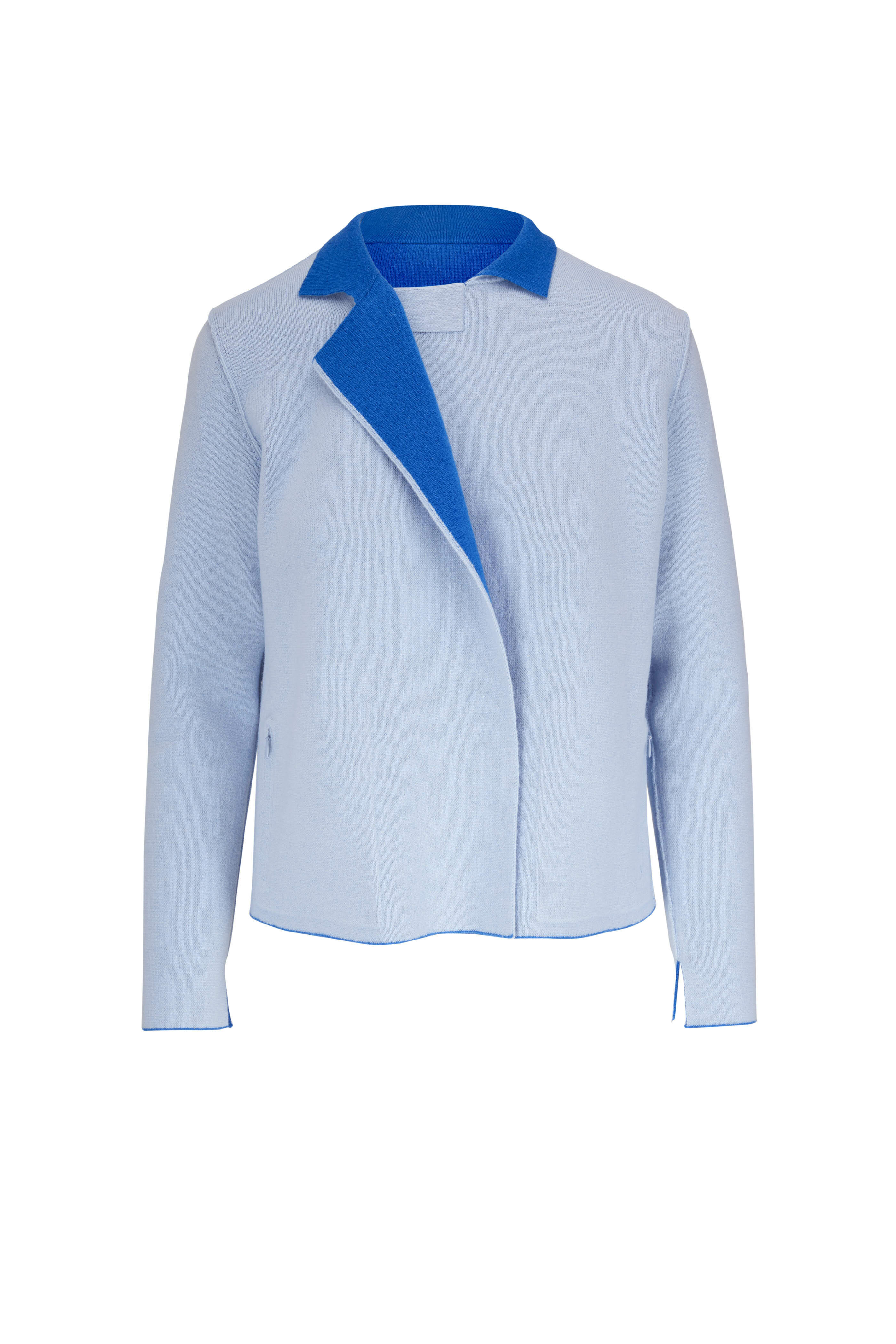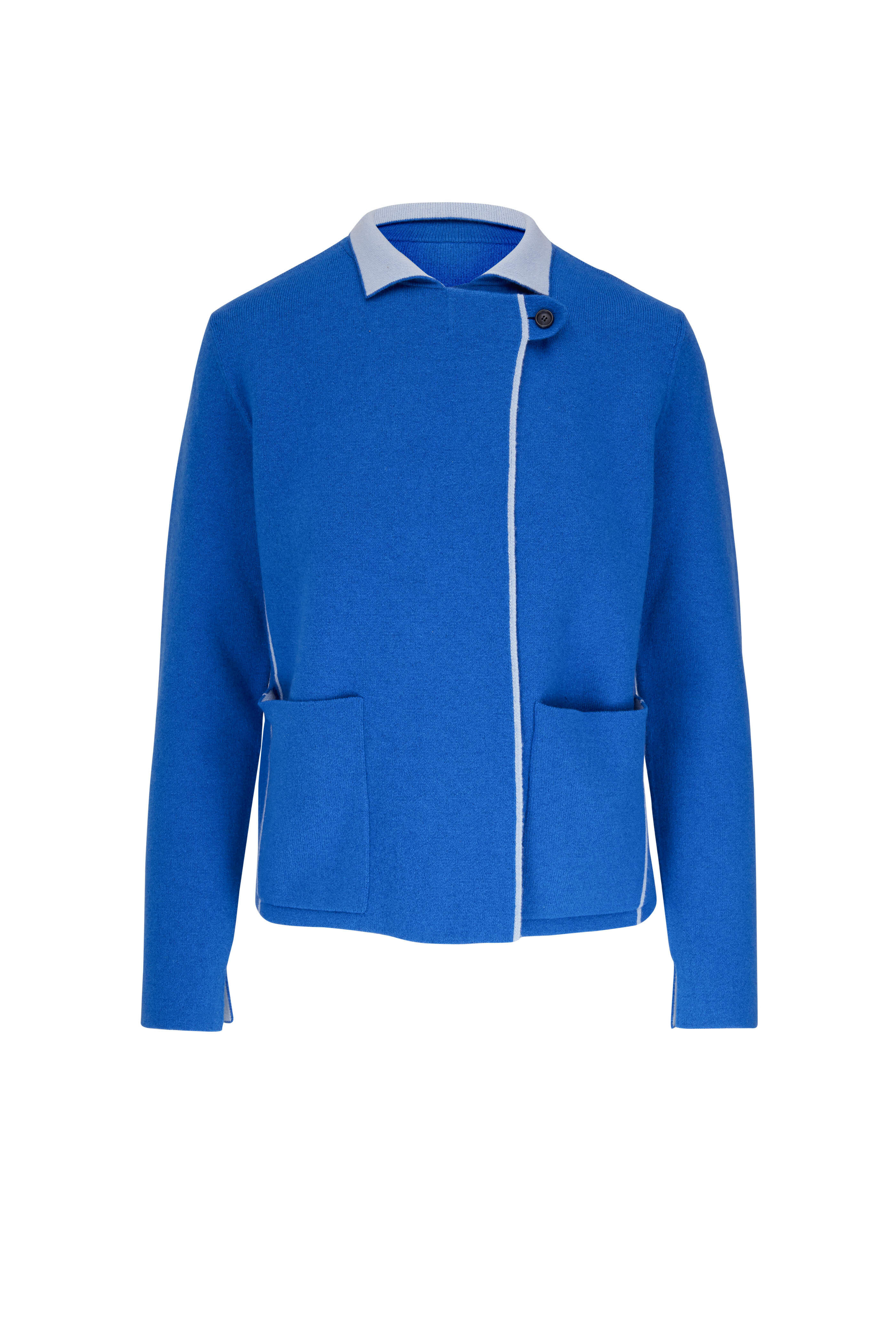 Spread collar. Neck button tab. Open front. Side zip pockets; Reverse side: side patch pockets. Short slit cuffs. Straight hem. Fabric from Italy. 100% cashmere. Dry clean.
