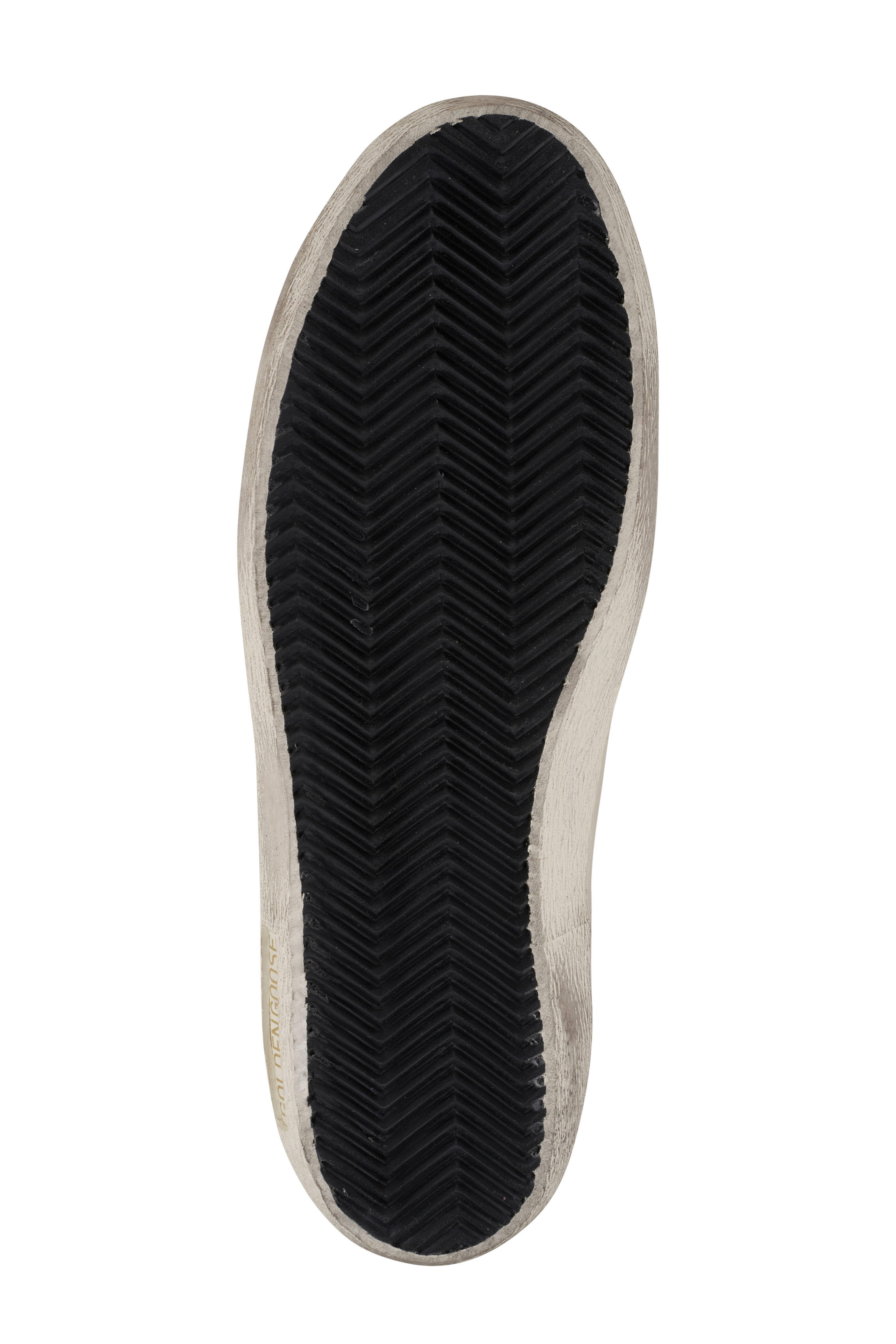 Leather upper. Round suede toe. Lace-up closure. White leather star. Contrast suede heel. Leather and cotton lining, cushioned insole. Rubber sole. Made in Italy.
