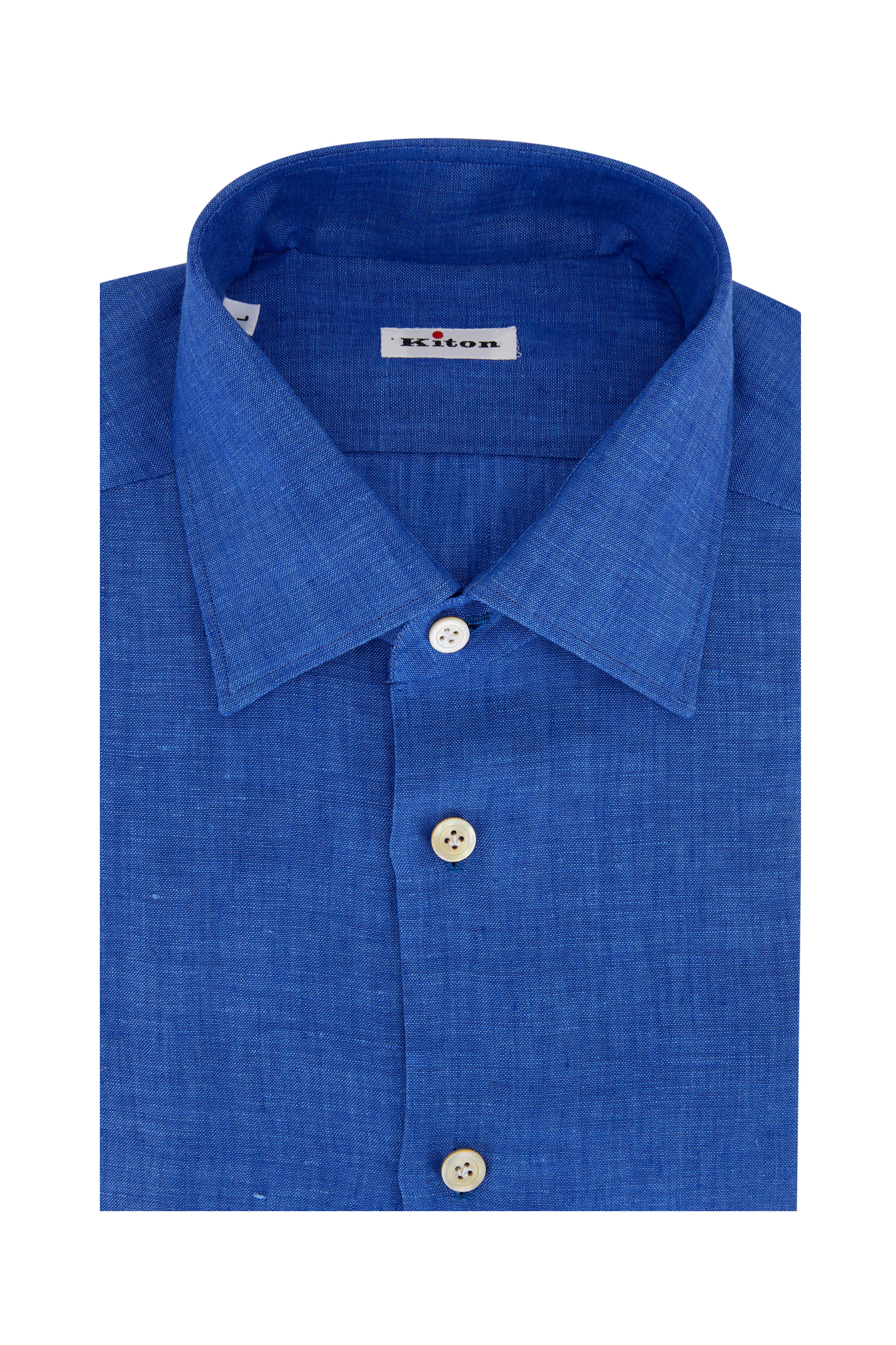 Spread collar. Single button barrel cuffs. Imported. 100% linen. Machine wash.