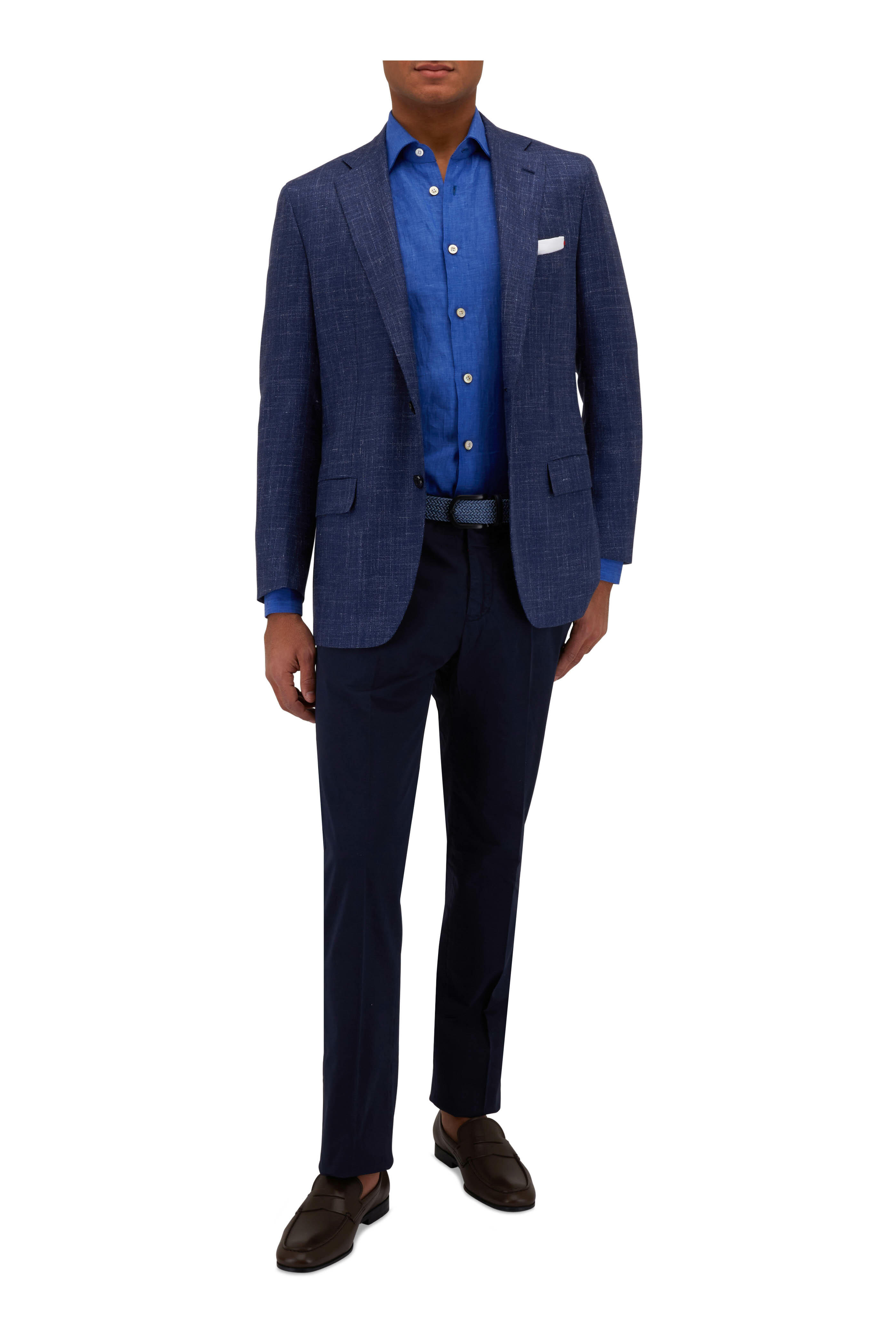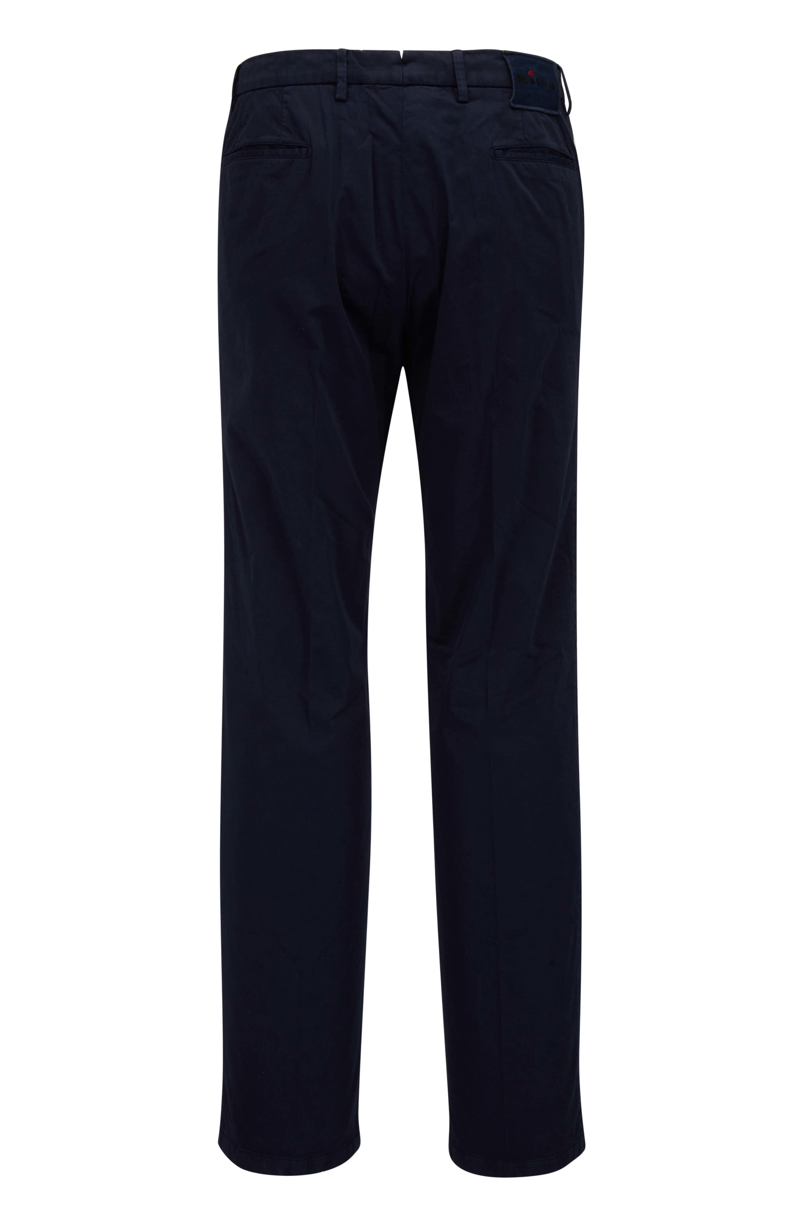 Belt loops. Front zip. Front slip pockets; back welt pockets. Made in Italy. 97% cotton, 3% elastane. Dry clean.