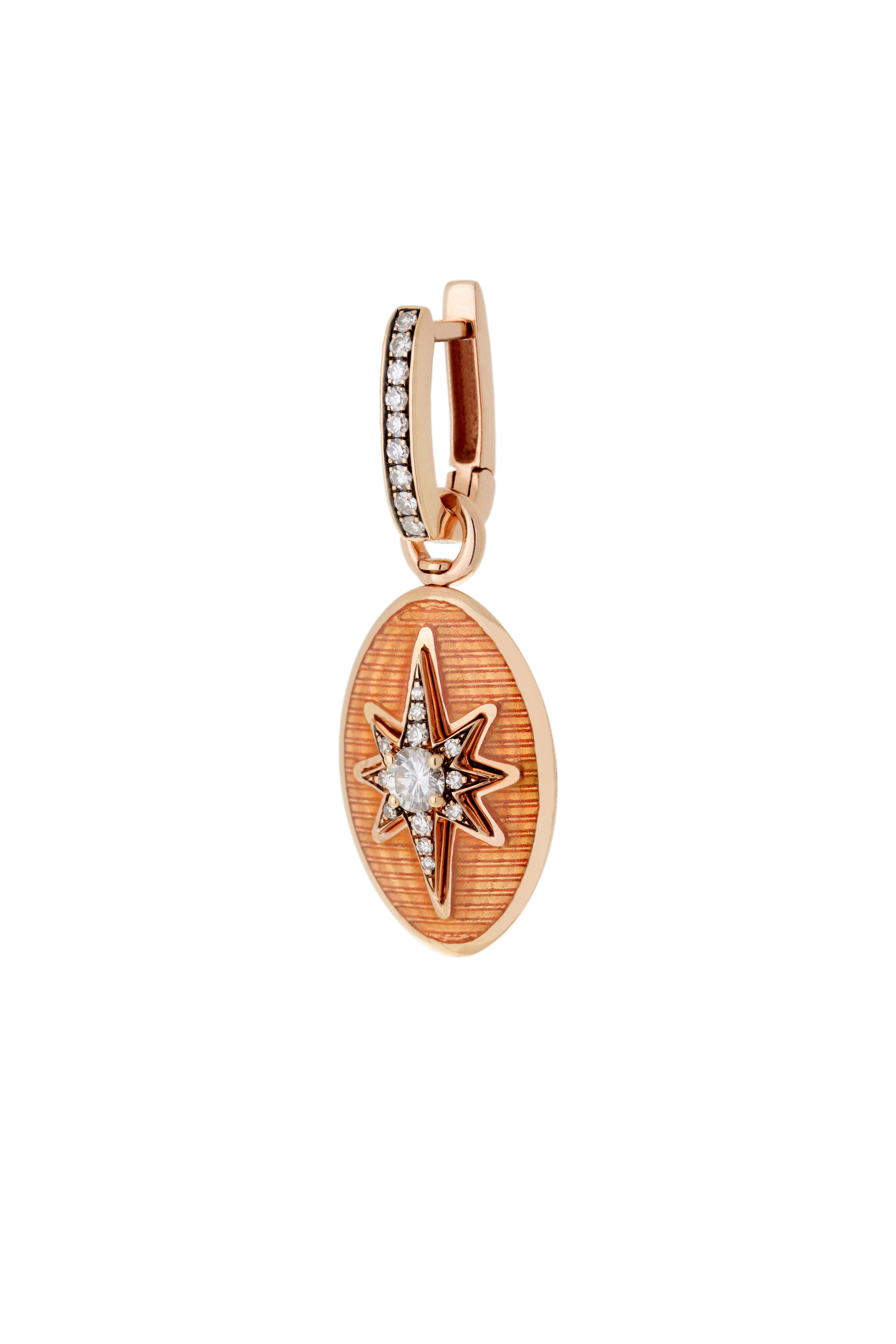 18k rose gold. .57 carat diamonds. Orange enamel. Single earring.