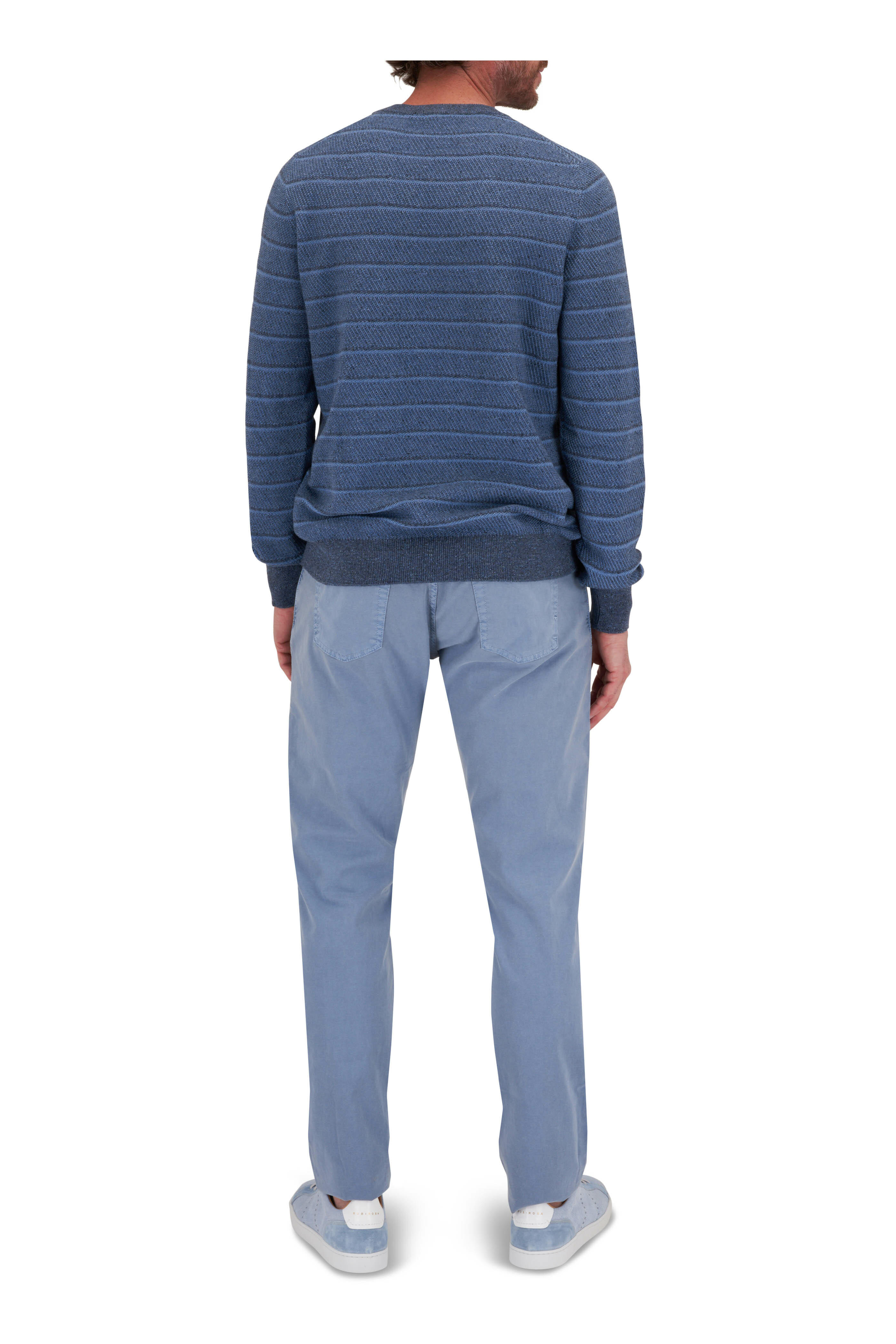 Crewneck. Ribbed trim. Made in Italy. 93% cotton, 7% linen. Machine wash.