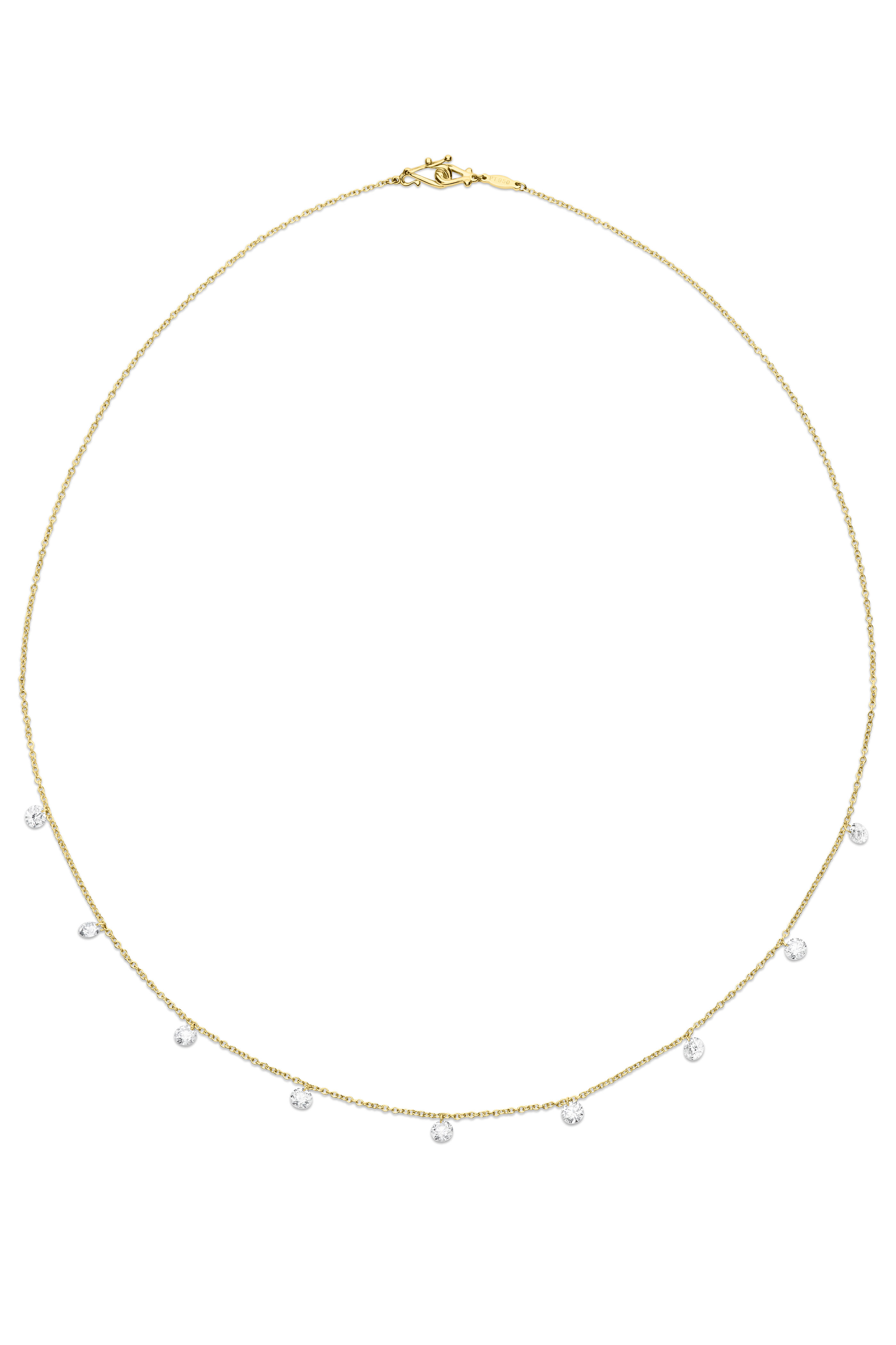 18k Yellow Gold. 9 Brilliant Cut White Diamonds: 0.77 tcw. Measures: 16″ Long. Secure Hook Clasp with Security Latch.