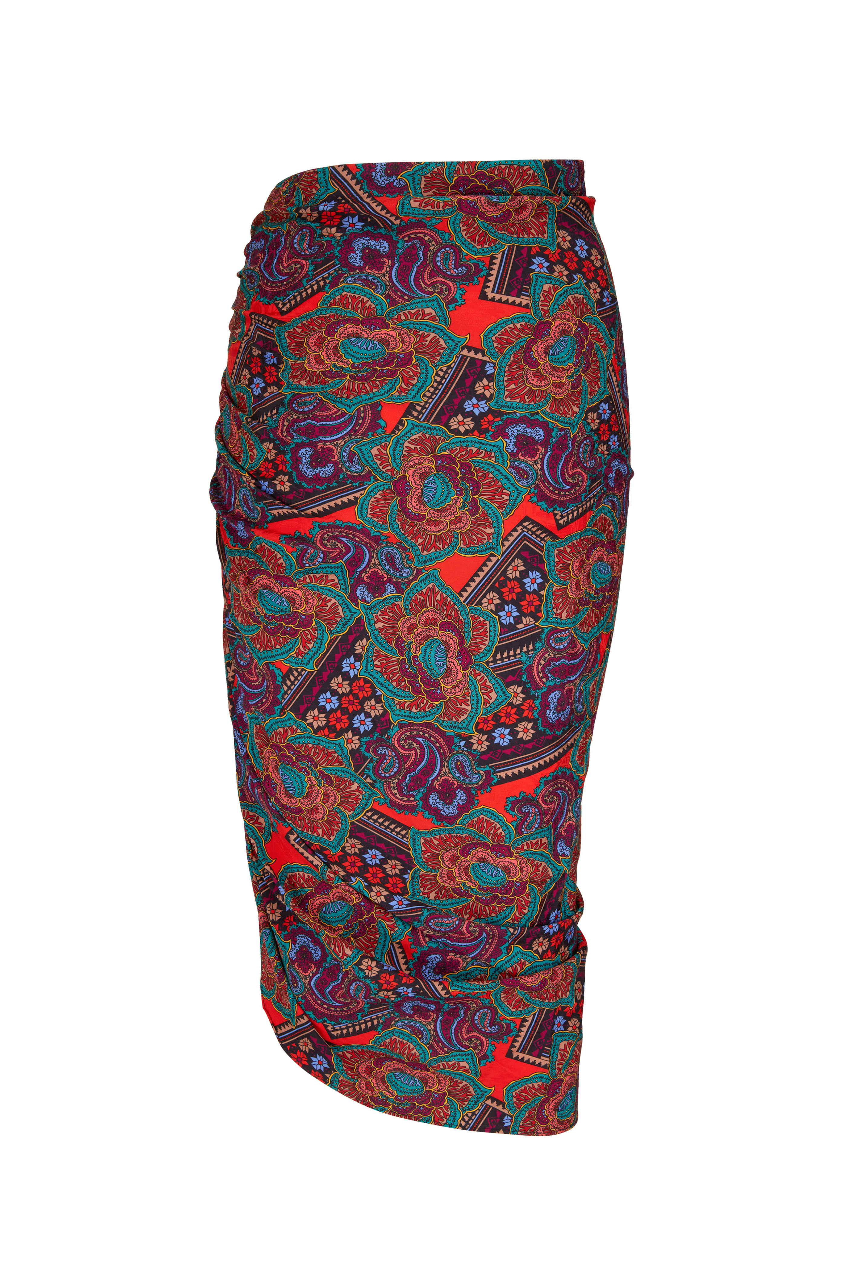 Ari Red Multi Floral Paisley Asymmetric Skirt
