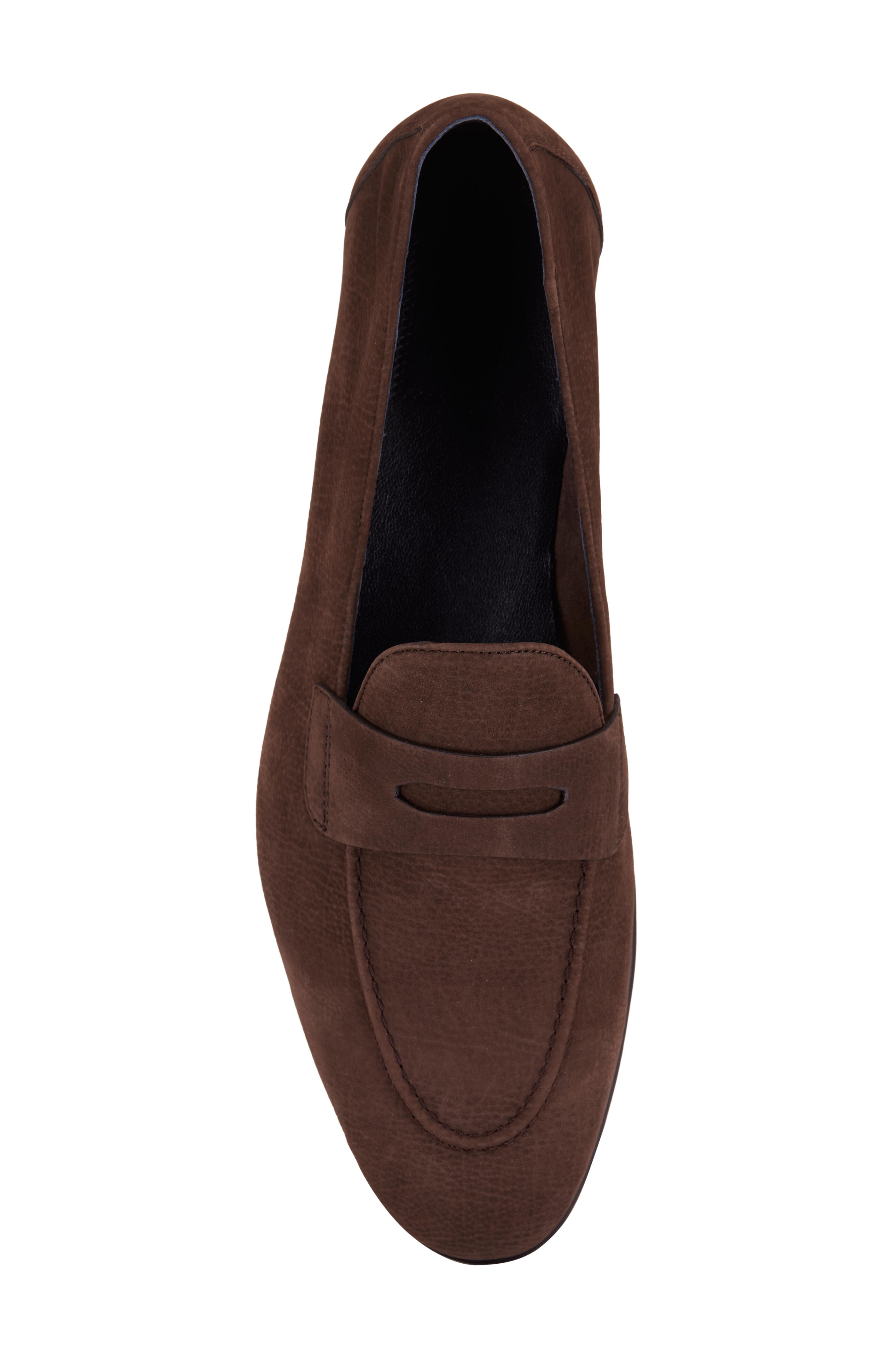 Suede. Tapered toe. Penny strap at vamp. Unlined; leather insole. Leather sole. Made in Italy.