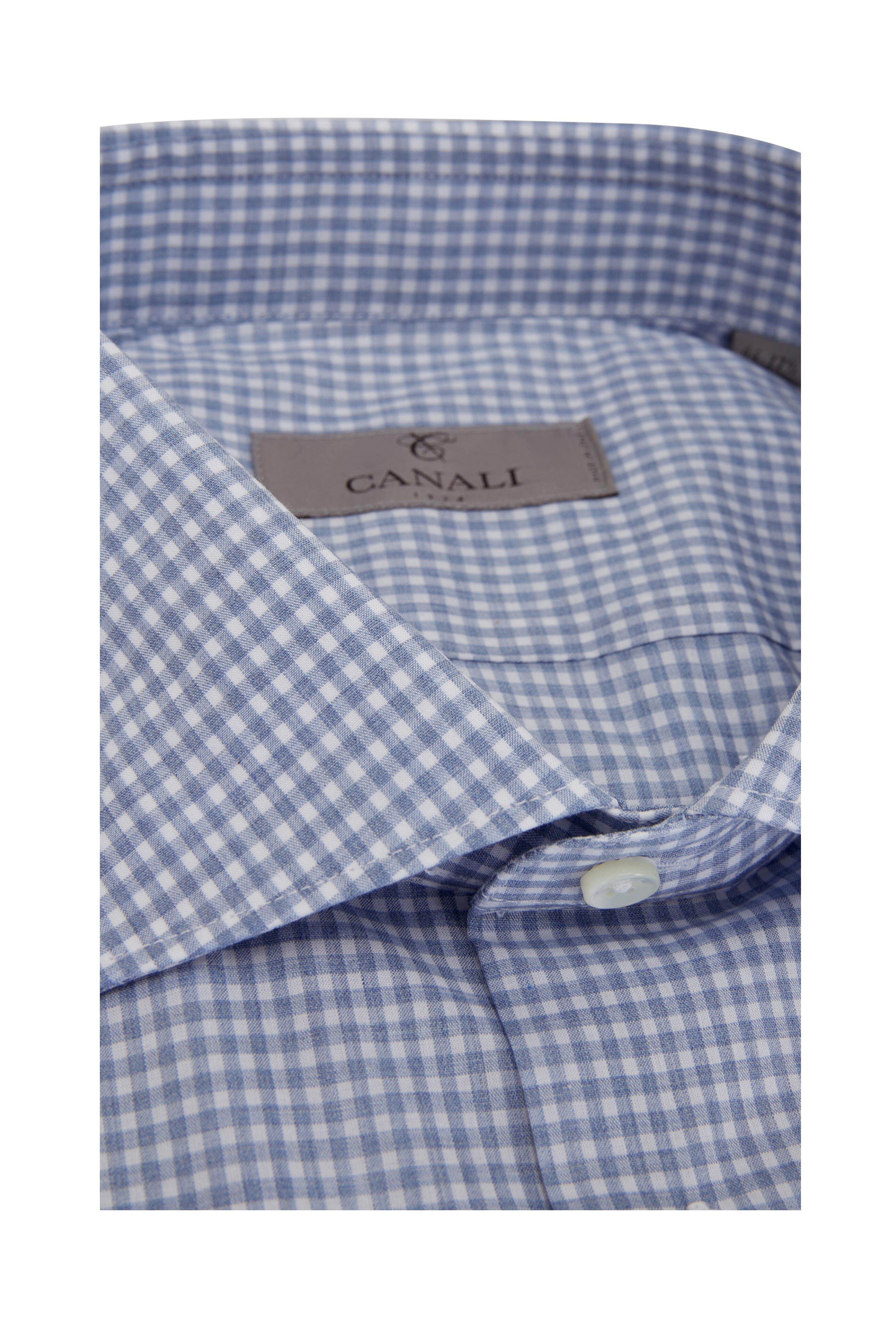 Spread collar. Front button placket. Single button cuffs. Made in Italy. 100% cotton. Machine wash.