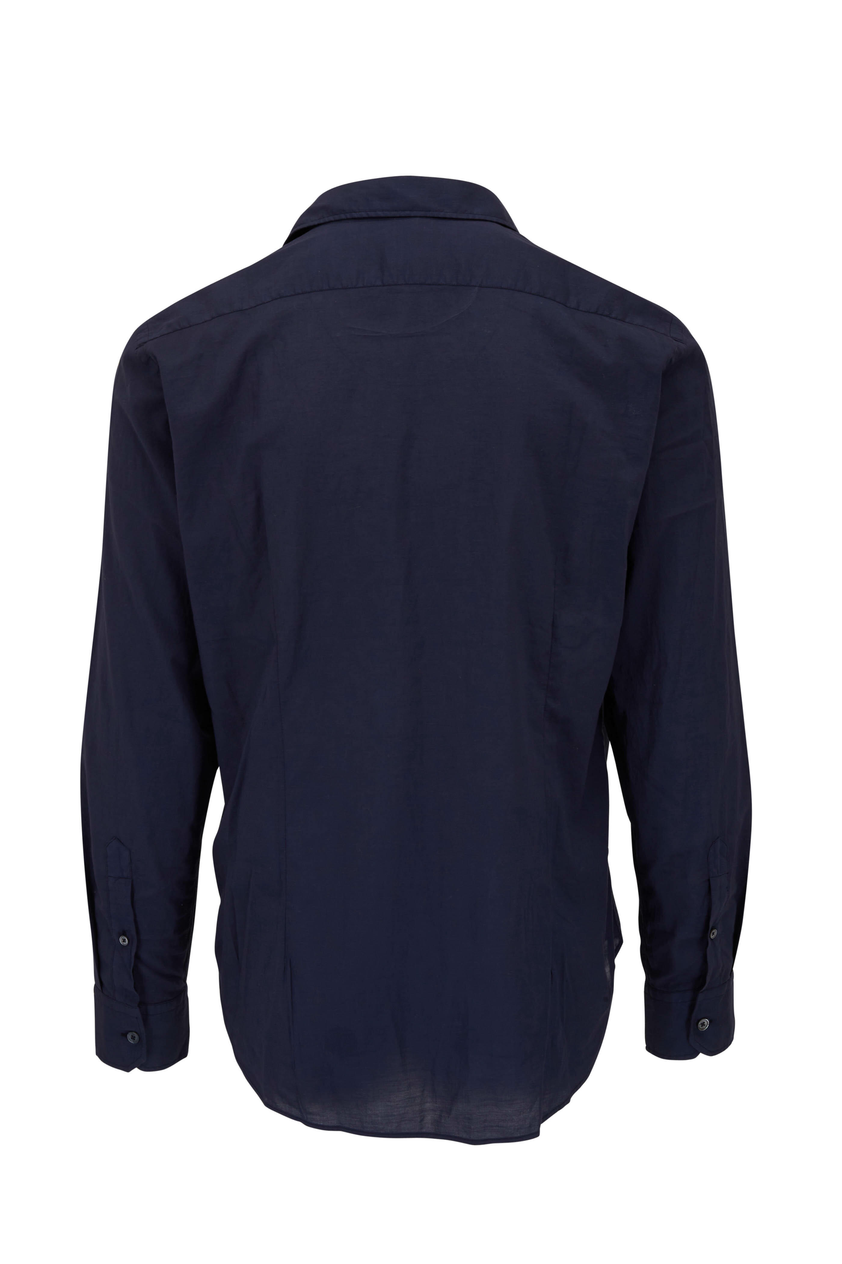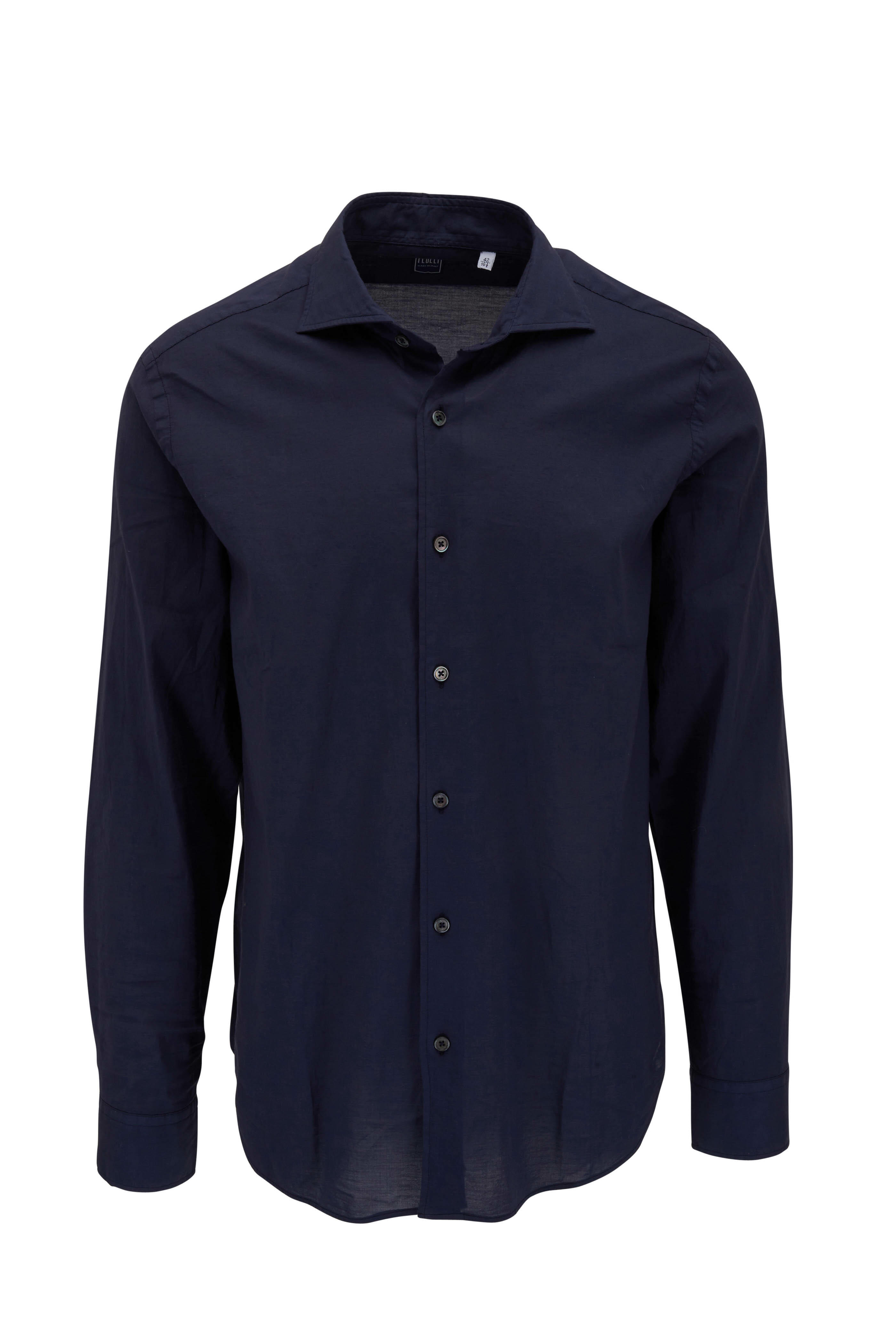 Spread collar. French placket. Single button cuffs. Made in Italy. 95% cotton, 5% elastane. Machine wash.