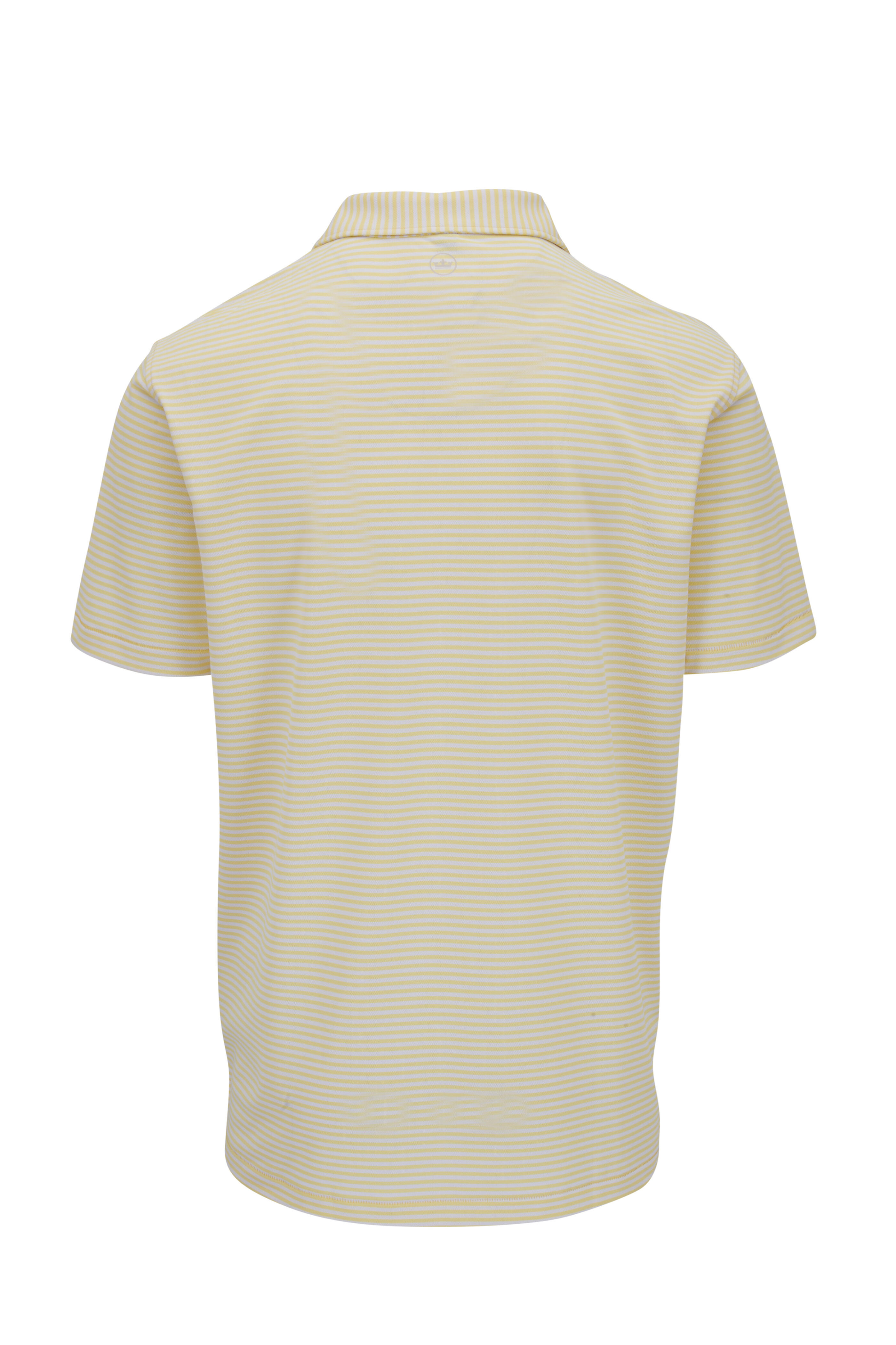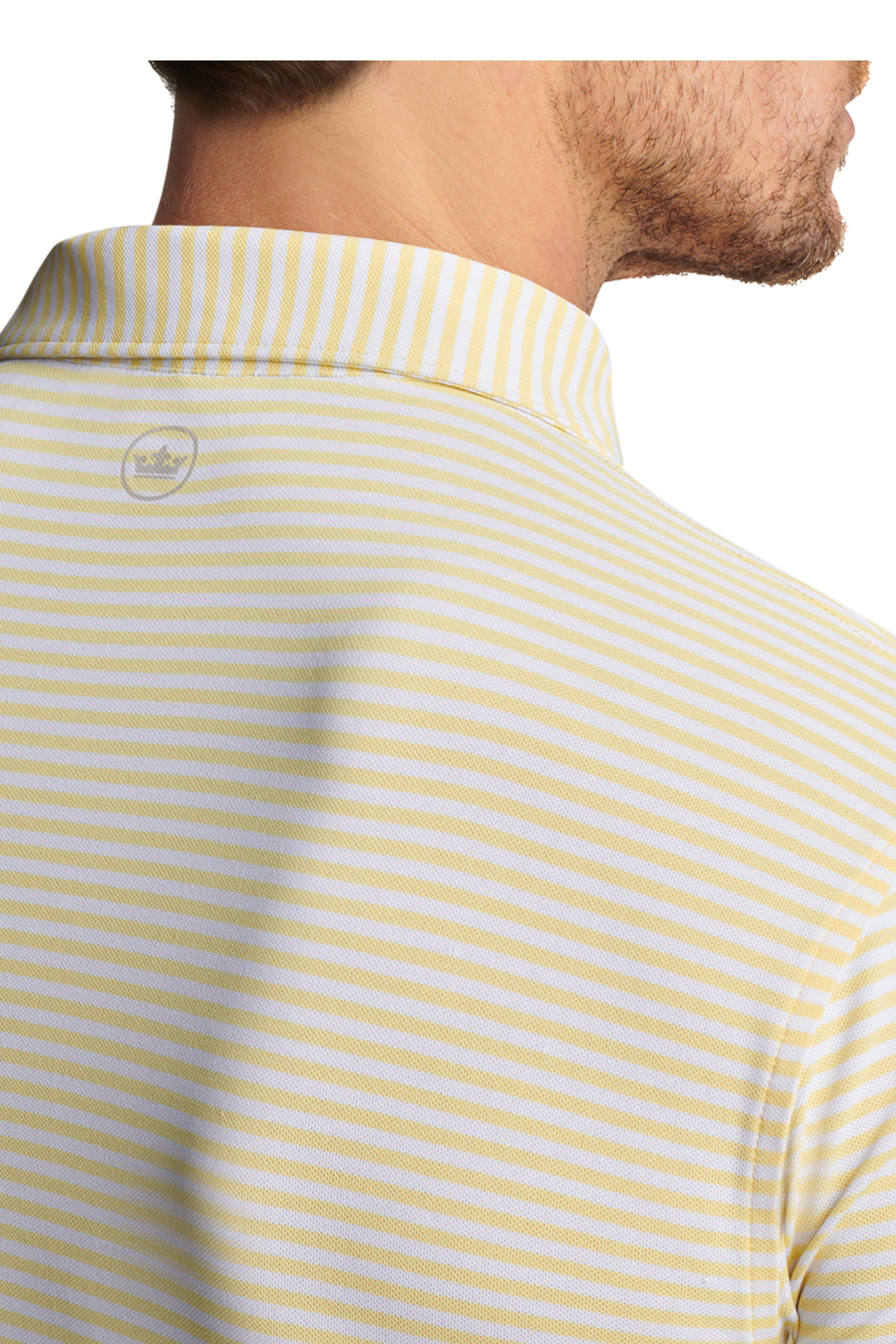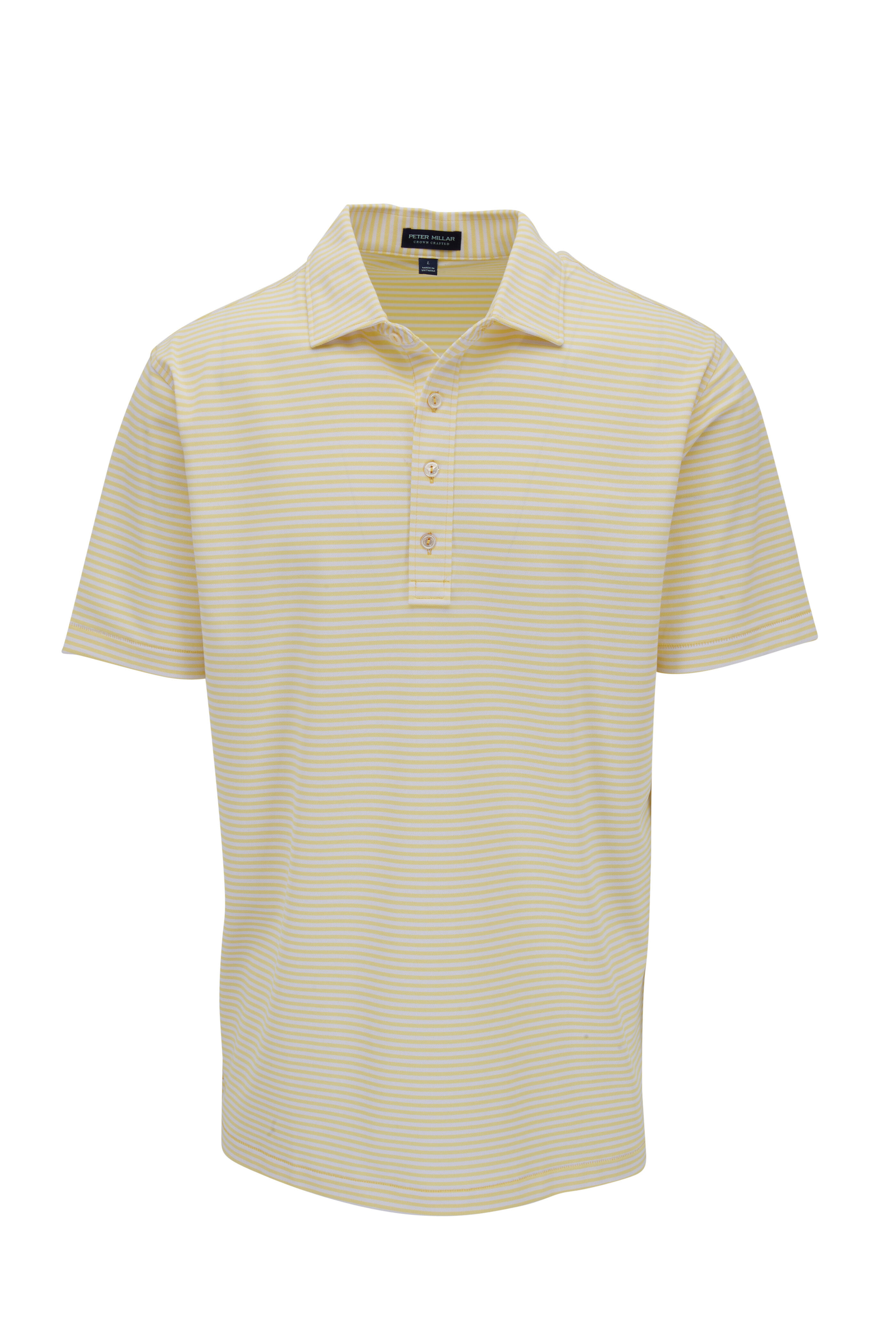 Edwin self-fabric spread collar. Two-button placket. Four-way stretch. Moisture wicking. Imported. Tailored fit. 94% polyester, 6% spandex. Machine wash.