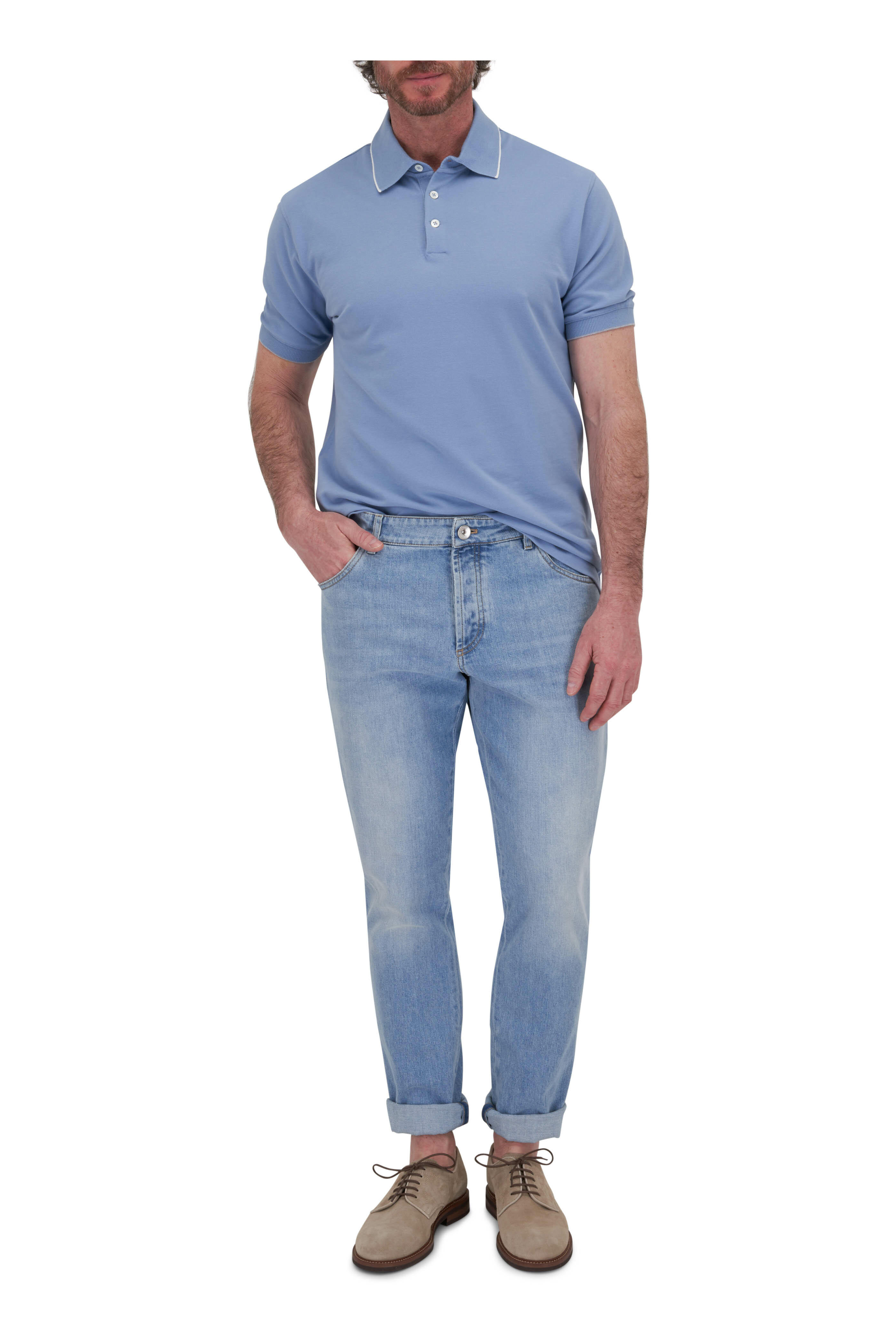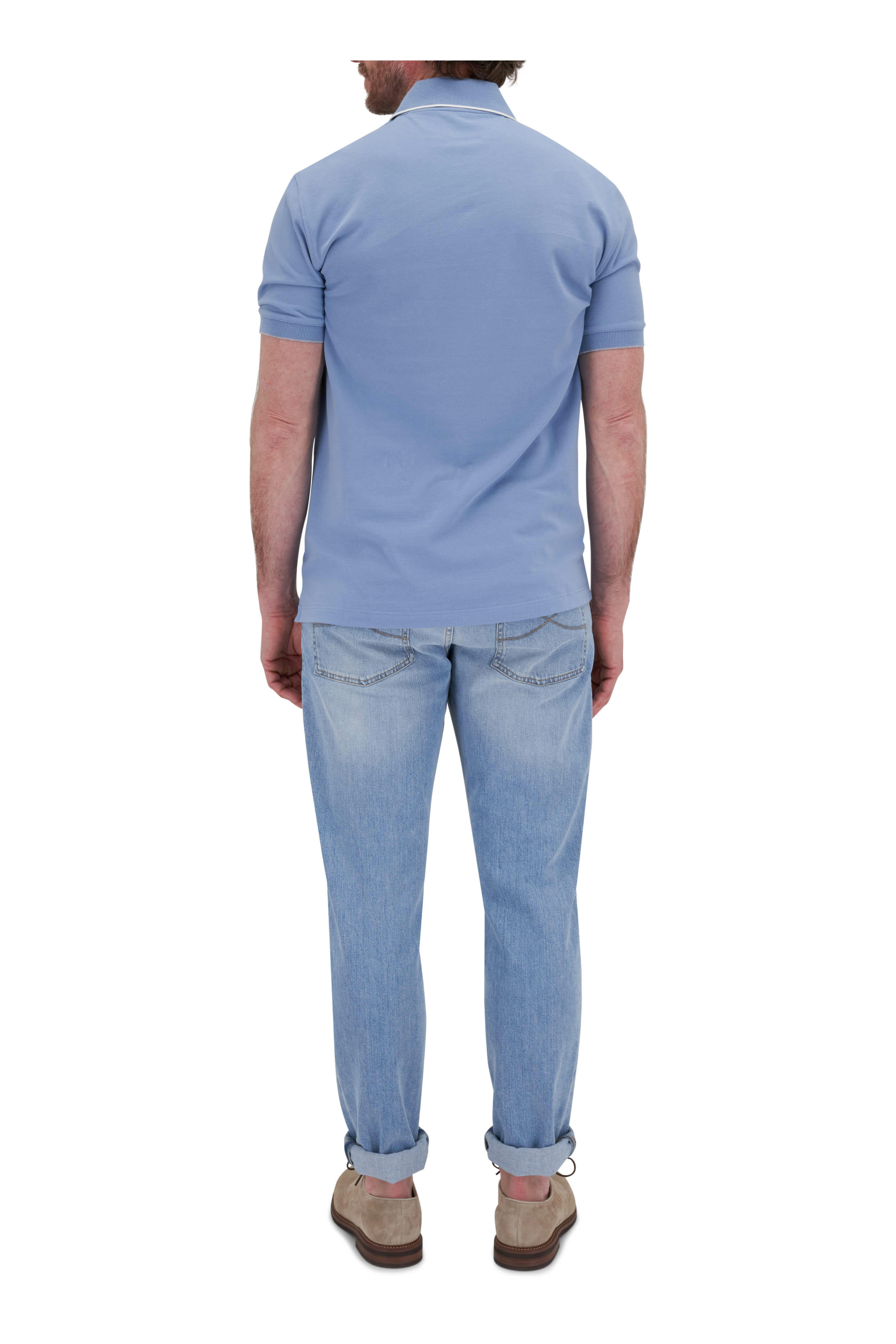 Light Blue Piqué Tipped Cotton Polo