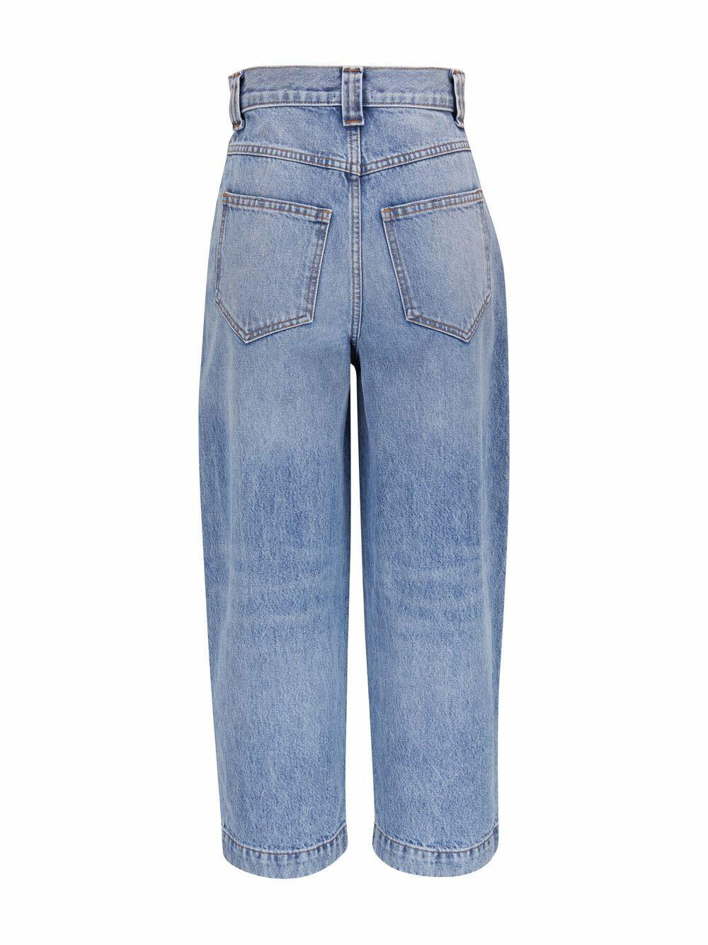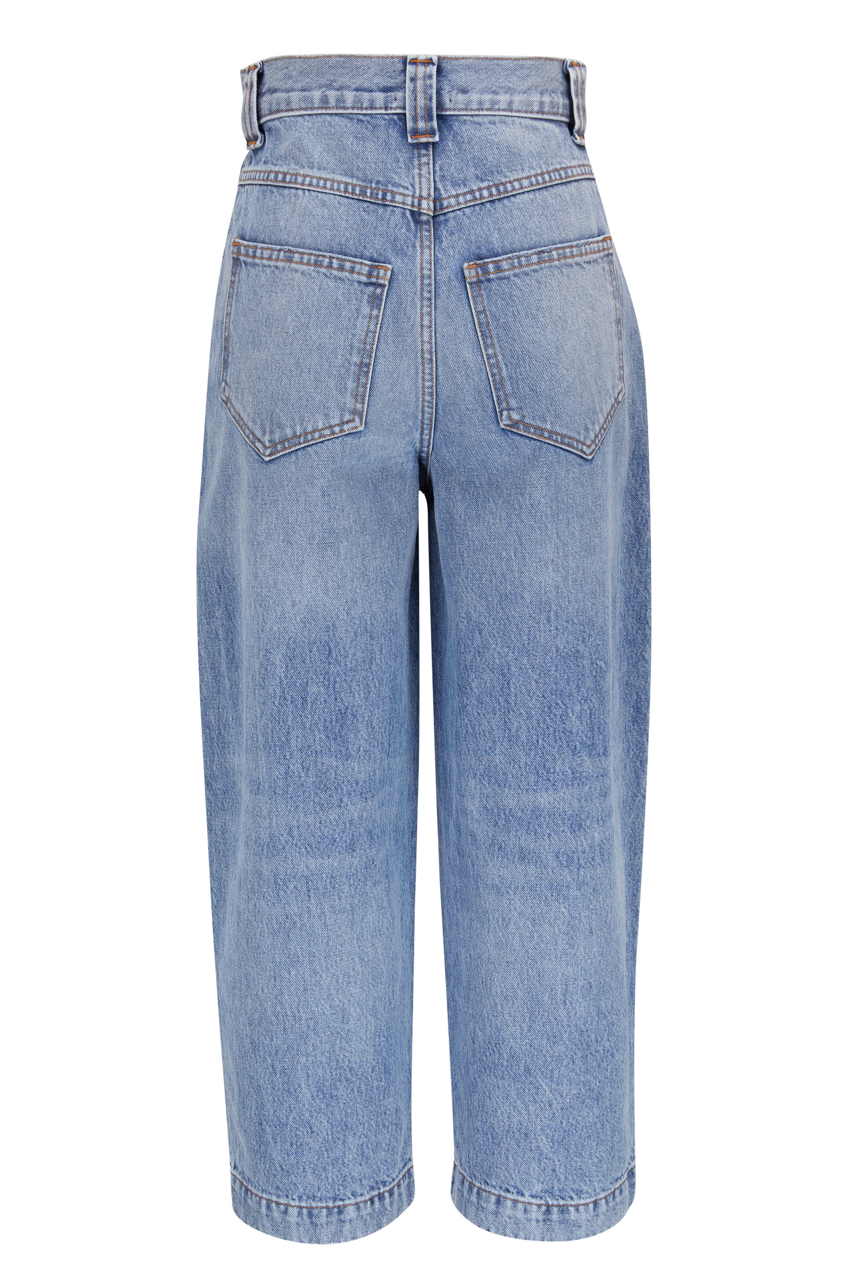 Belt loops. Zip fly; button closure. Extended front patch pockets; back patch pockets. Made in the USA. Mid weight; non stretch. High rise. Inseam: 24.8” (size 26). 100% cotton. Hand wash.