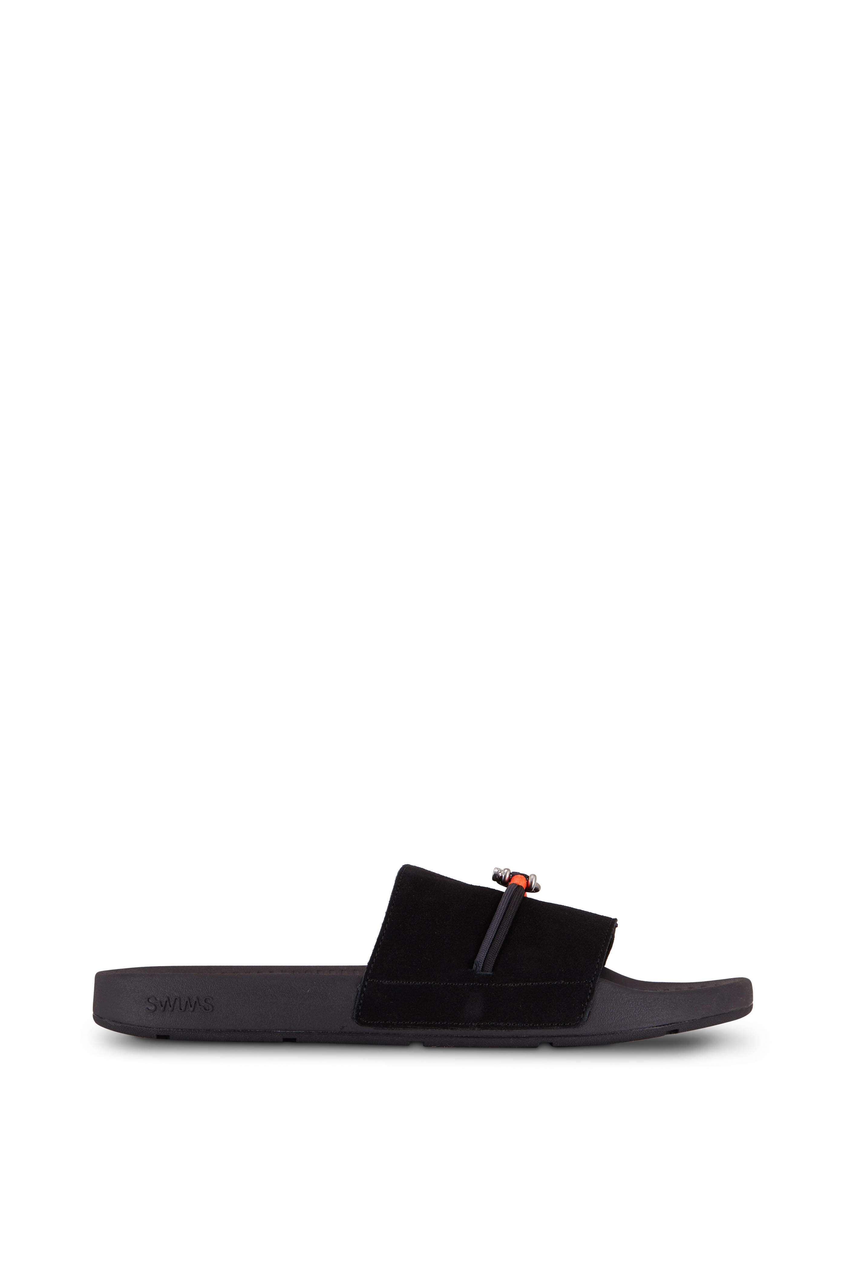 Leather and lycra upper. Round, open toe. Signature branding and roping on vamp. Synthetic lining. Rubber sole. Imported.