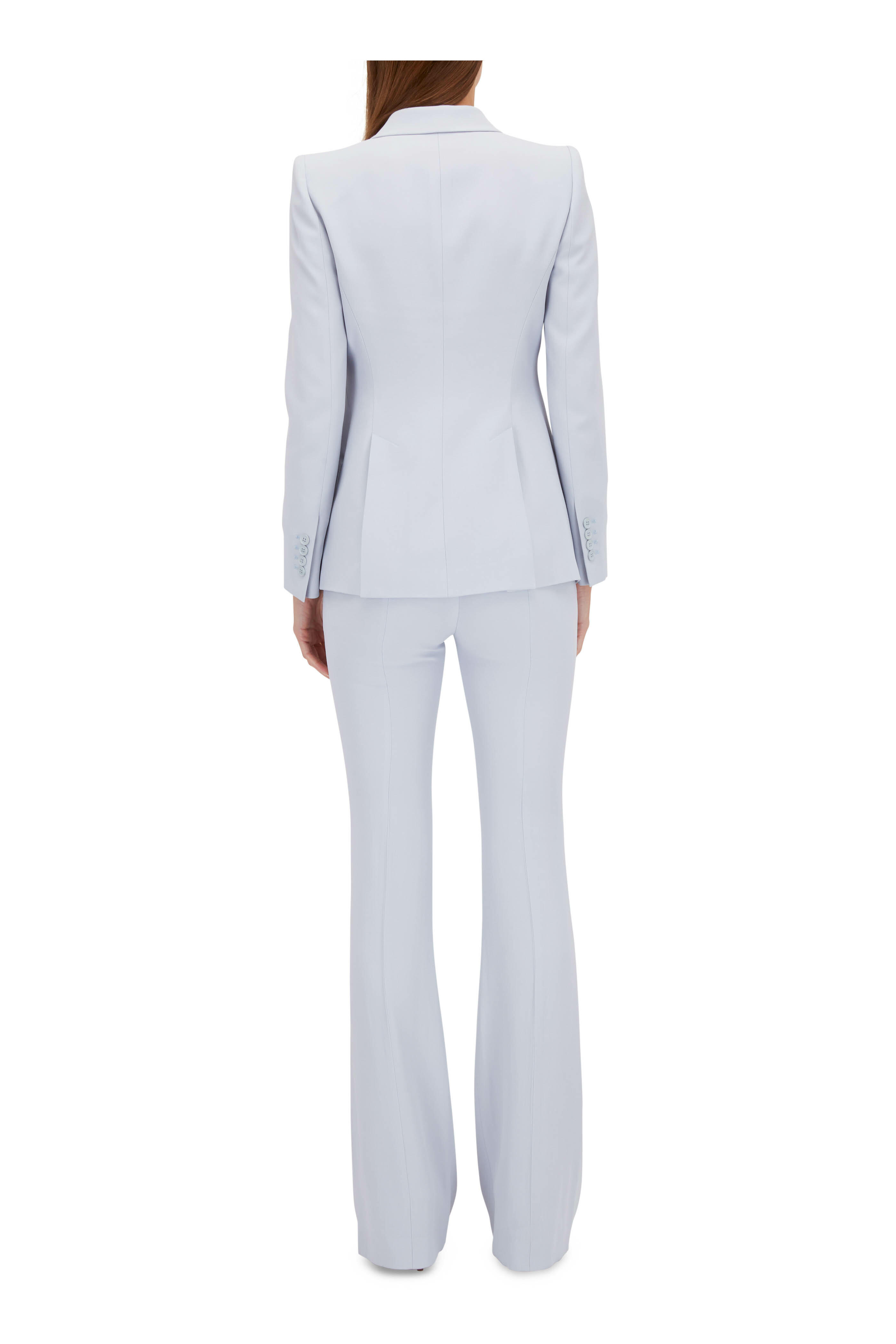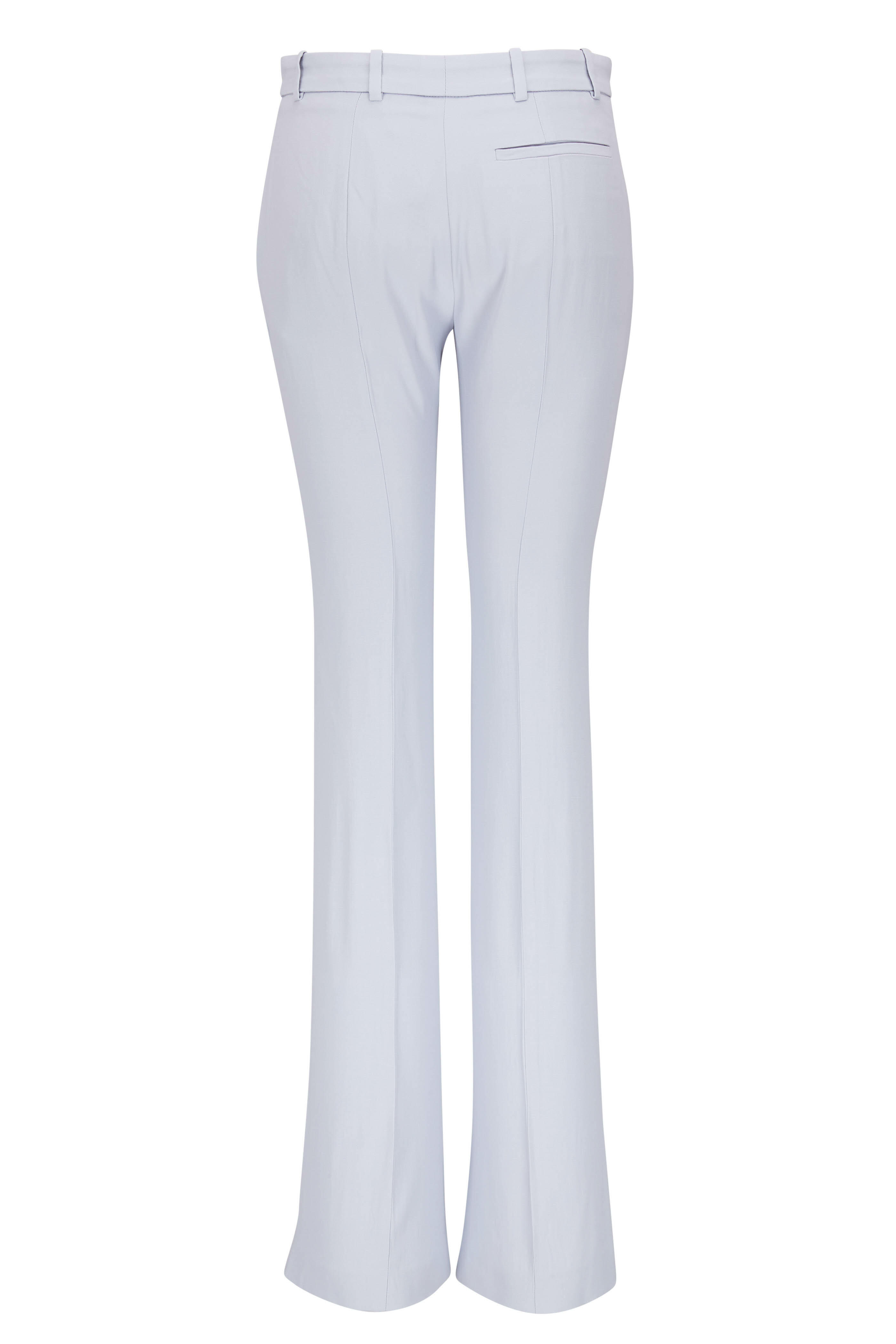 Zip fly with button. Double hook-and-bar closure. Back welt pocket. Belt loops. Made in Italy. 35" inseam. 52% viscose, 48% acetate, partially lined. Dry clean.