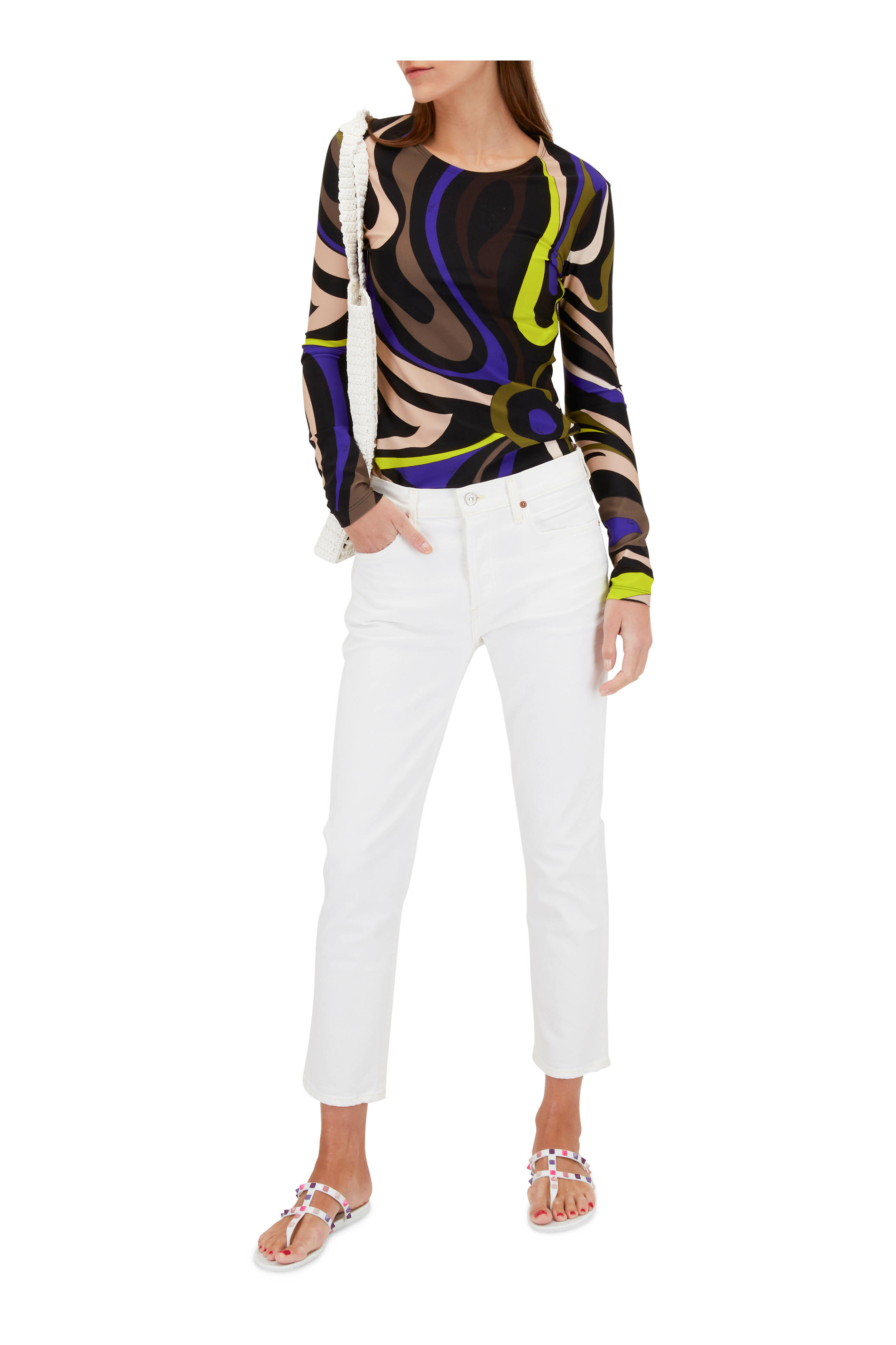 Round neckline. Straight hem. Made in Italy. 90% viscose, 6% polyamide, 4% elastane. Hand wash.
