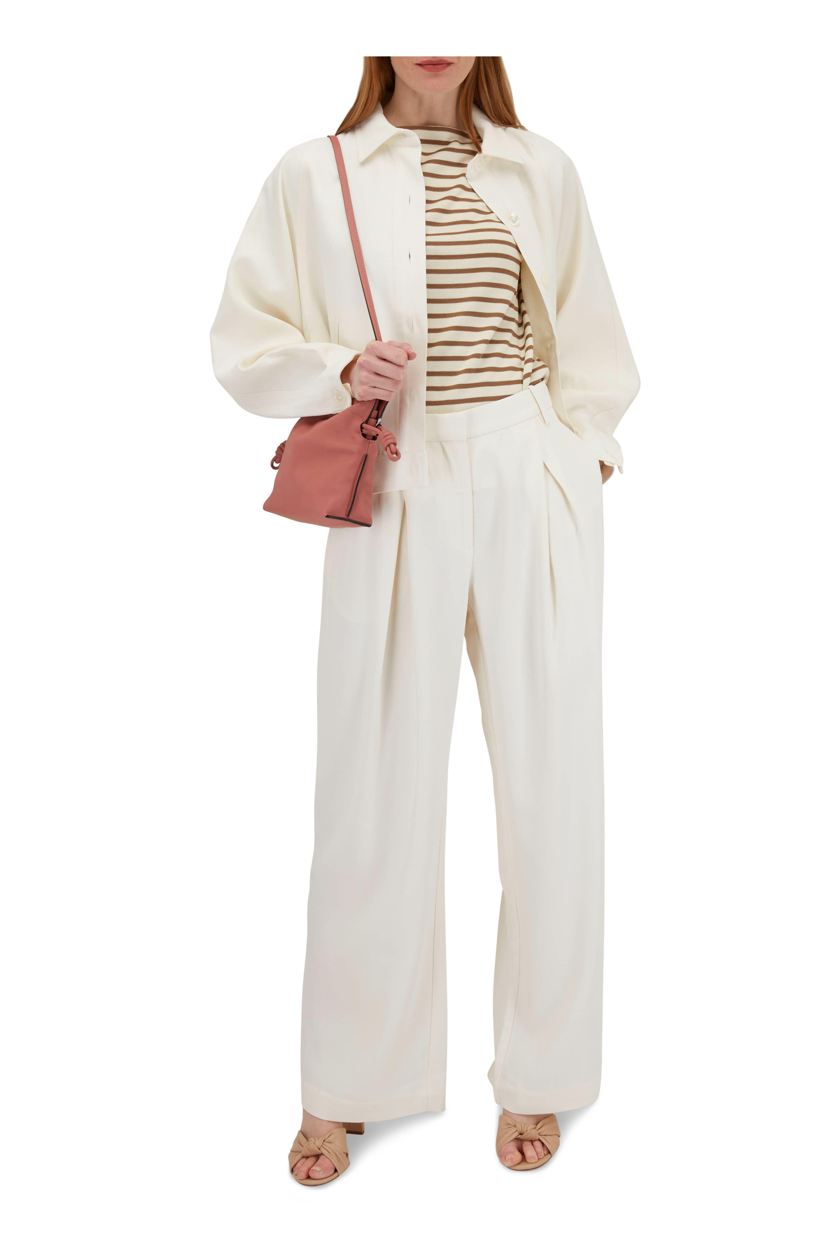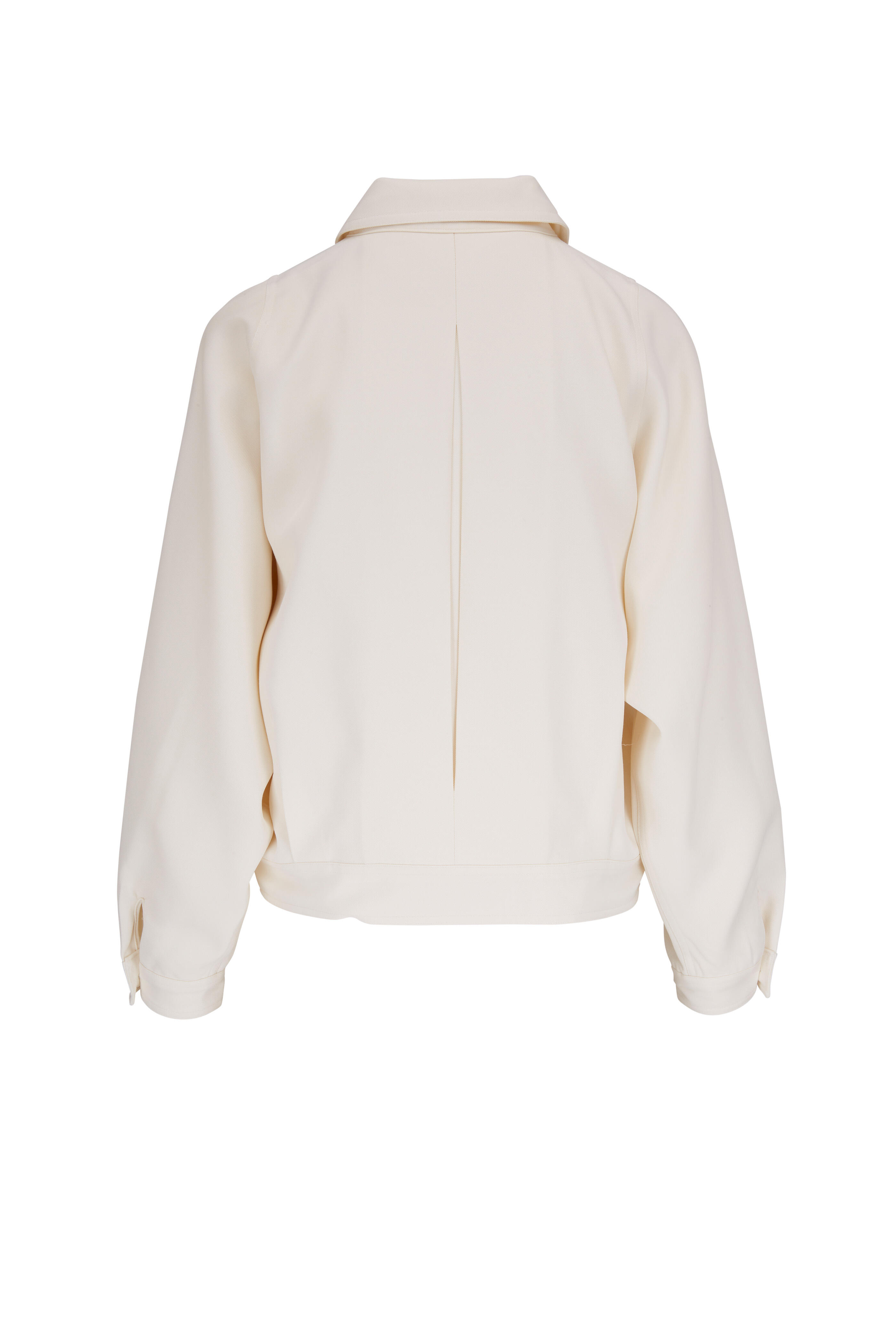 Pointed collar. Front button placket. Lower welt pockets. Single button cuffs. Banded hem. Imported. 24" shoulder to hem. 85% viscose, 15% virgin wool; lining: 55% polyester, 45% viscose. Dry clean.