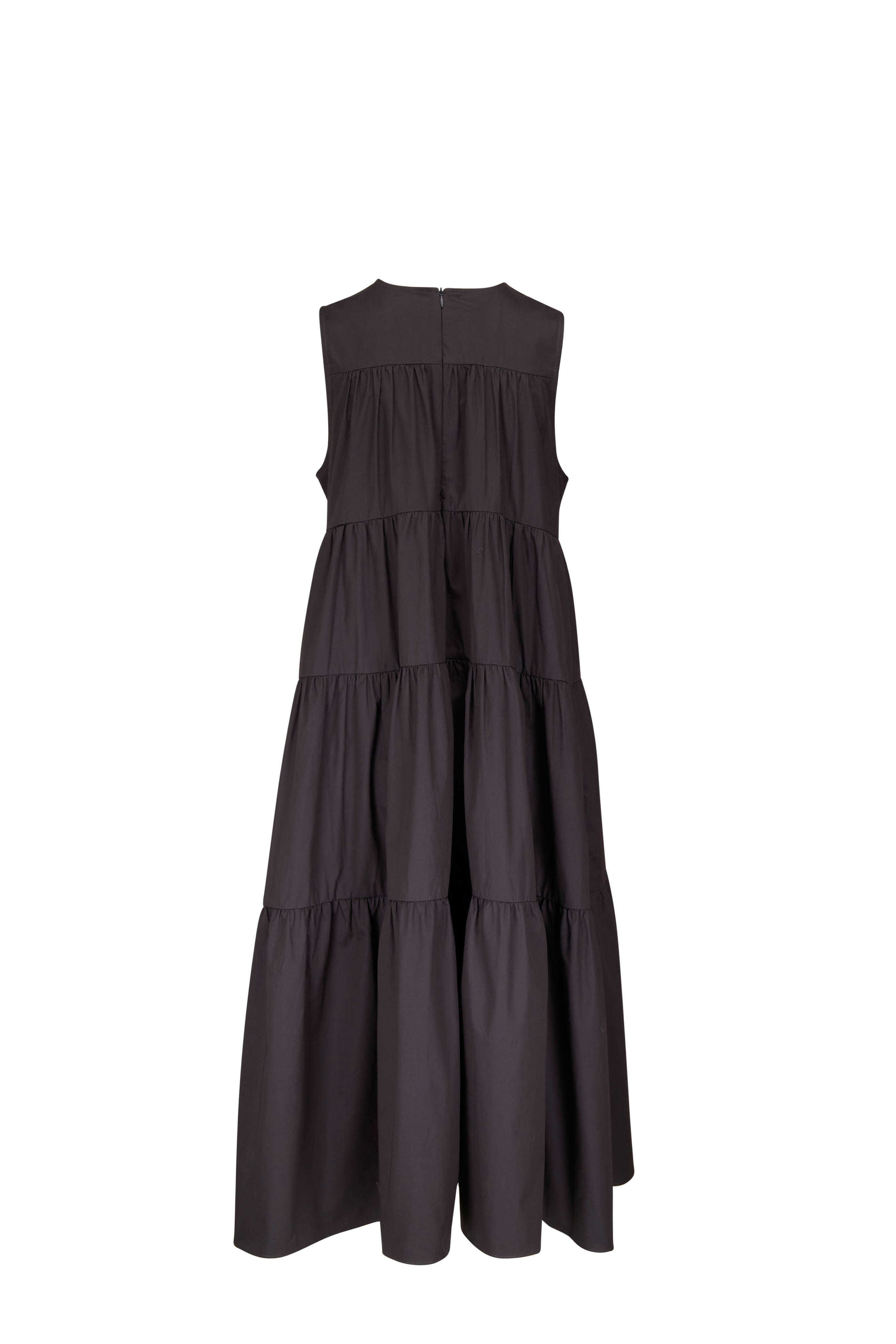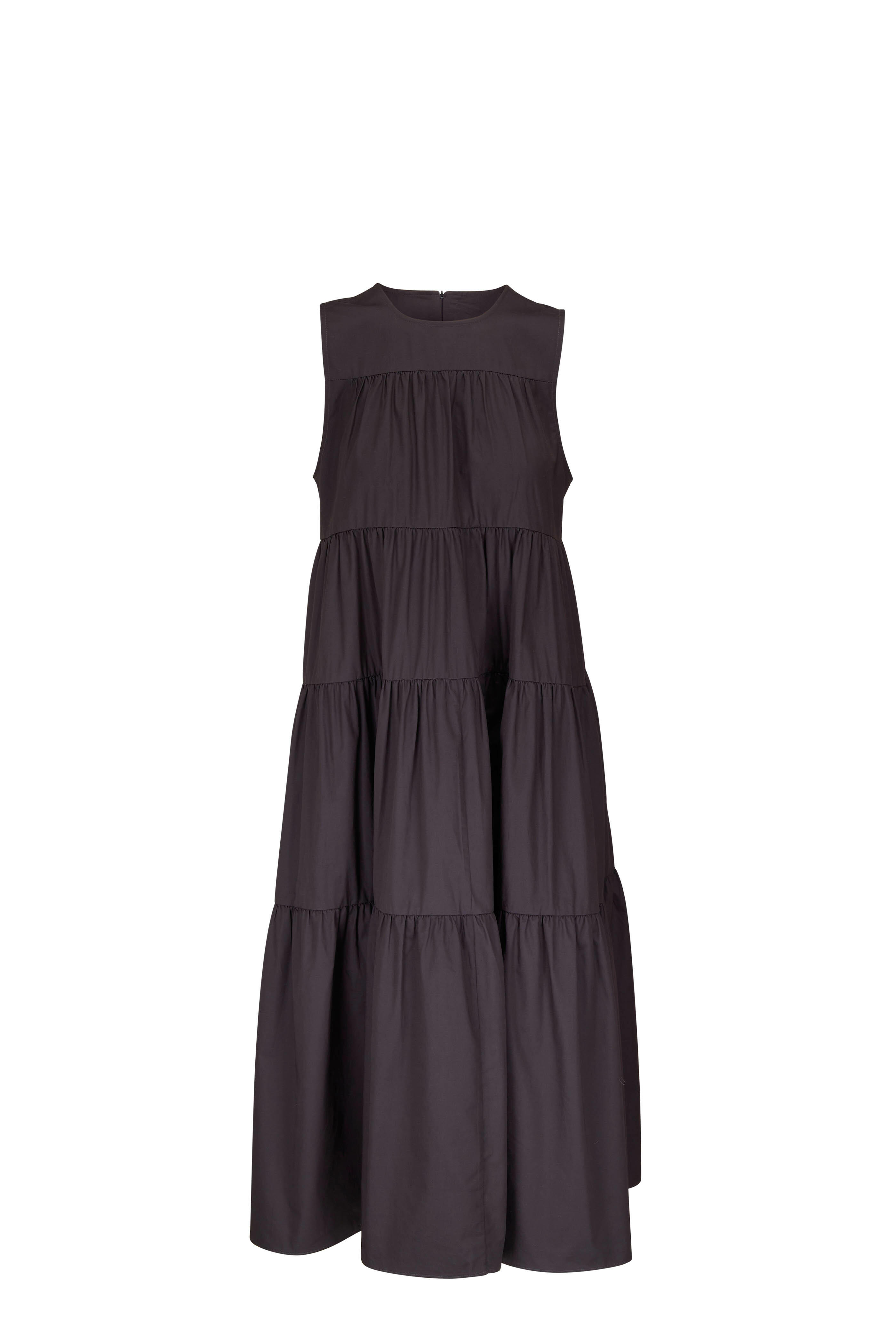 Slate Sleeveless Tiered Cotton Poplin Dress