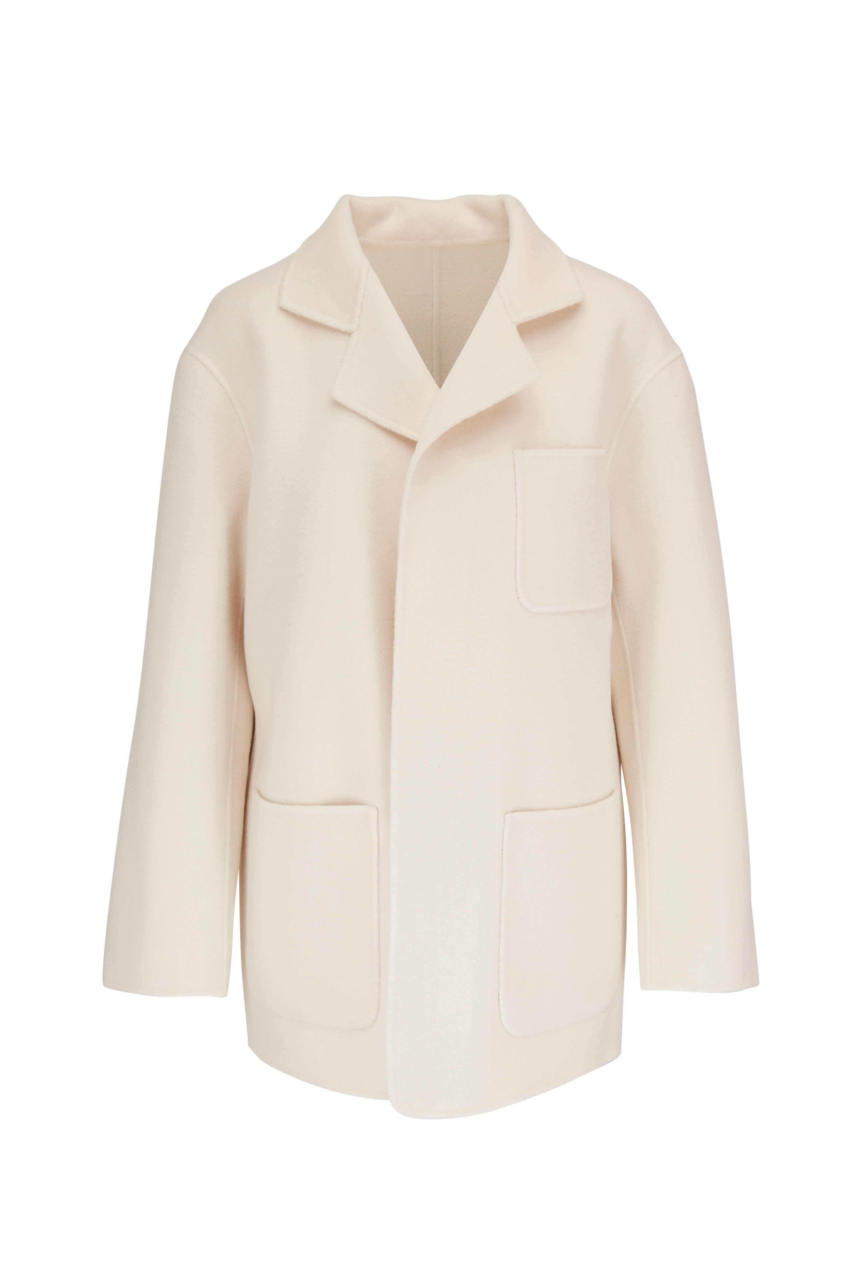 Notch lapels. Open front. Lower waist patch pockets; chest patch pocket. Straight cuffs and hem. Imported. Length: 32". 100% wool. Dry clean.