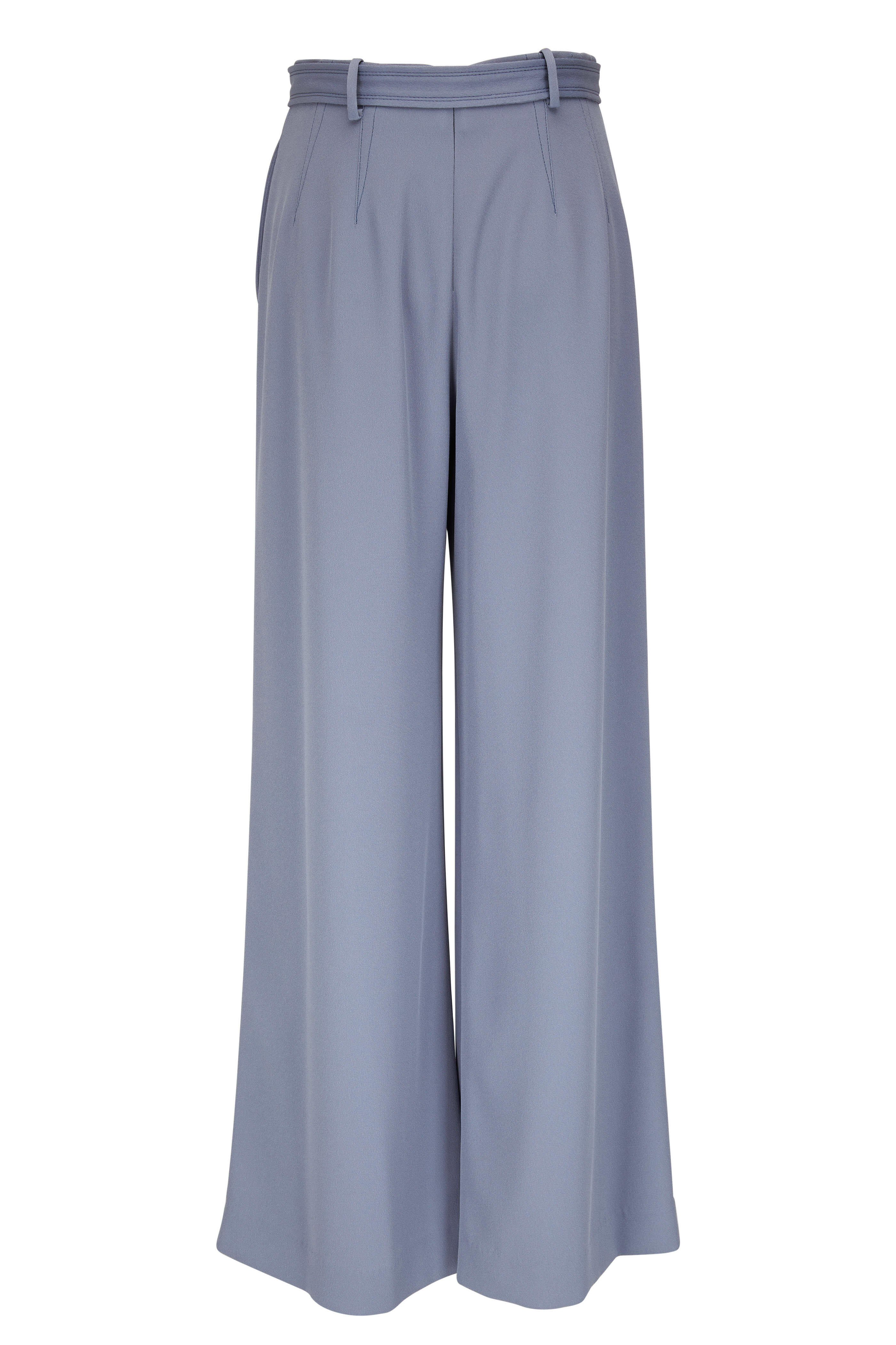 Belt loops. Elasticized waist. Concealed back zip with hook-and-eye closure. Self-tie waist belt. Made in the USA. 100% polyester; Lining: 93% silk, 7% elastane. Dry clean.