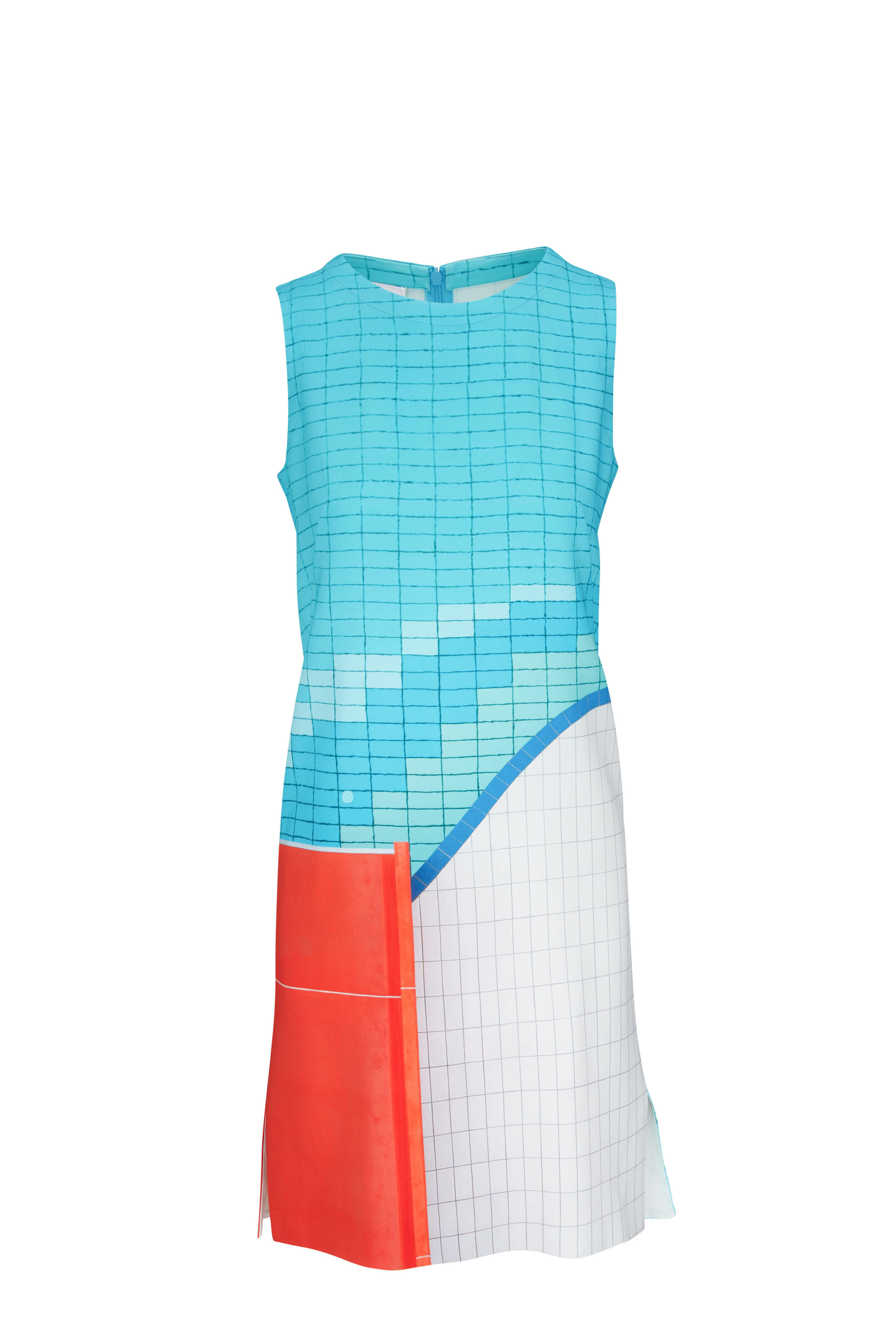 Jewel neckline. Concealed back-zip closure. Sleeveless. Side slits. Imported. 96% viscose, 4% elastane. Dry clean.