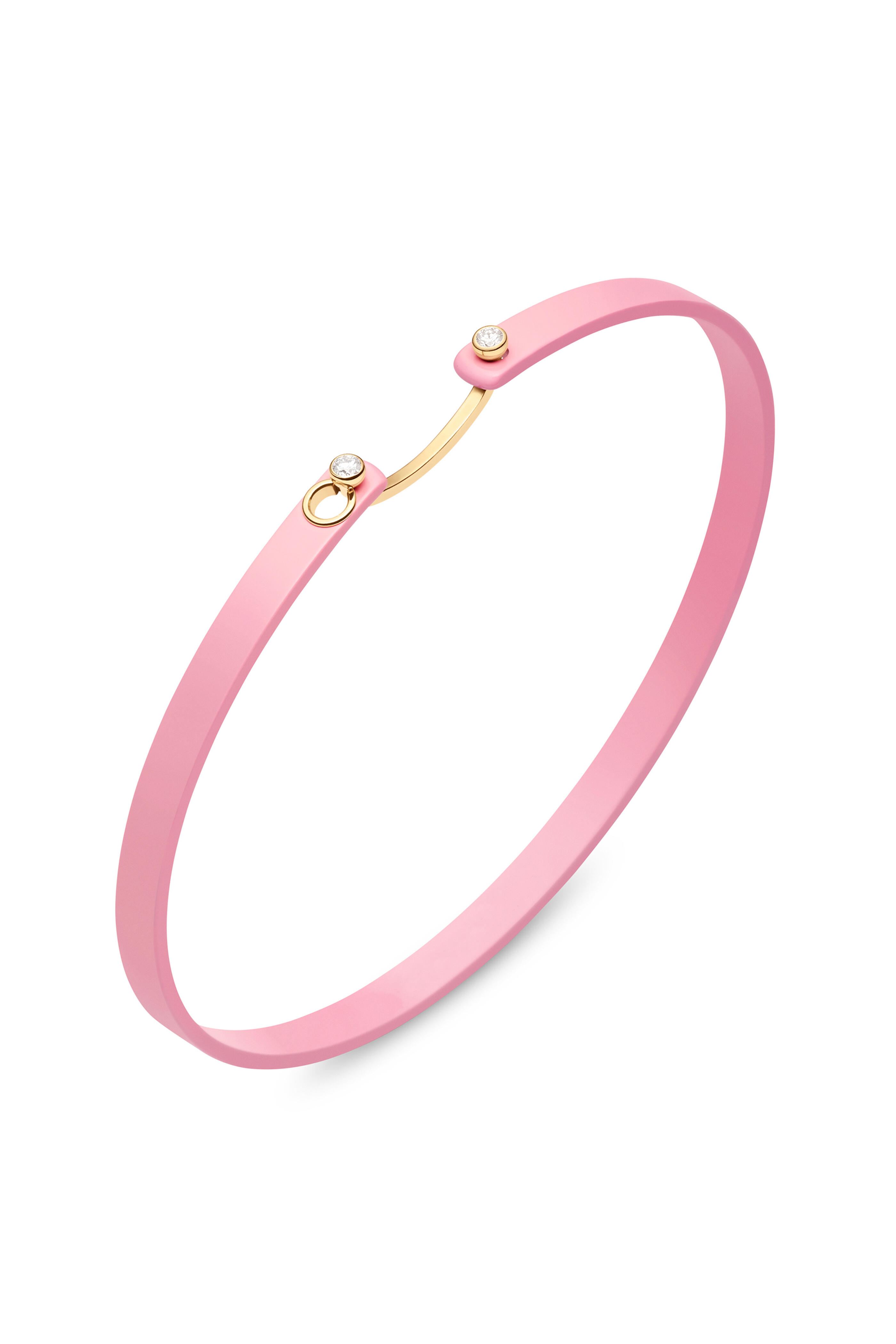Collection: Mood. Material: Titanium, Pink Coating, and 18K Gold. Stones: White Diamonds. Carat Total Weight: 0.07. Measurements: 4 mm wide. Clasp: Pinch sides to unhook the latch. Handcrafted in France. Limited Edition: Only 40 bangles available (each engraved with X/40).