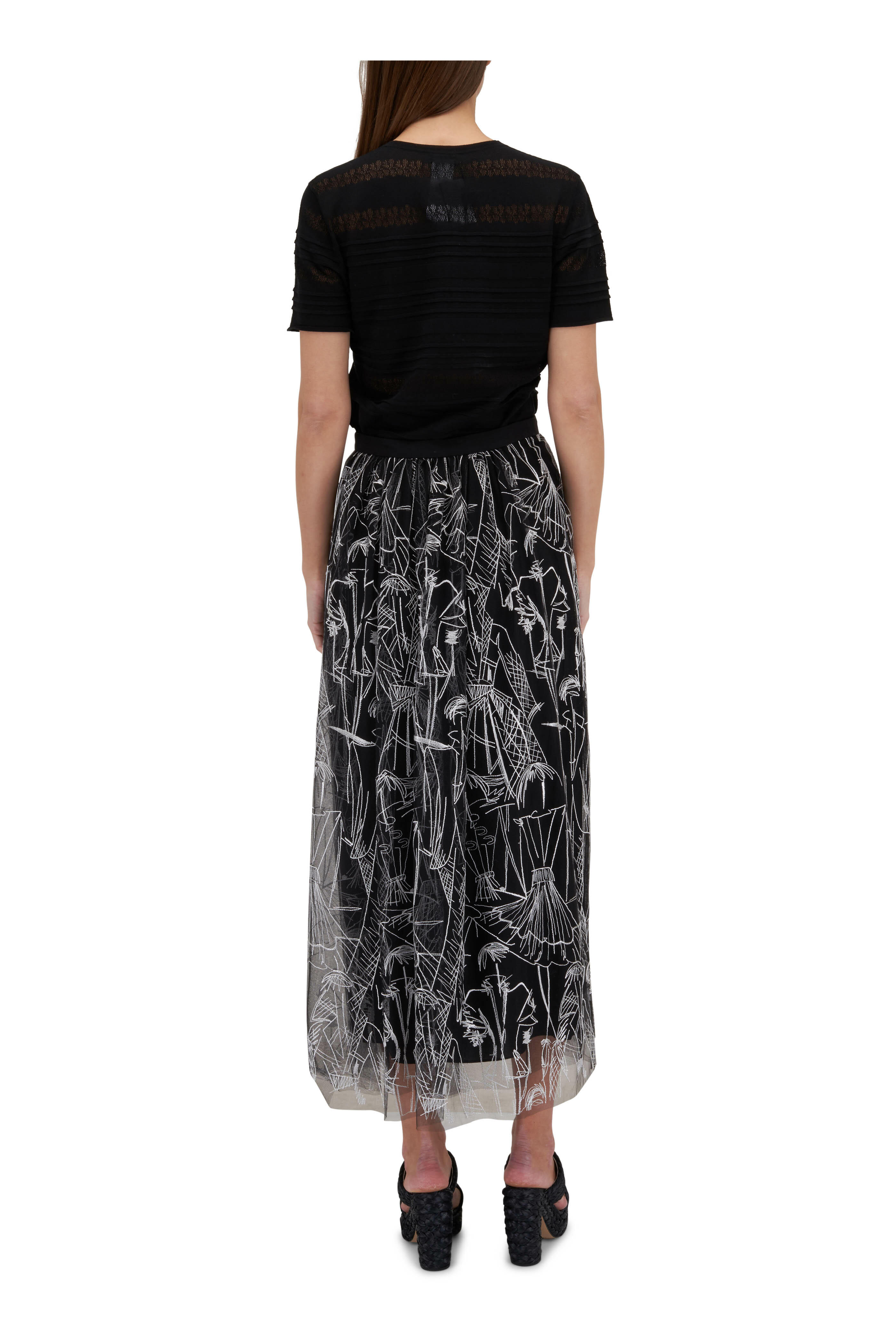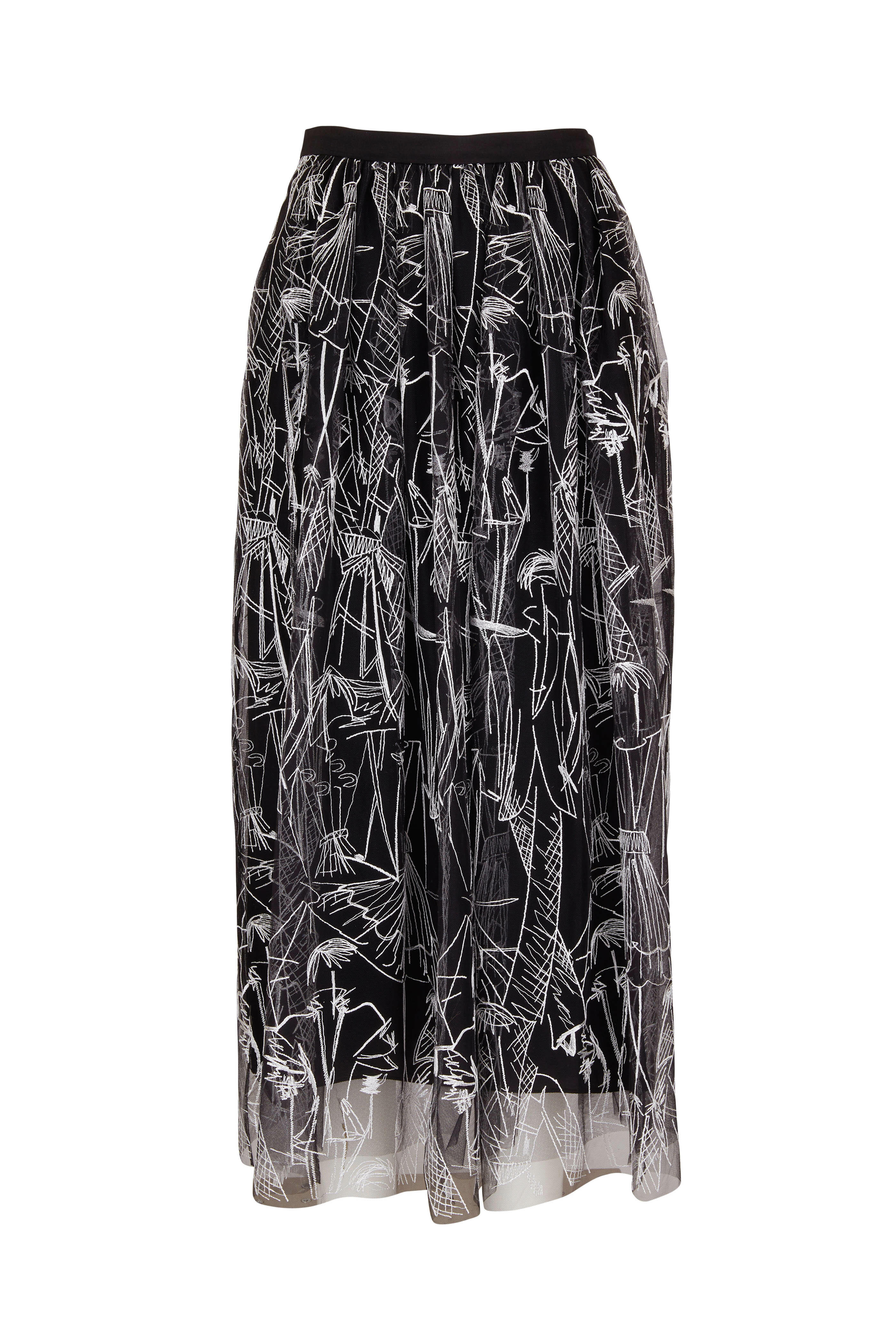 Black & White Croquis Embroidered Tulle Maxi Skirt