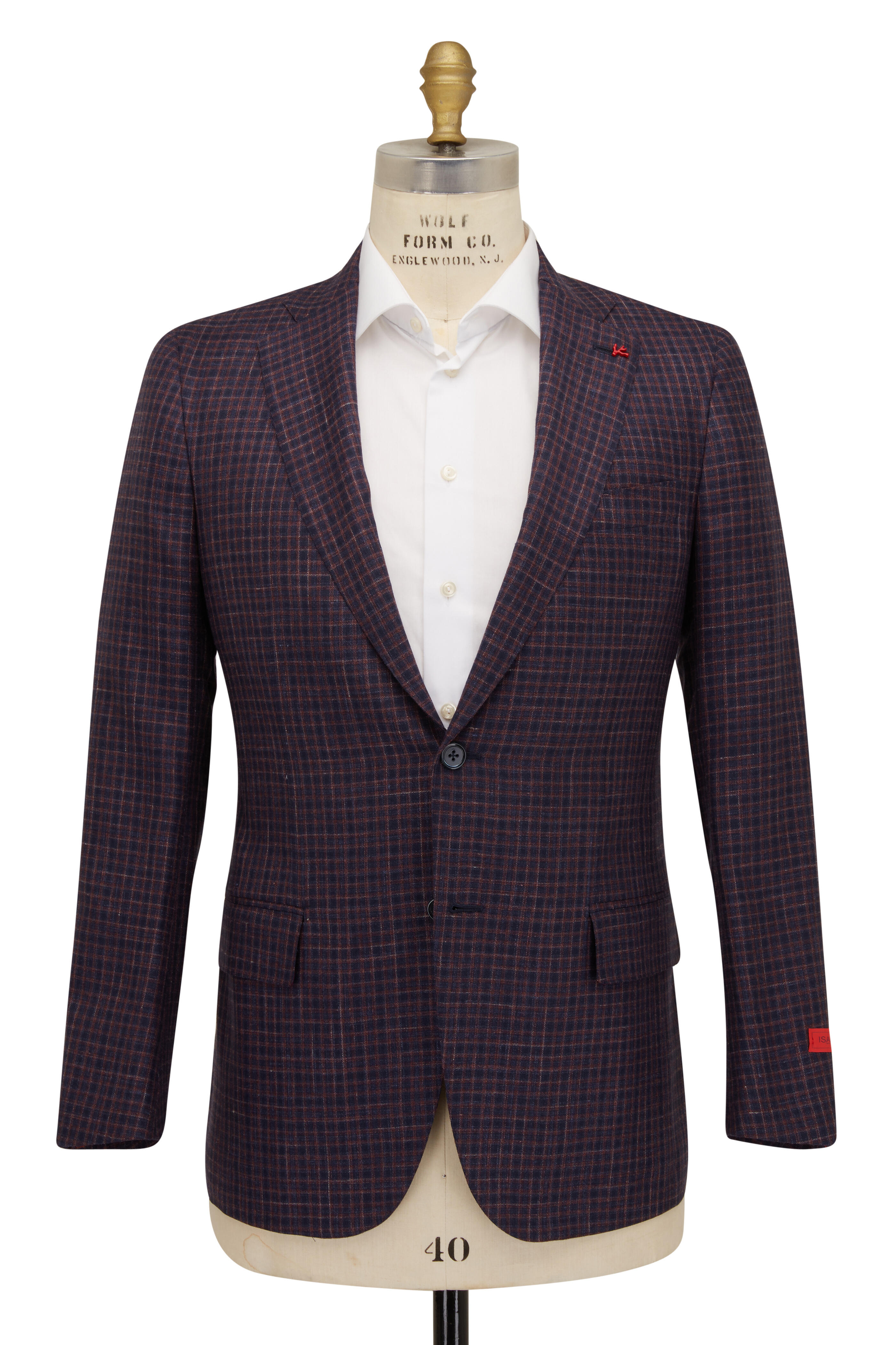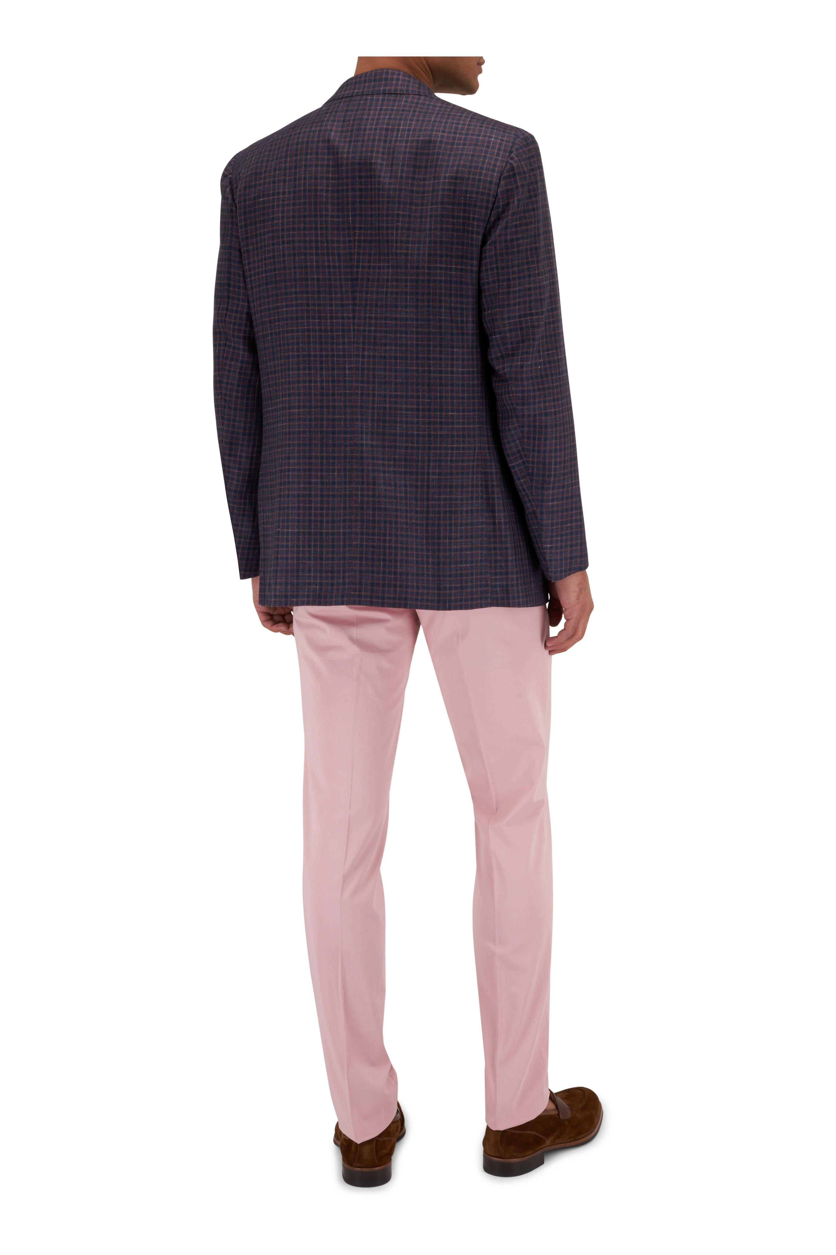 Navy & Burgundy Check Wool Blend Sportcoat