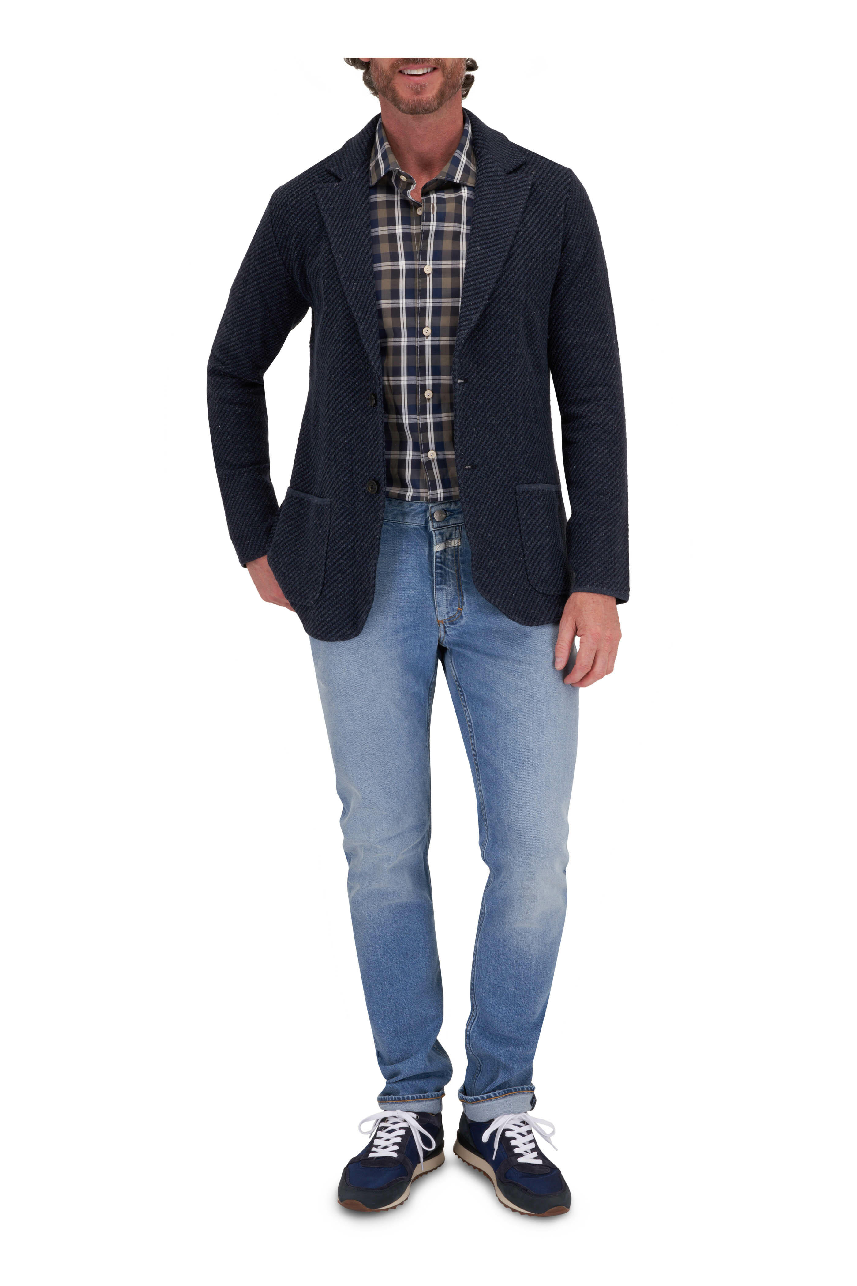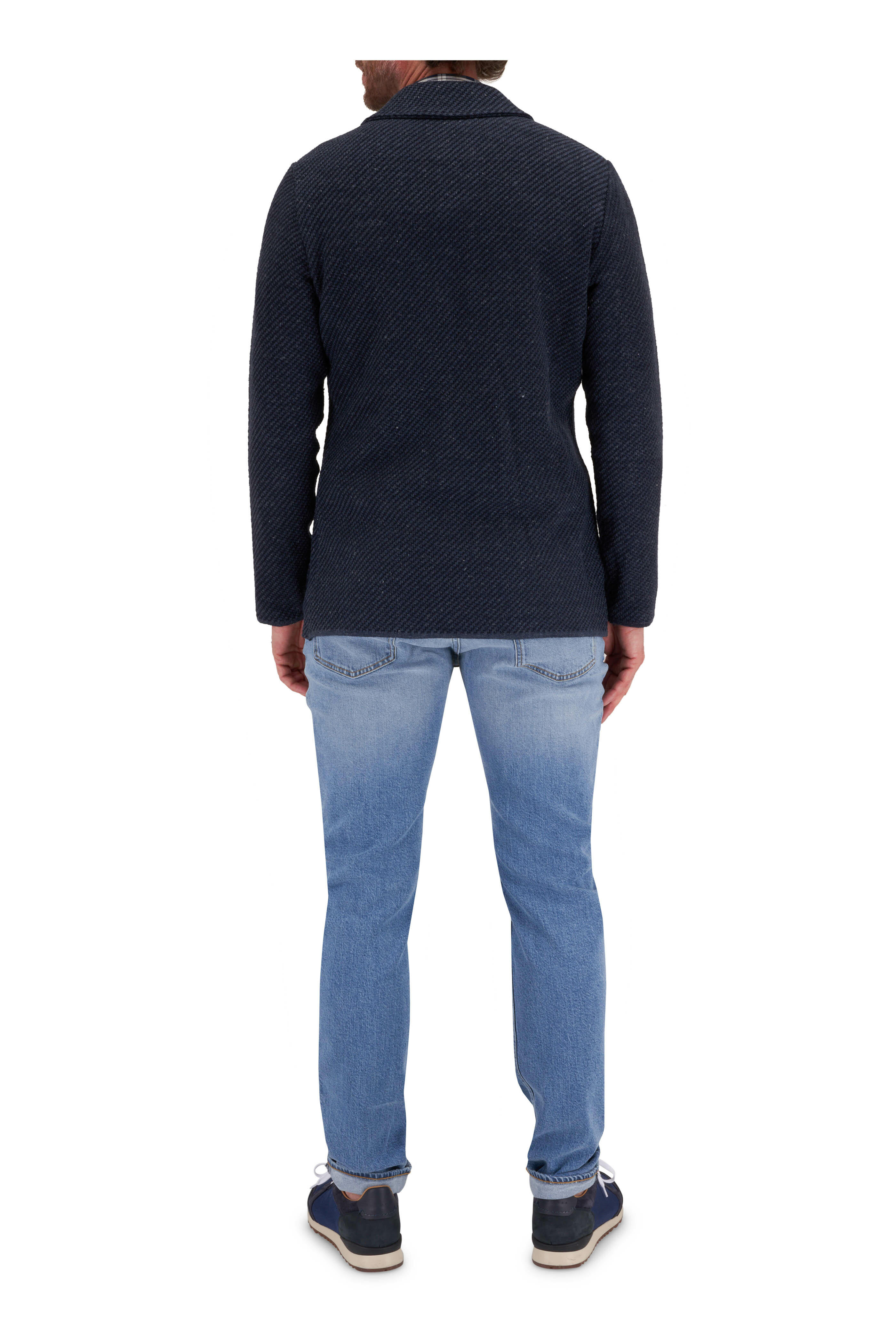 Navy Blue Ribbed Knit Cotton Blend Swacket