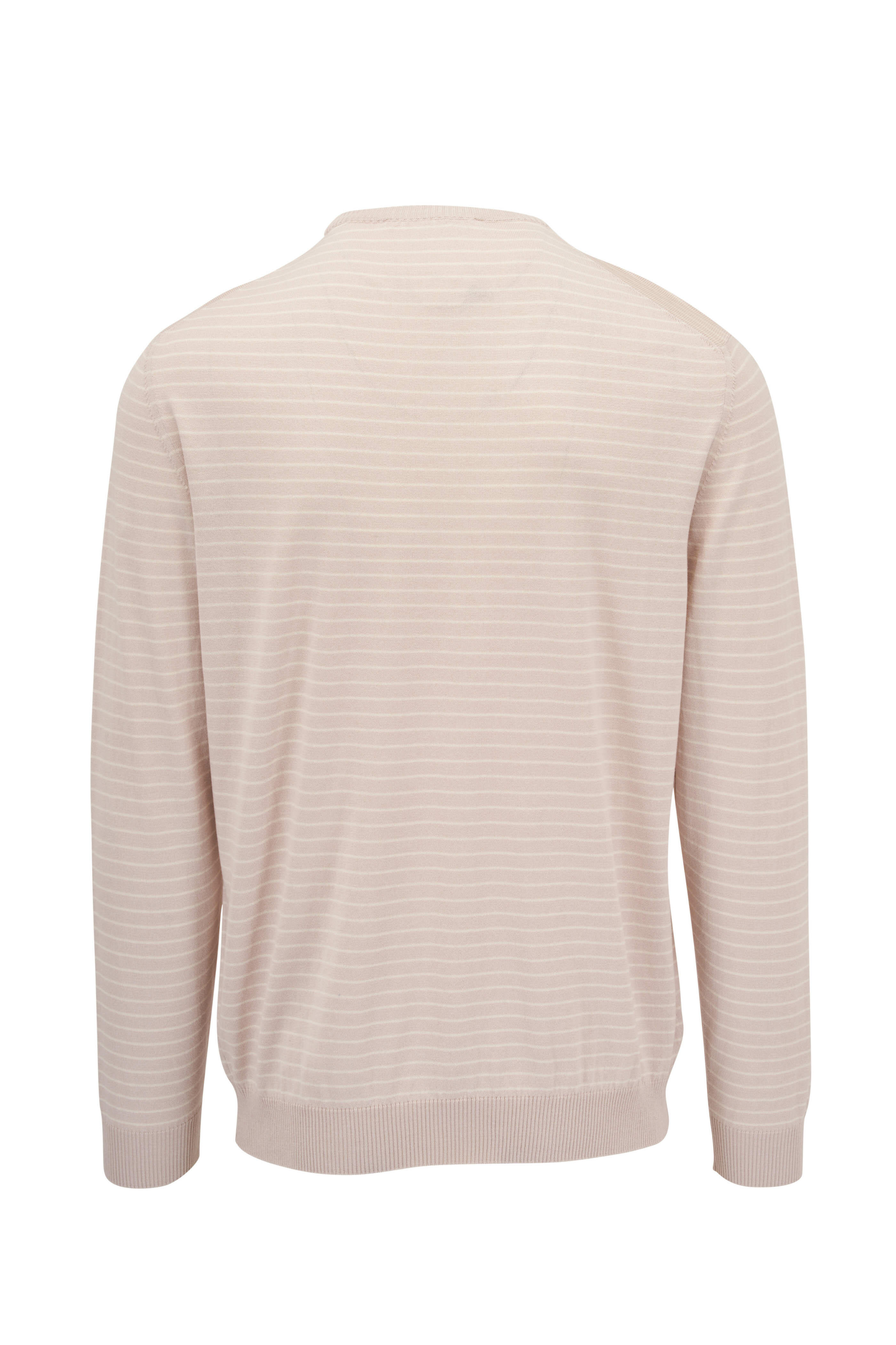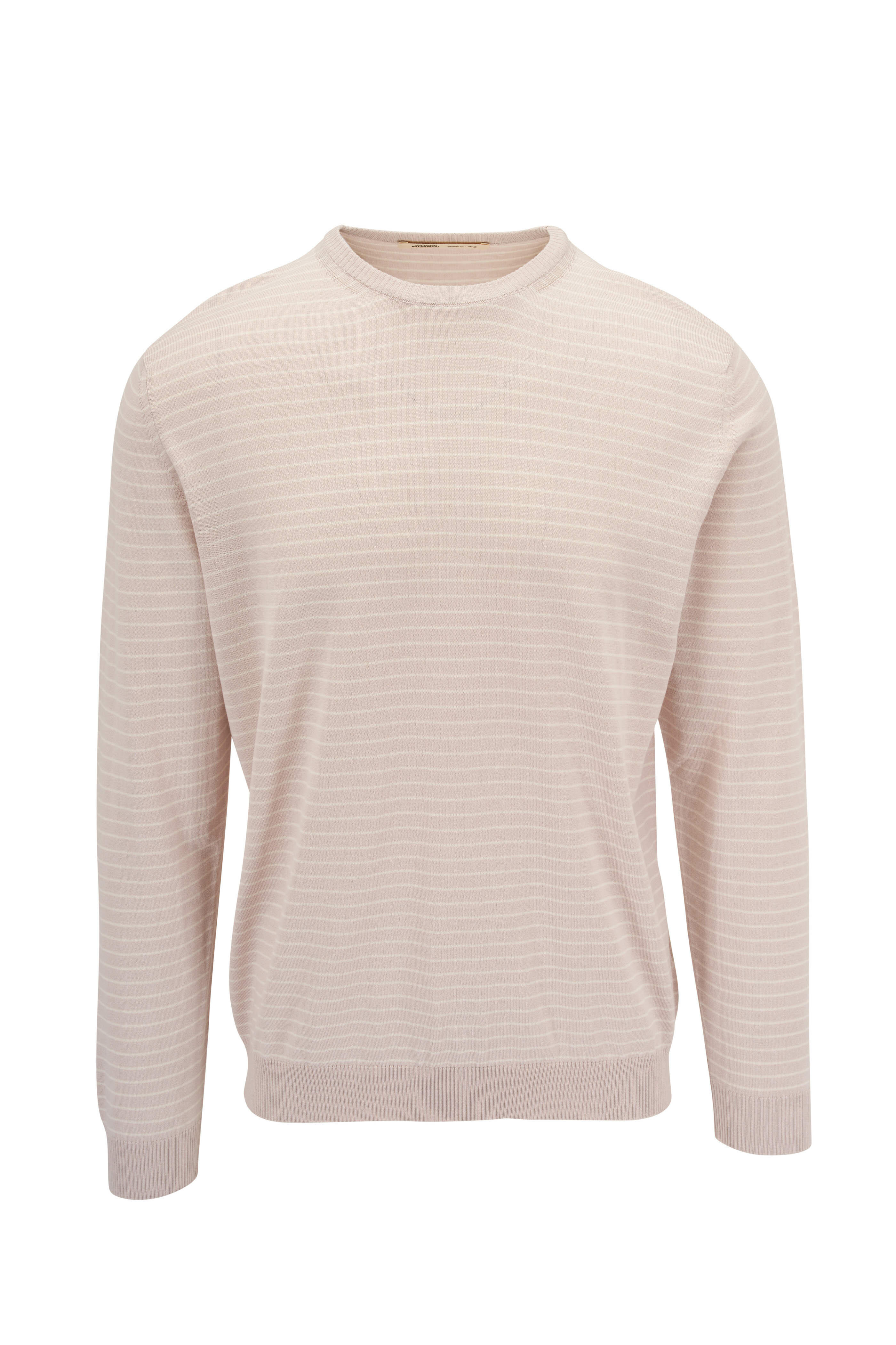 Beige Striped Silk & Cotton Lightweight Crewneck